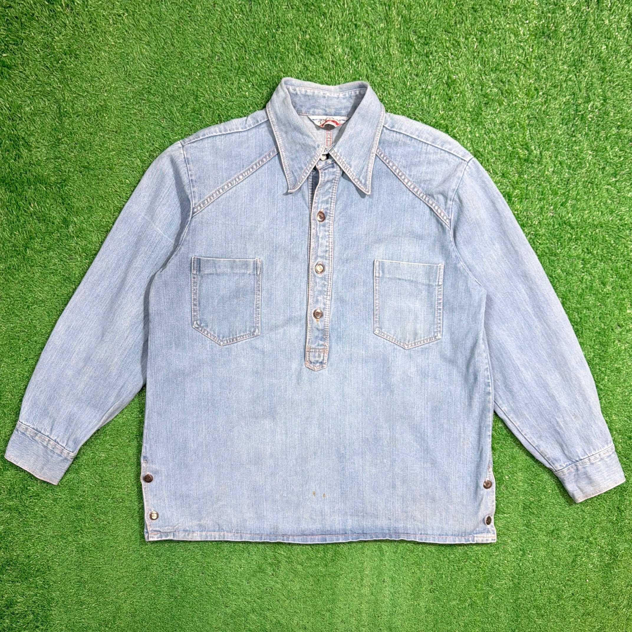 【Men's】 70s デニム プルオーバーシャツ / 70年代 デニムシャツ デニム ジャケット 古着 メンズ ハーフボタン 1025