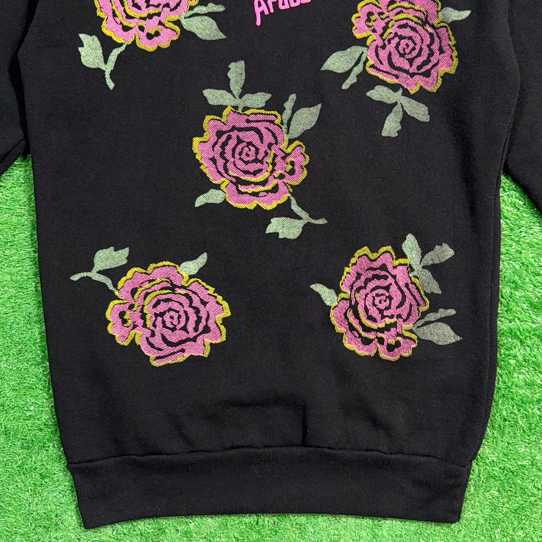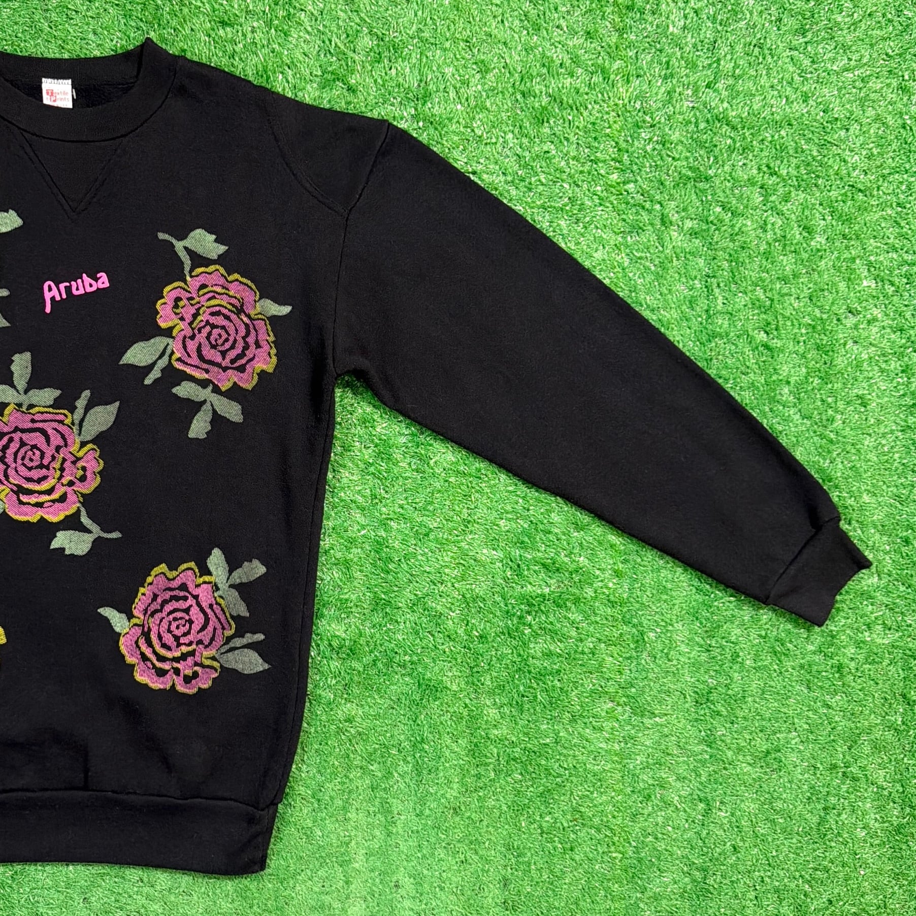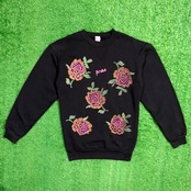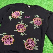 1990年代のアメリカ製、バラのラメプリントが施されたロング丈スウェットシャツです。