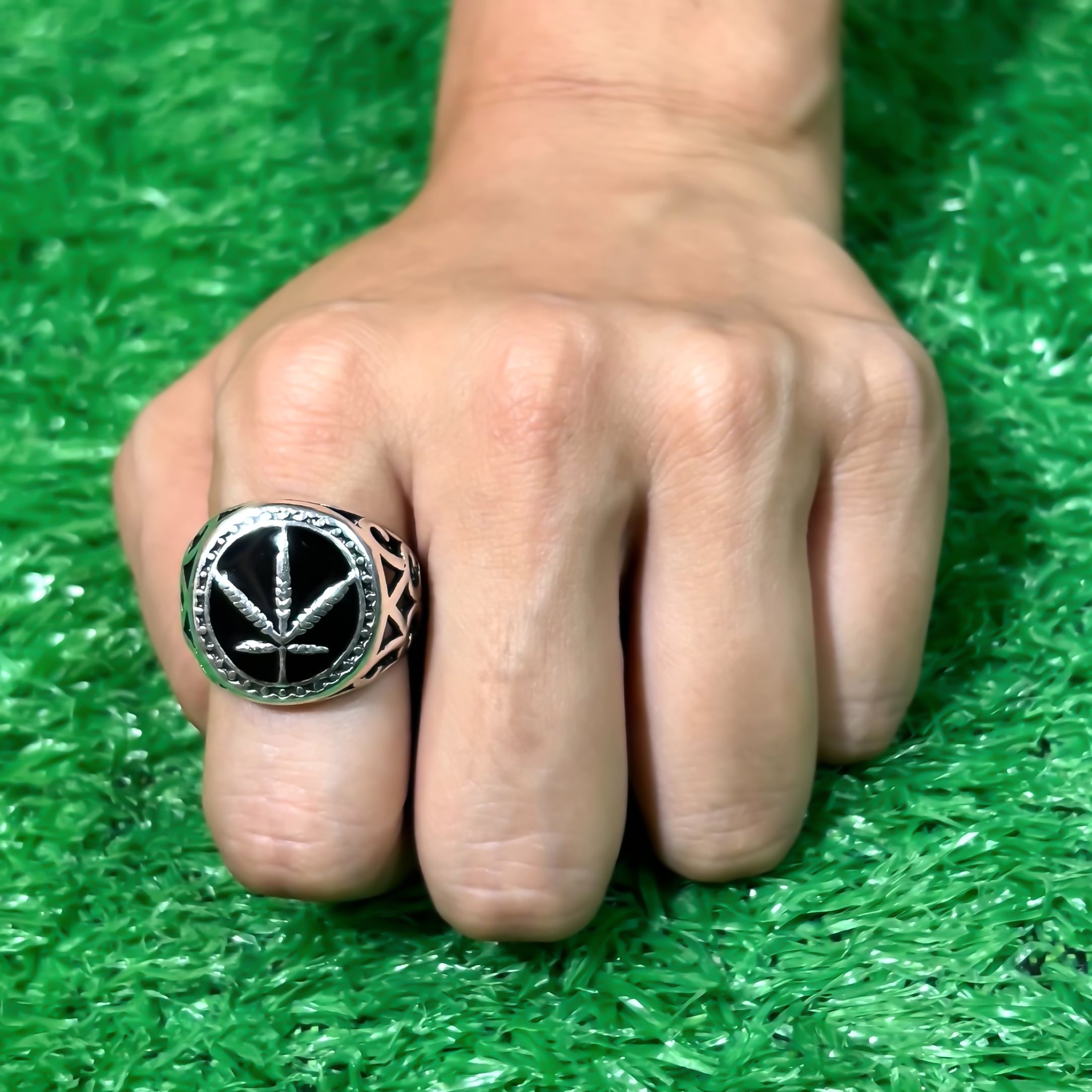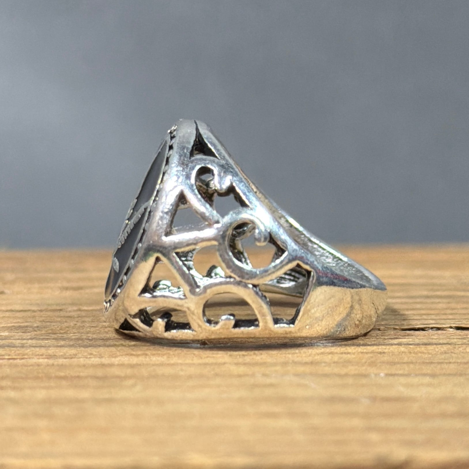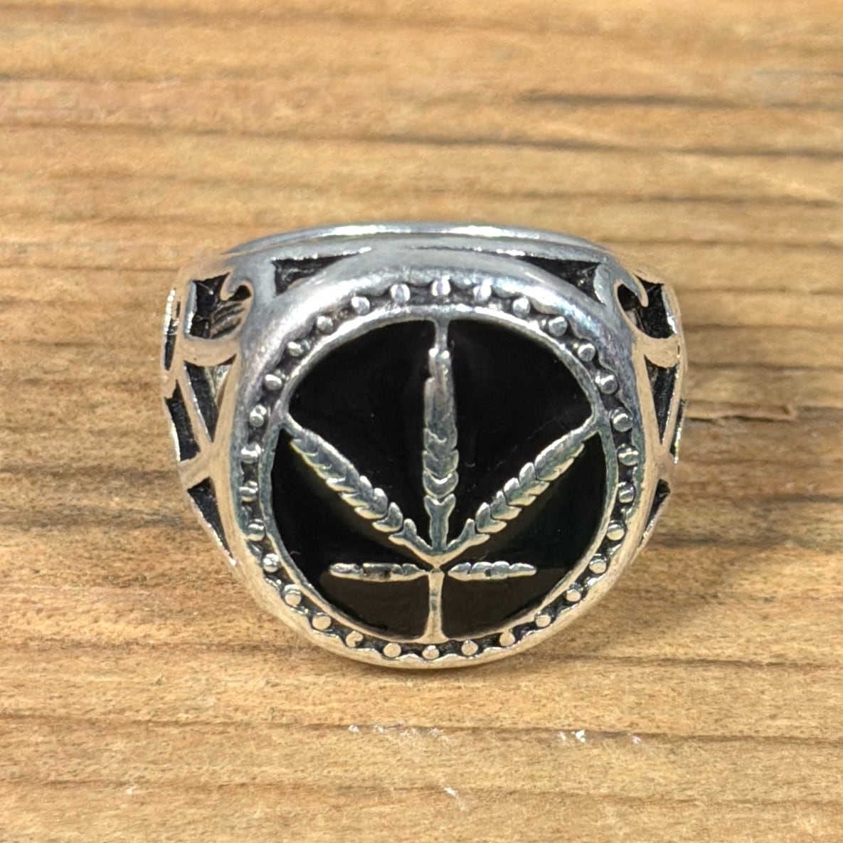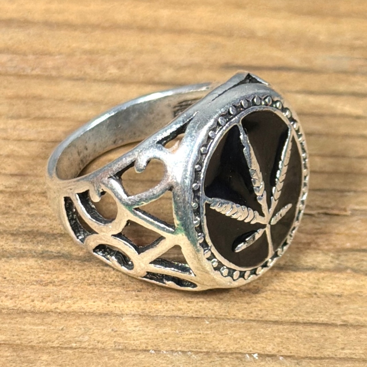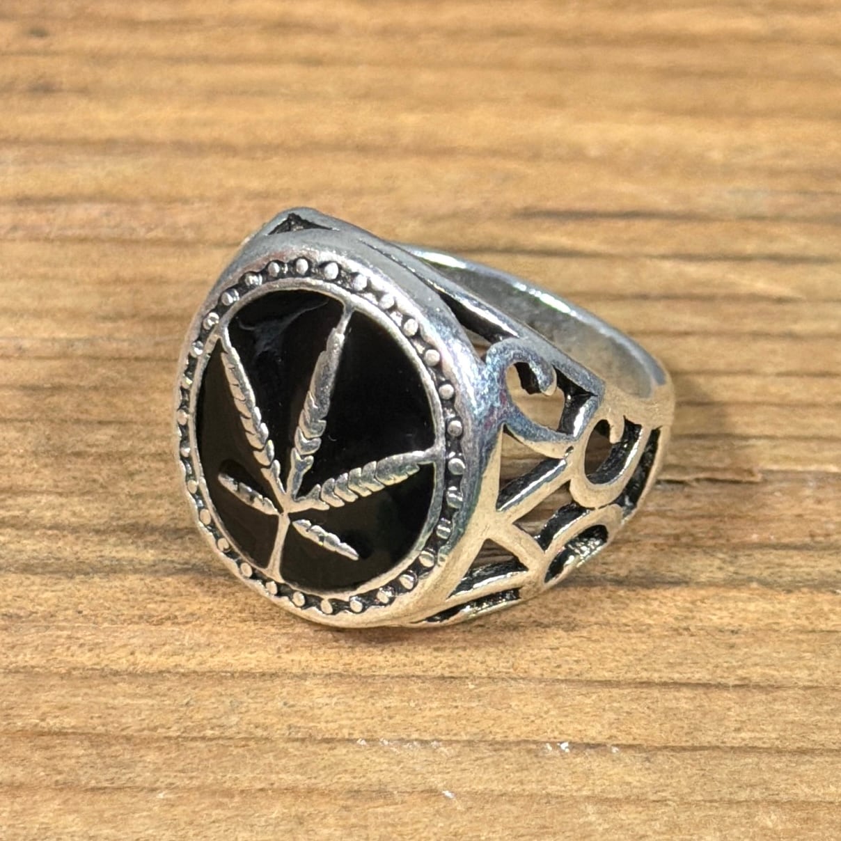 【Unisex】 麻の葉 モチーフ ブラック リング / 古着 アクセサリー