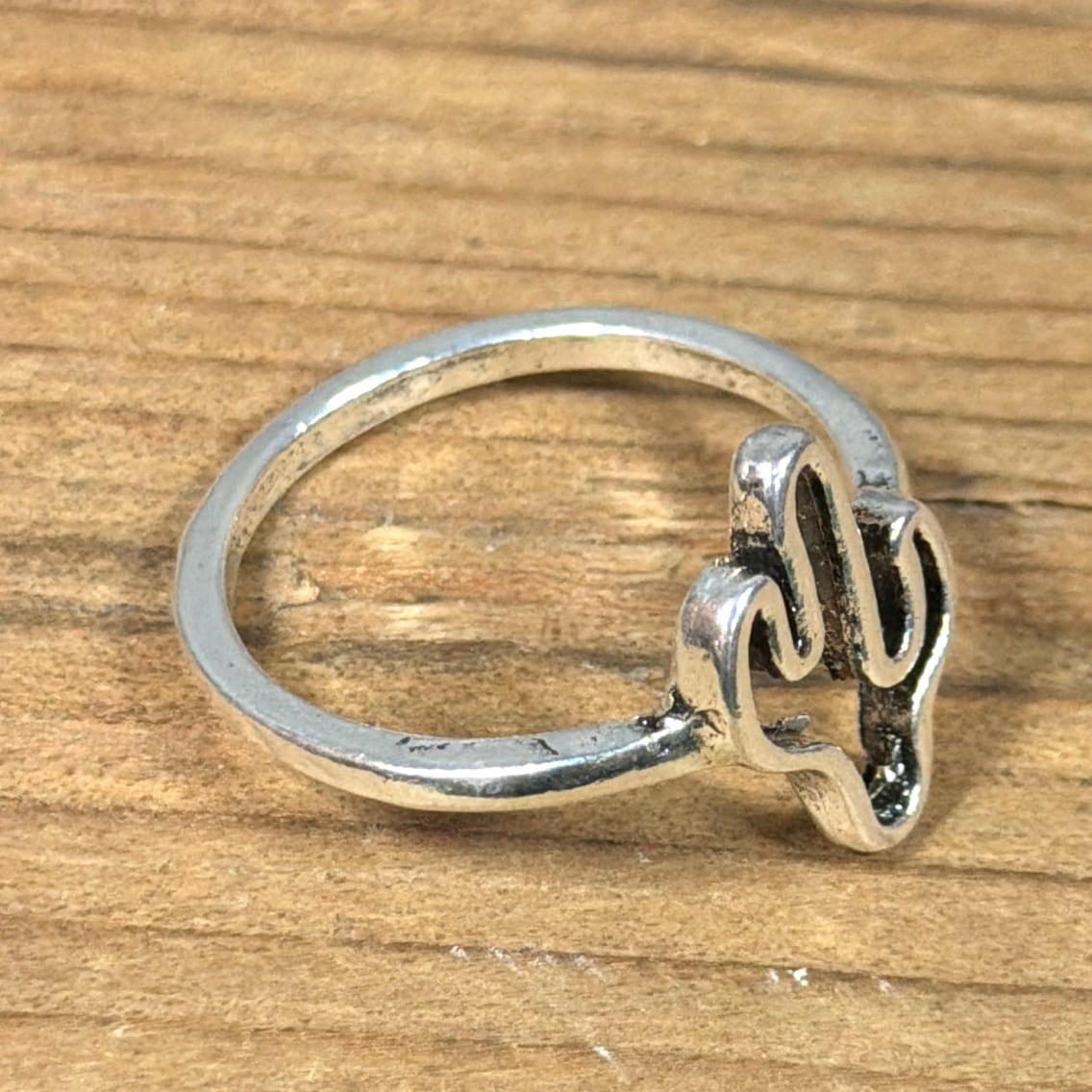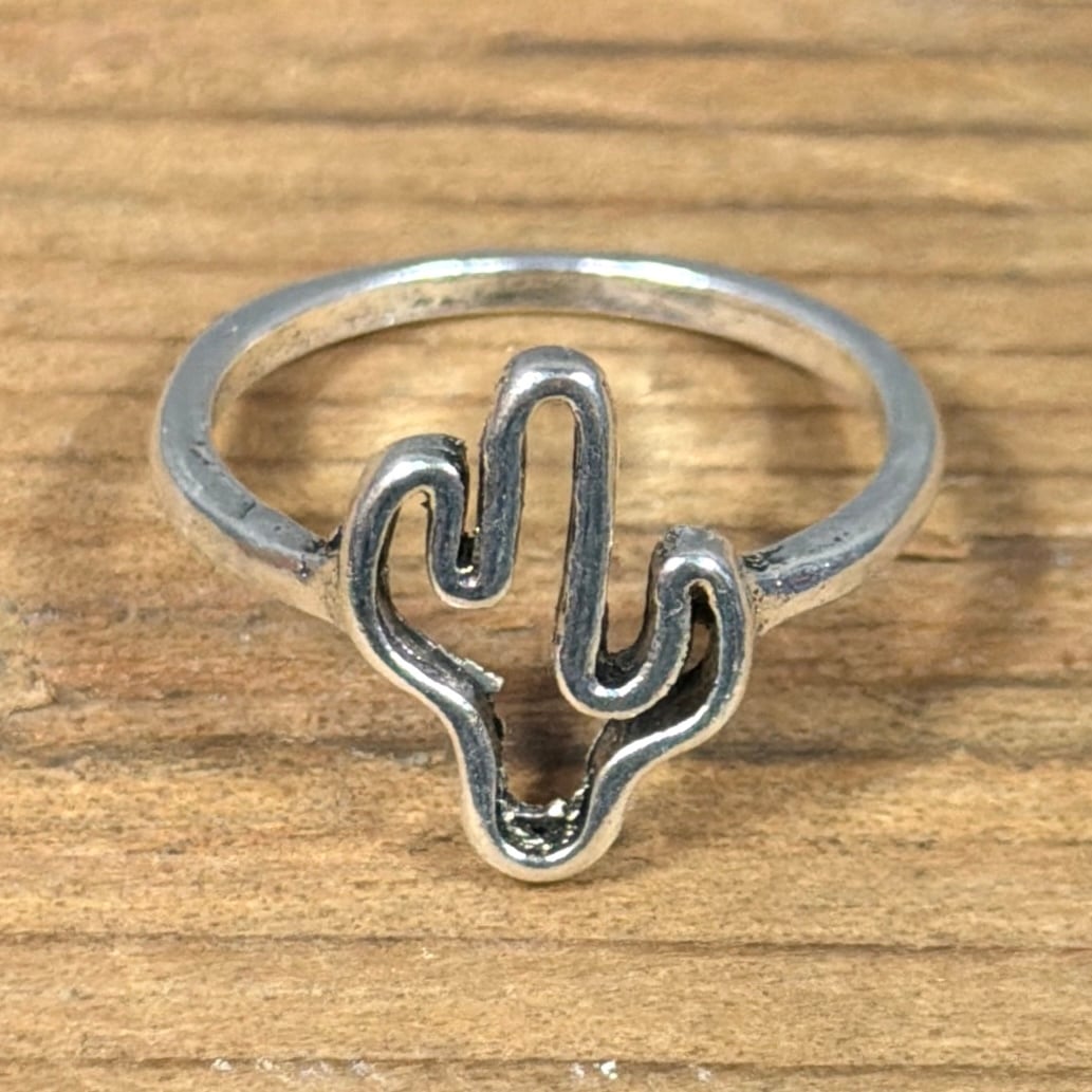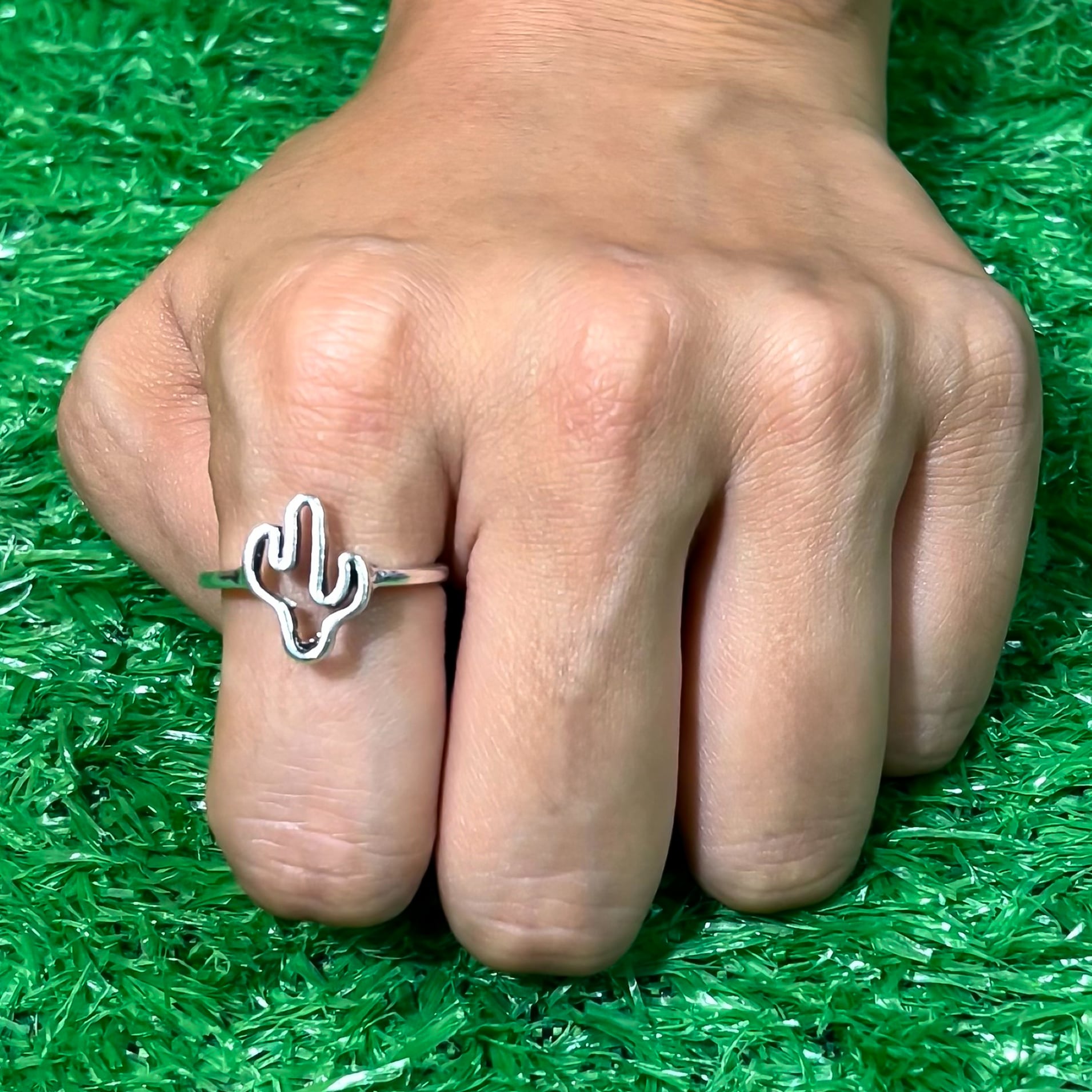 アウトラインのみで描かれたミニマルなデザインが、どこかユーモアも感じさせるアイテムです。主張しすぎないサイズ感なので、単体ではもちろん、他のリングとの重ね付けにもぴったり。ウエスタン・サボテン・デザートカルチャーが好きな方にもおすすめです。ユニセックスでご着用いただけます。