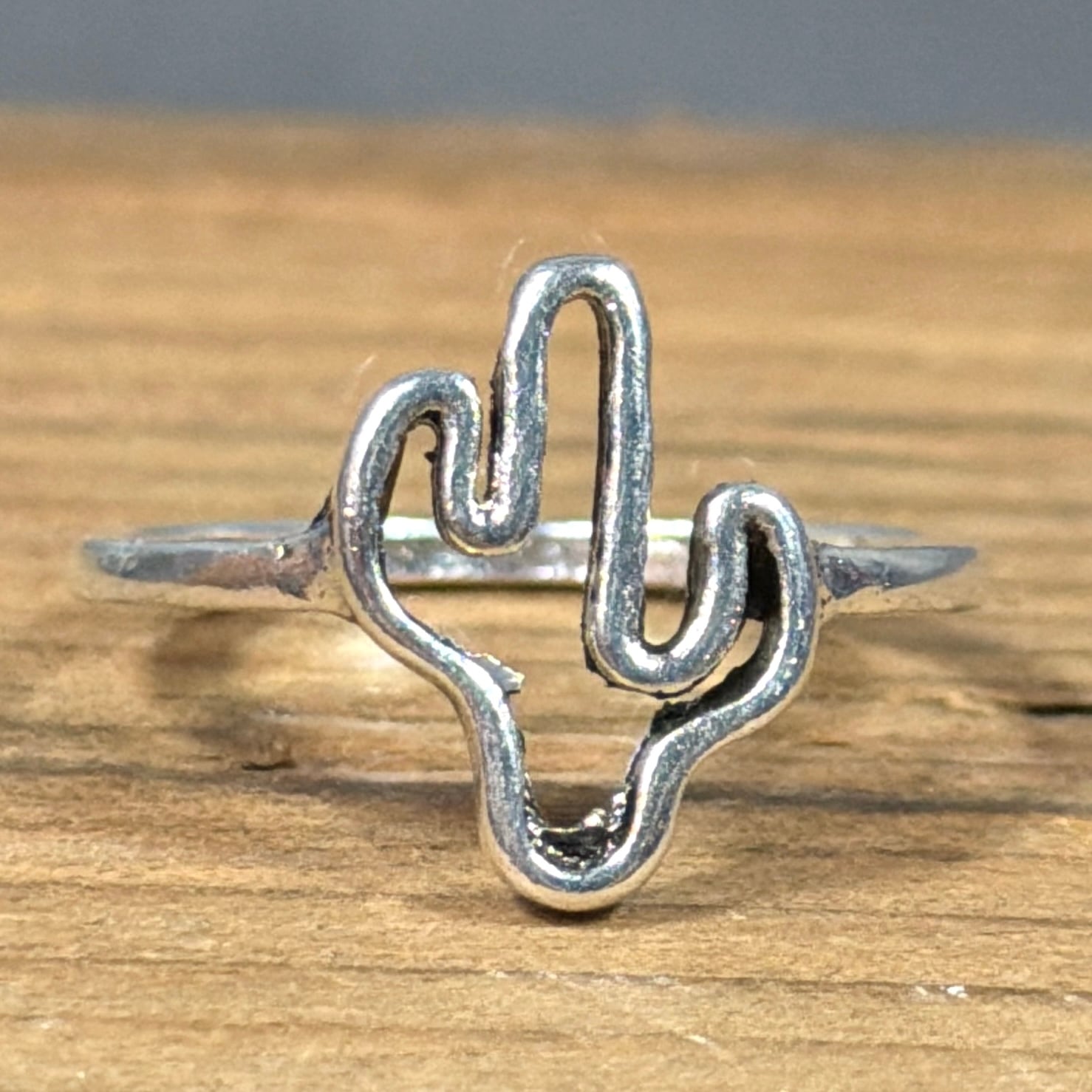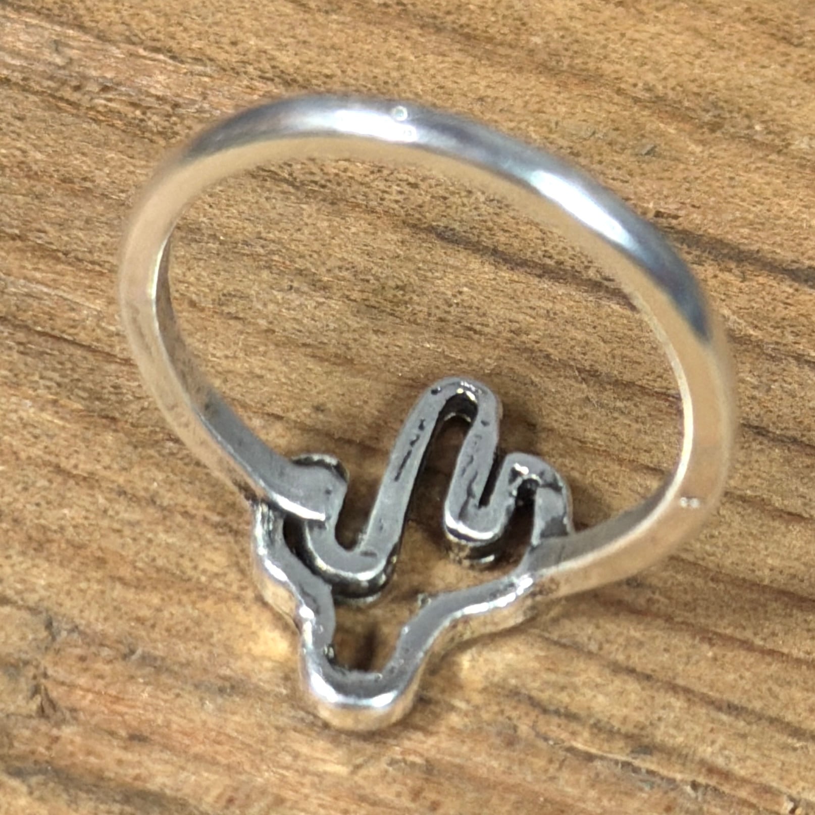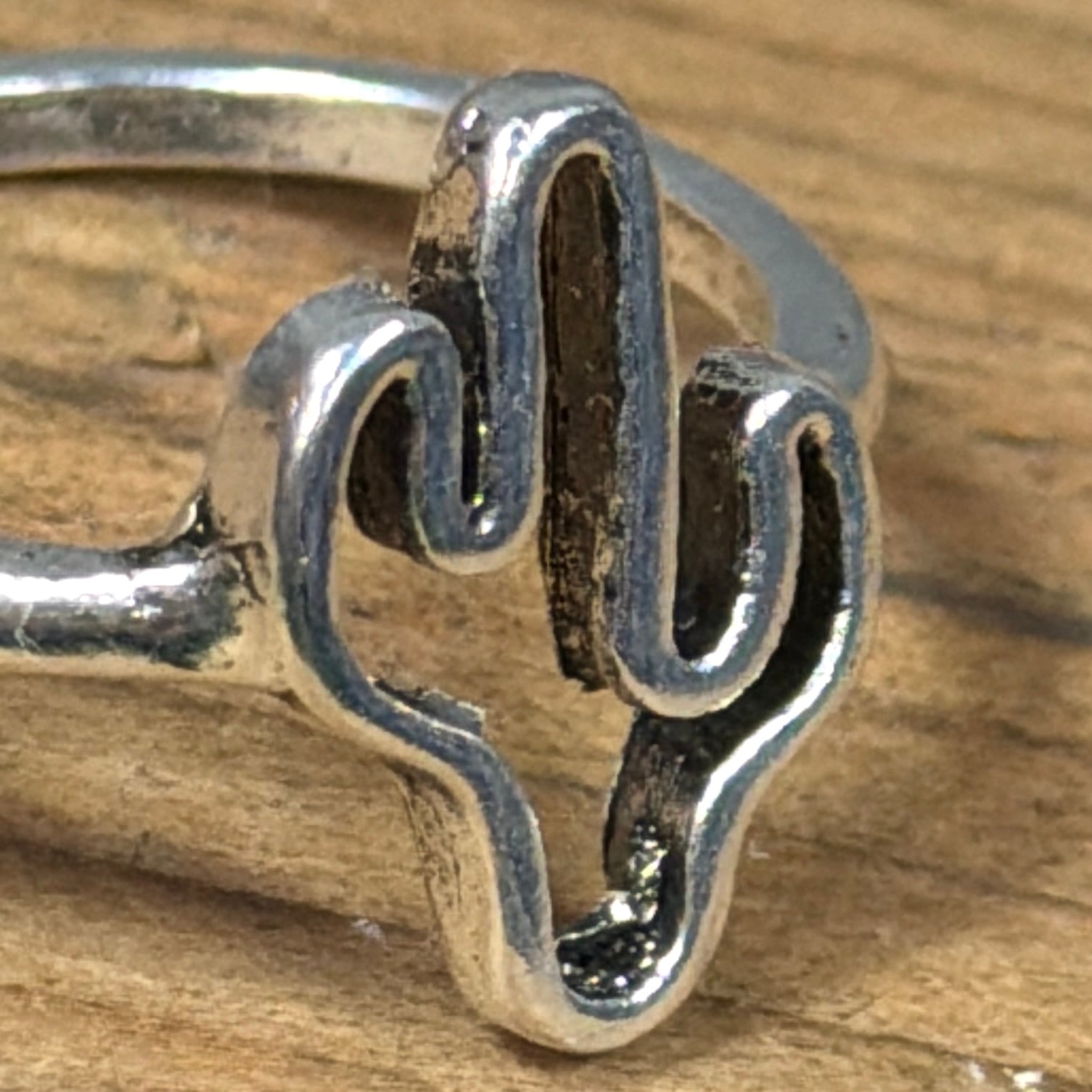 アウトラインのみで描かれたミニマルなデザインが、どこかユーモアも感じさせるアイテムです。主張しすぎないサイズ感なので、単体ではもちろん、他のリングとの重ね付けにもぴったり。ウエスタン・サボテン・デザートカルチャーが好きな方にもおすすめです。ユニセックスでご着用いただけます。