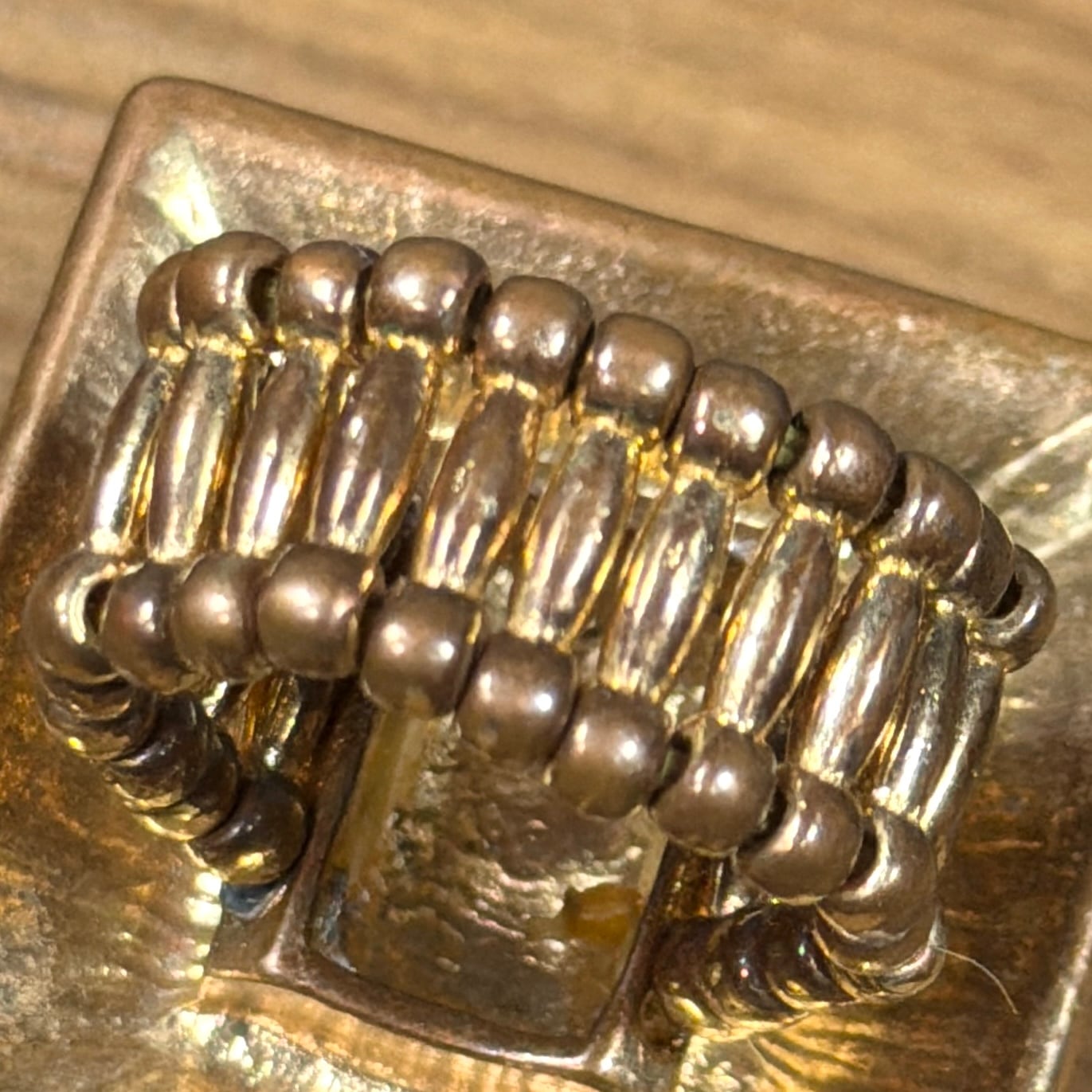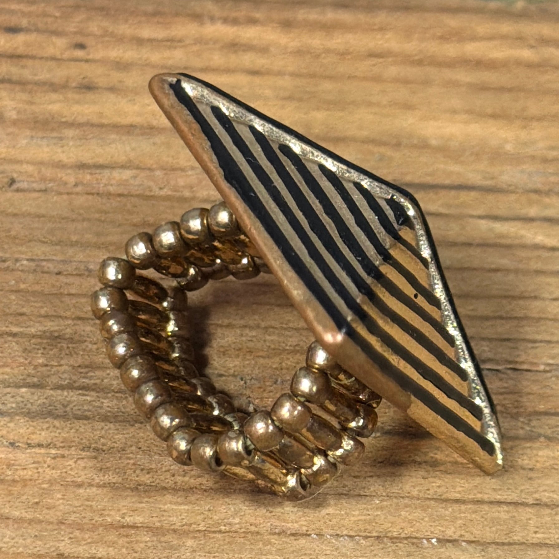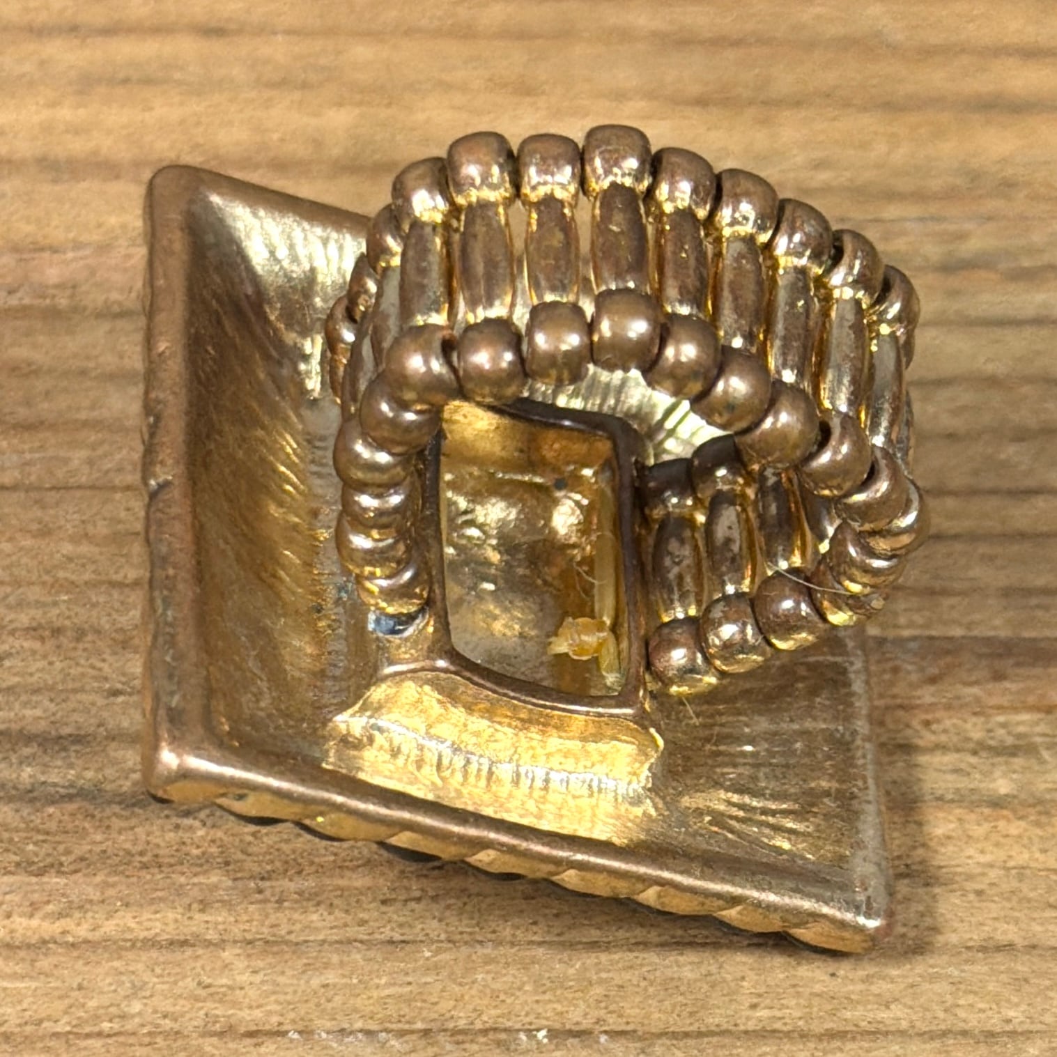 【Unisex】オリエンタル スクエア デザイン ゴム リング / 古着 アクセサリー ゴールド