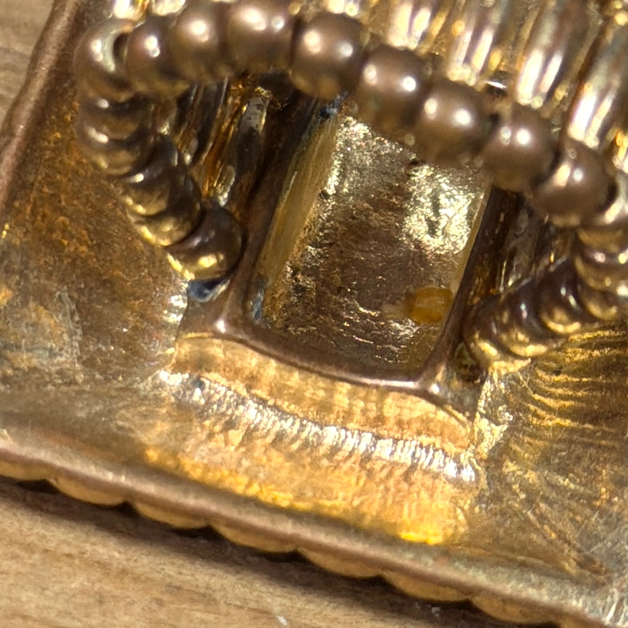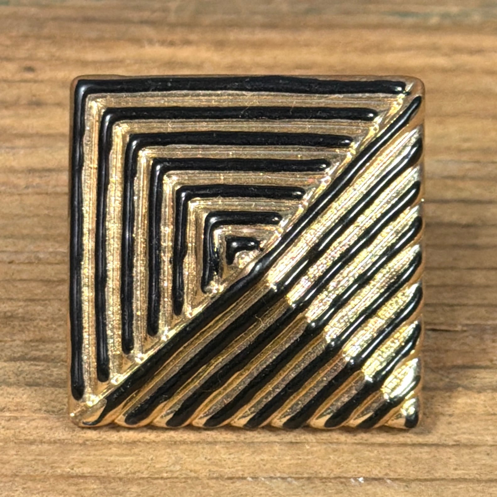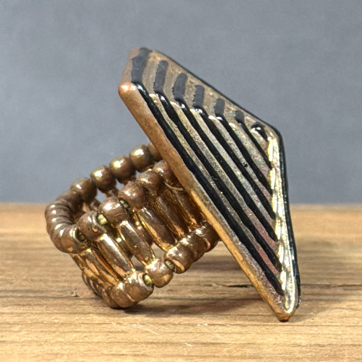 【Unisex】オリエンタル スクエア デザイン ゴム リング / 古着 アクセサリー ゴールド