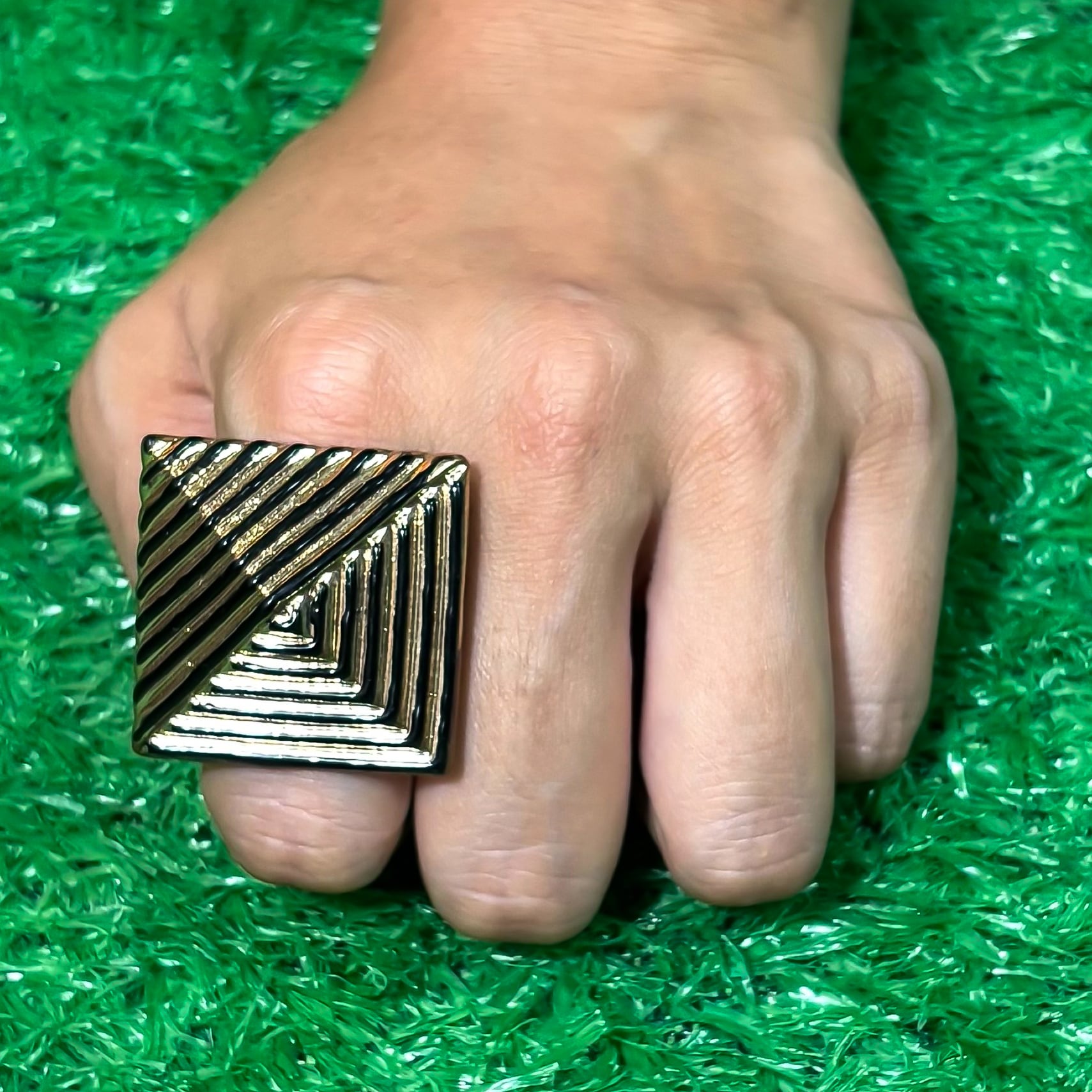 幾何学的なスクエアデザインが印象的なゴムタイプのリングです。
