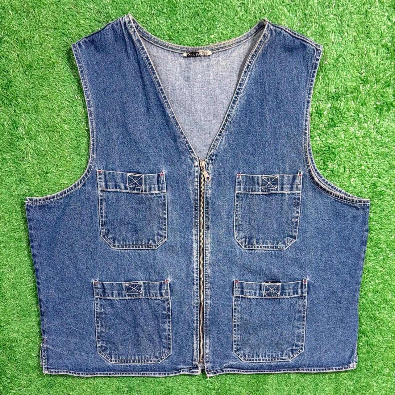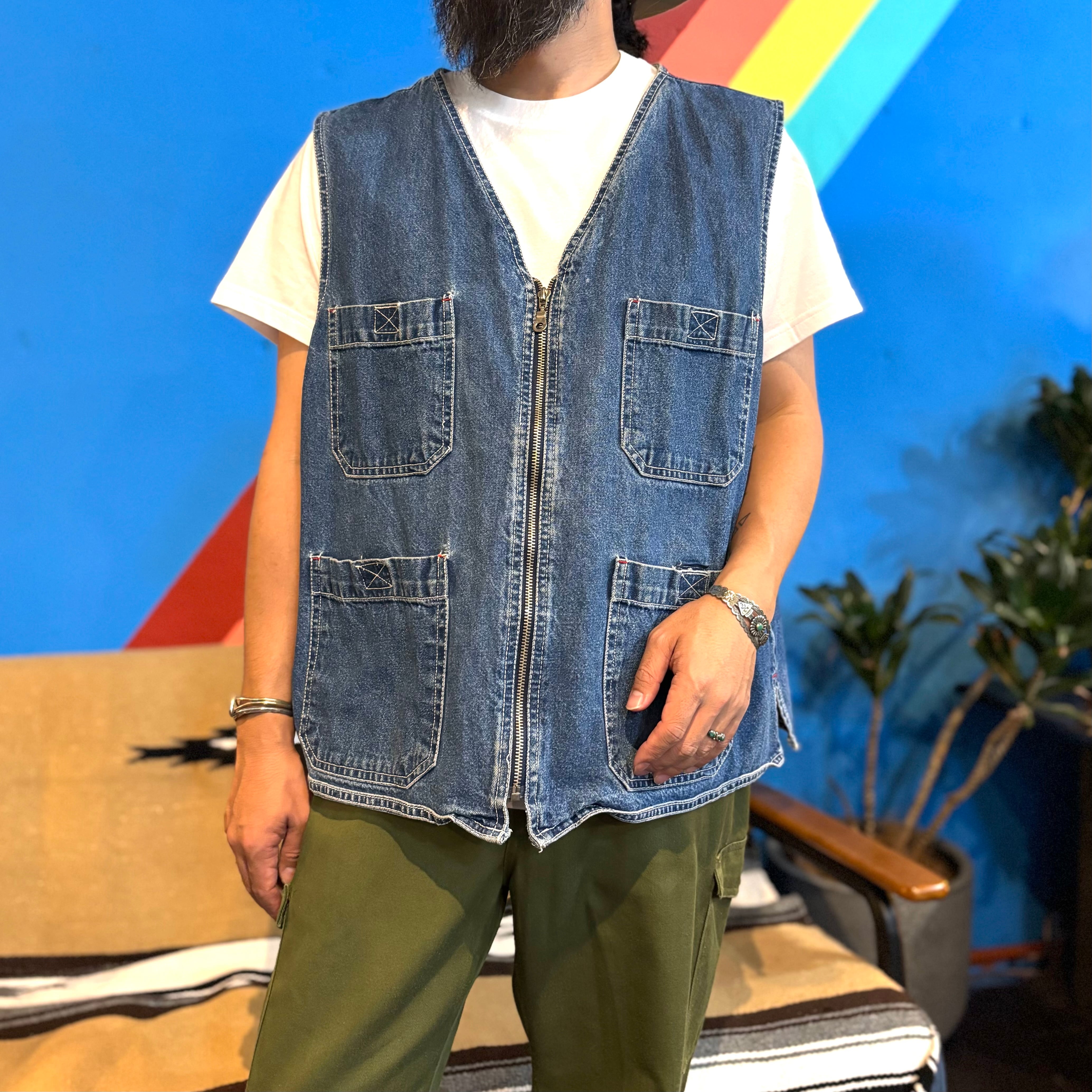 【Men's】 90s ジップアップ デニムベスト / 90年代 古着 デニム ベスト メンズ 1038