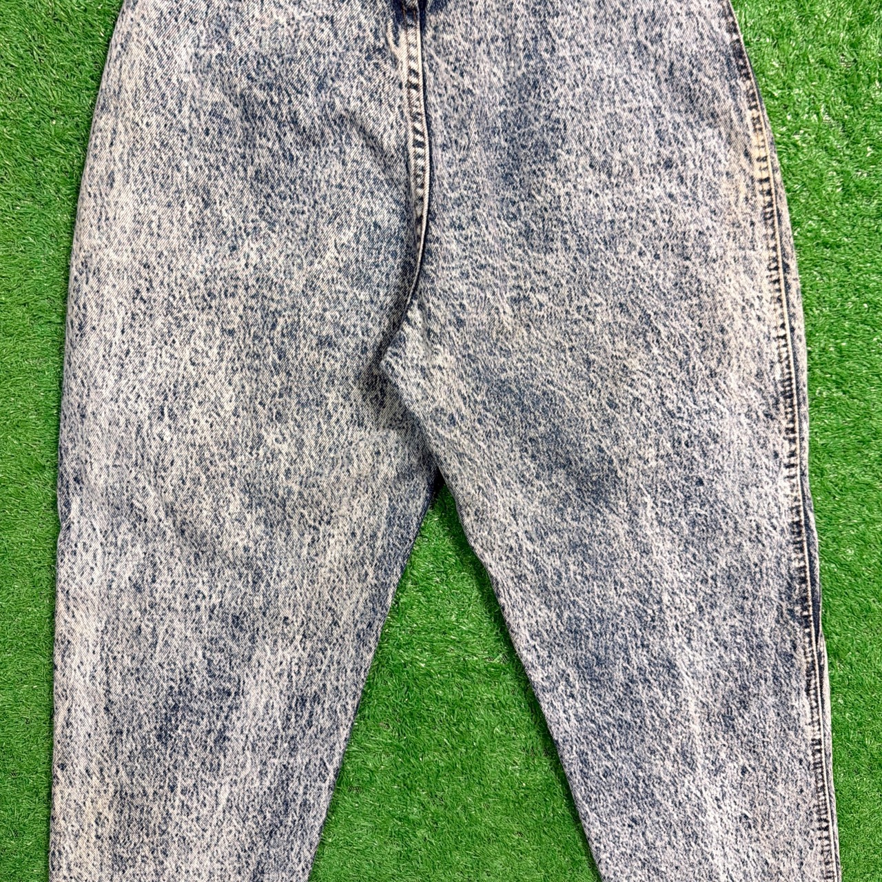 ウエスト部分にタックが入ったデザインで、腰まわりにゆとりを持たせつつ裾にかけてテーパードしたシルエットが魅力です。ハイウエスト仕様で脚長効果もあり、90sらしい雰囲気をしっかり感じられるデニムです。