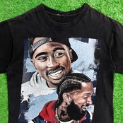【Men's】 2PAC and Nipsey Hussle Tシャツ / 古着 ティーシャツ T-Shirts 黒 ブラック メンズ ラップT ラップティー rラップ ヒップホップ 1050