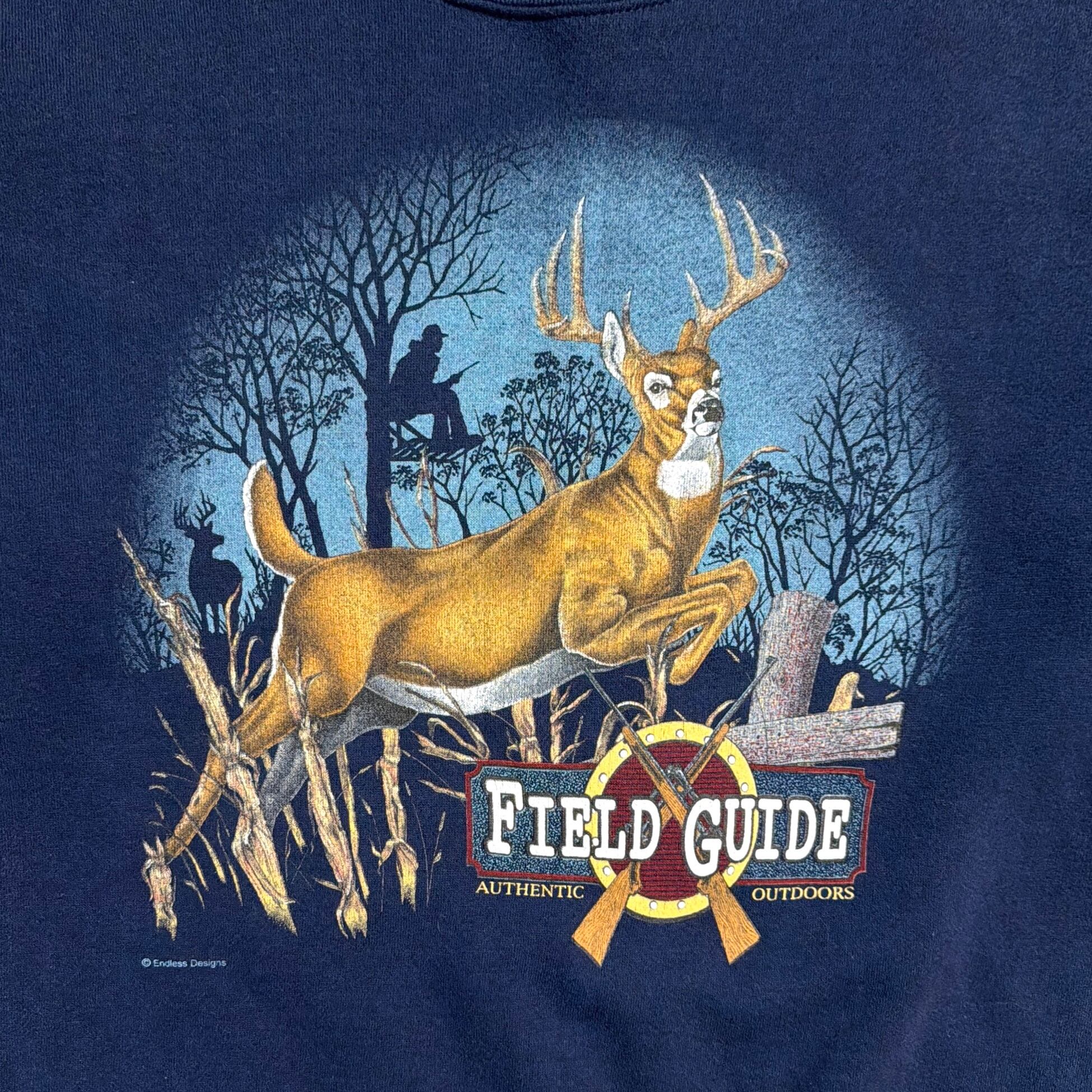 【Men's】 90s 鹿 イラスト スウェットシャツ / アメリカ製 USA製 90年代 古着 ネイビー 紺 動物 アニマル 1062
