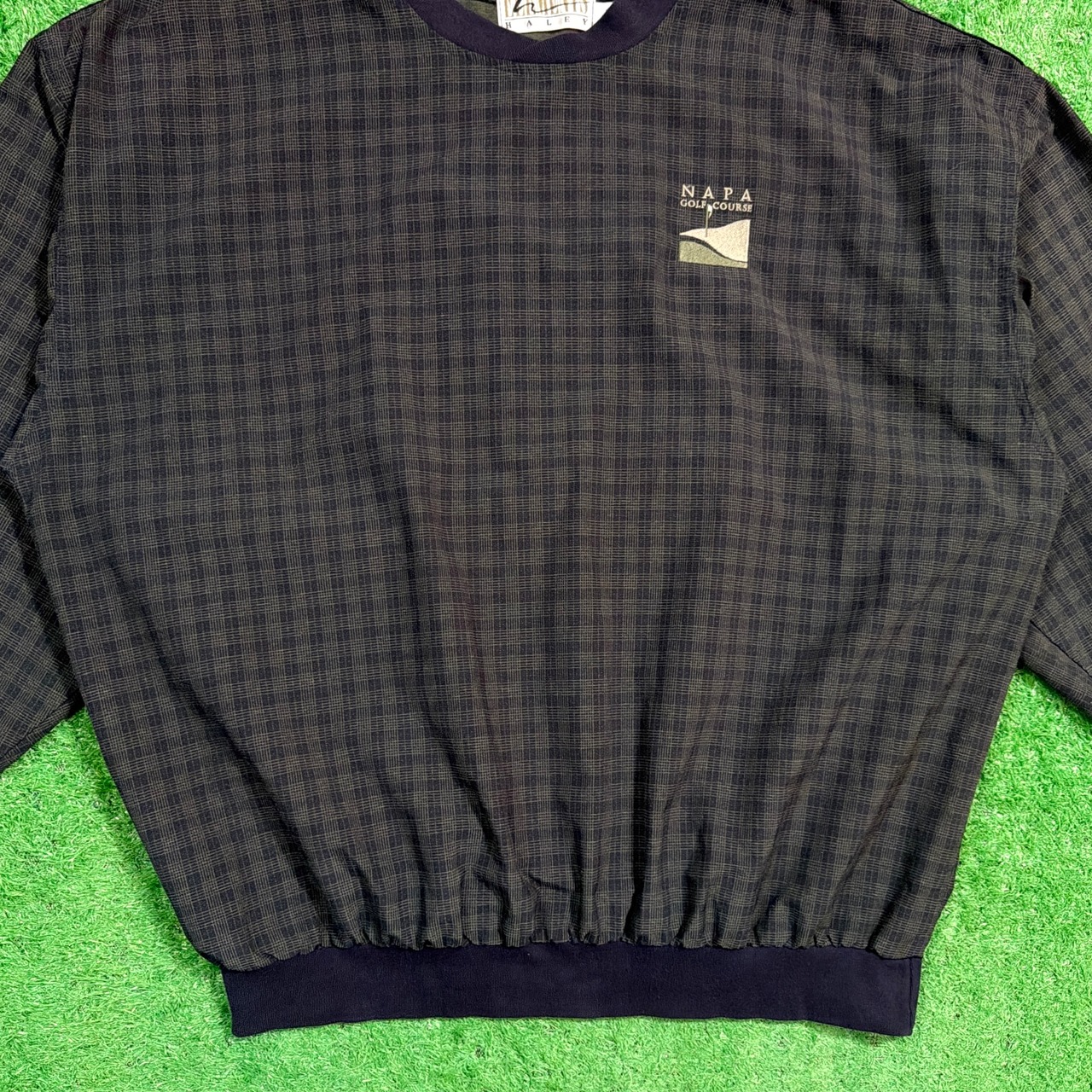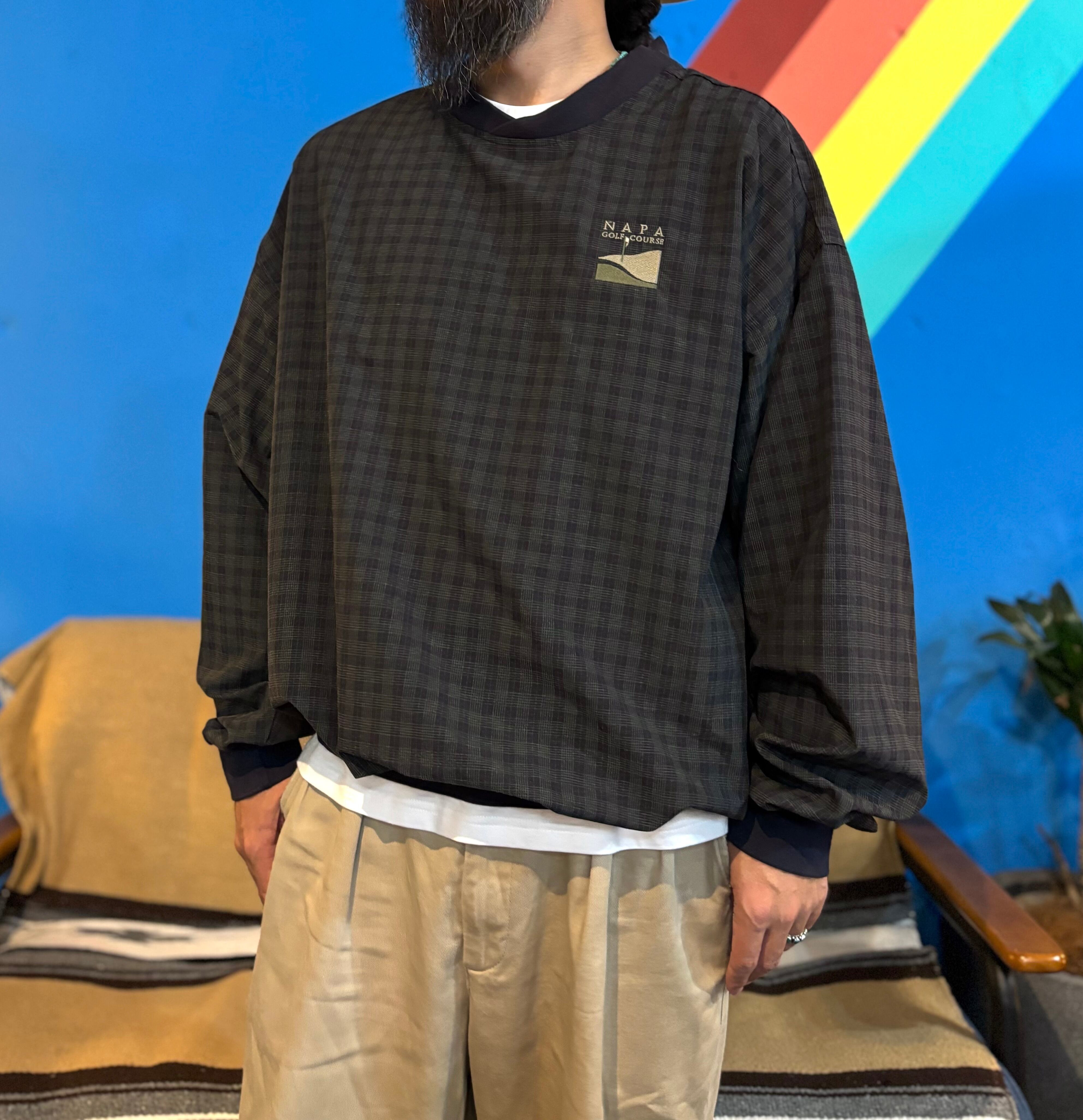 軽量でさらりとしたナイロン・ポリ素材を使用しており、薄手でライトアウター感覚で着られるアイテム。フロントには「NAPA GOLF COURSE」の刺繍ロゴが入り、カリフォルニア州ナパにあるゴルフコースのユニフォーム・スタッフウェアとして使用されていたものと思われます。