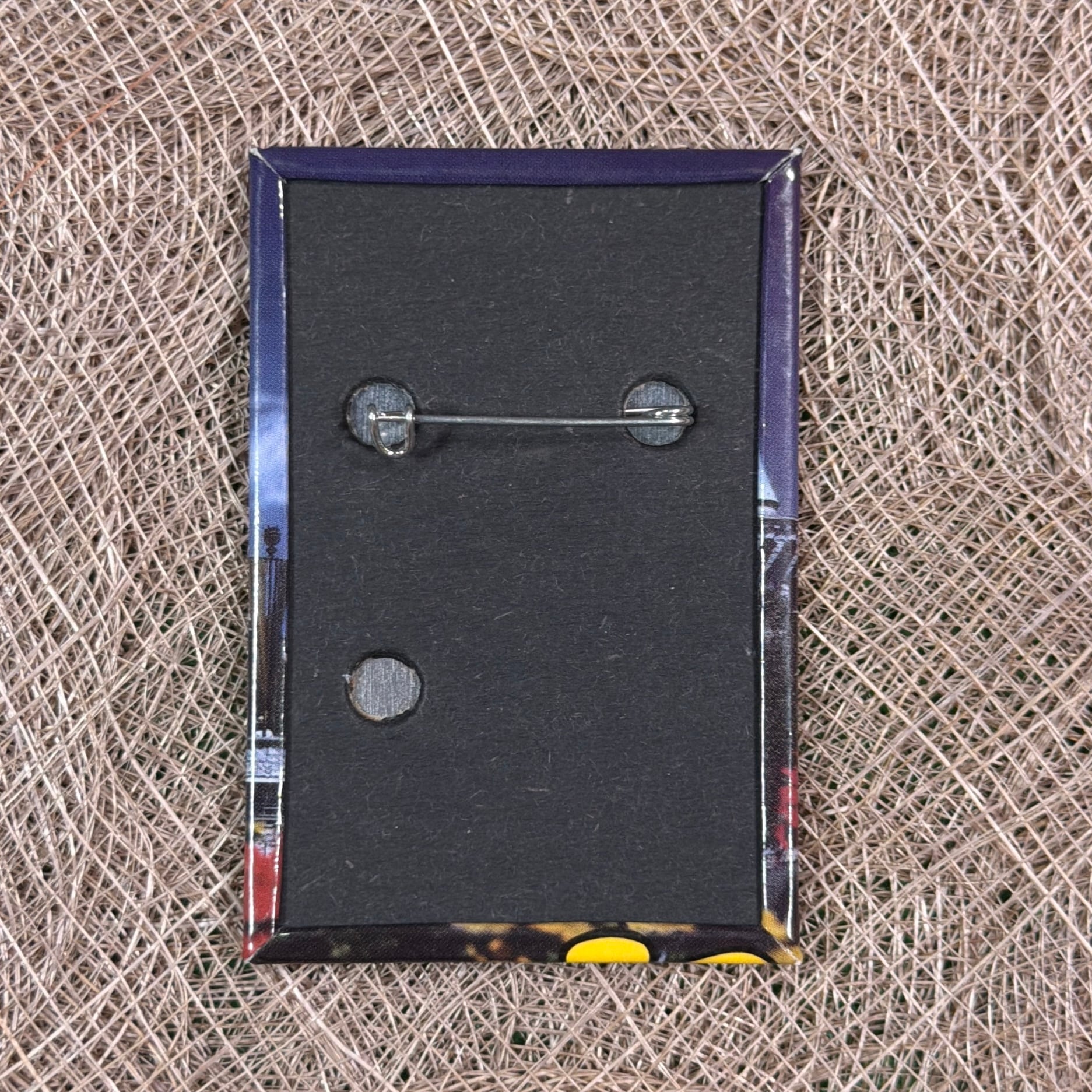 「40 YEARS TODAY」の文字がプリントされた、当時のパーク公式アニバーサリーアイテムです。長方形タイプの缶バッジで、縦約7.8cm × 横約5.3cmの存在感あるサイズ感。