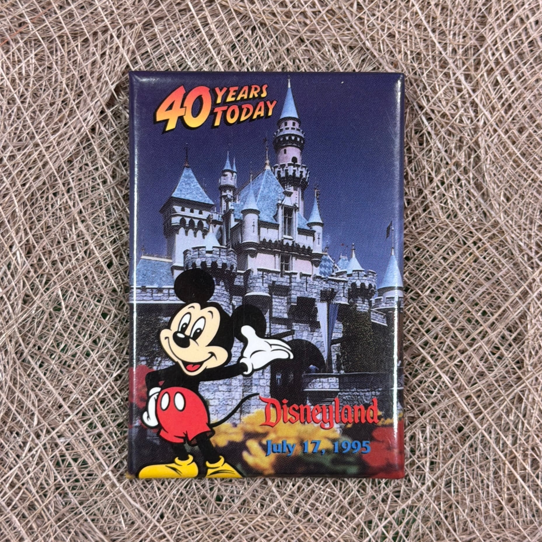 1995年にカリフォルニア・アナハイムのDisneylandで開催された、開園40周年記念(40 Years Today) の缶バッジです。