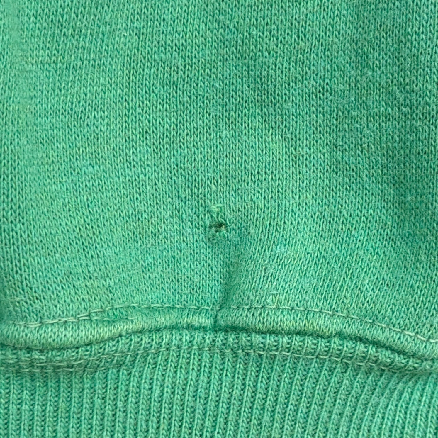 鮮やかなグリーンが程よく色褪せ、全体に古着らしいフェード感やダメージ感が雰囲気抜群な一着。