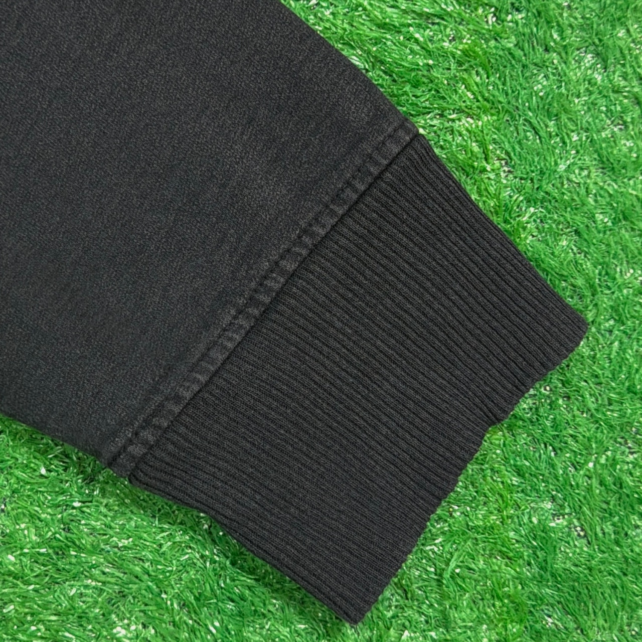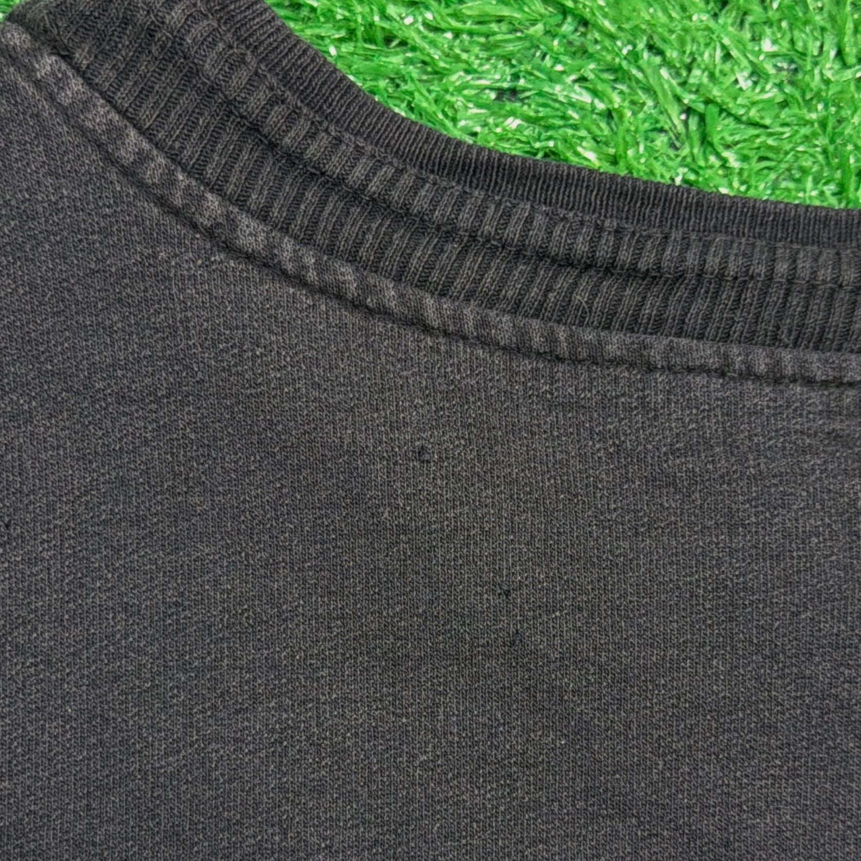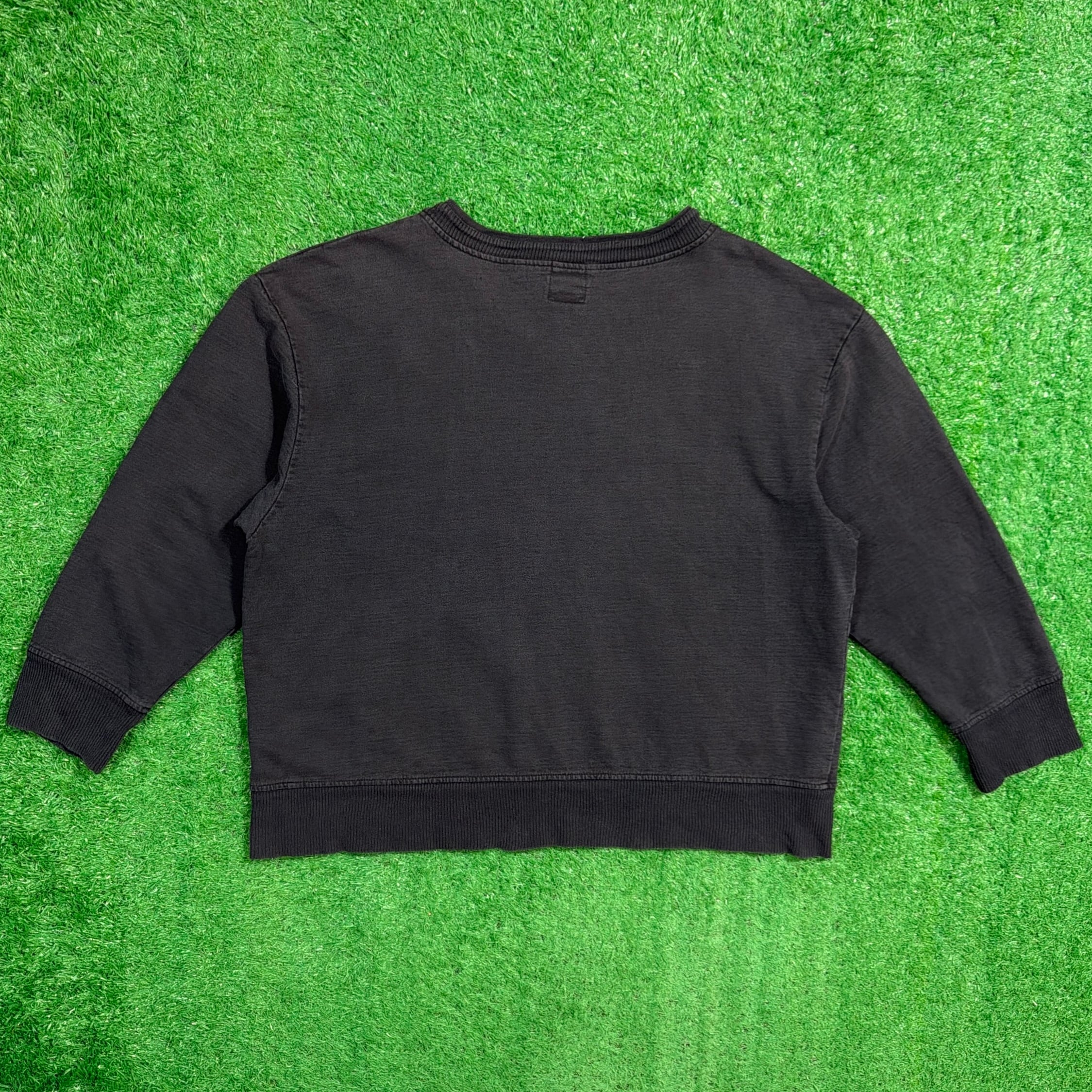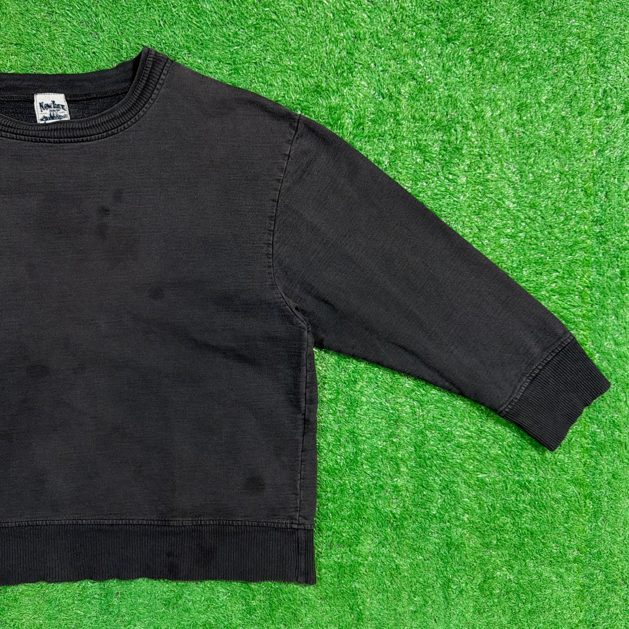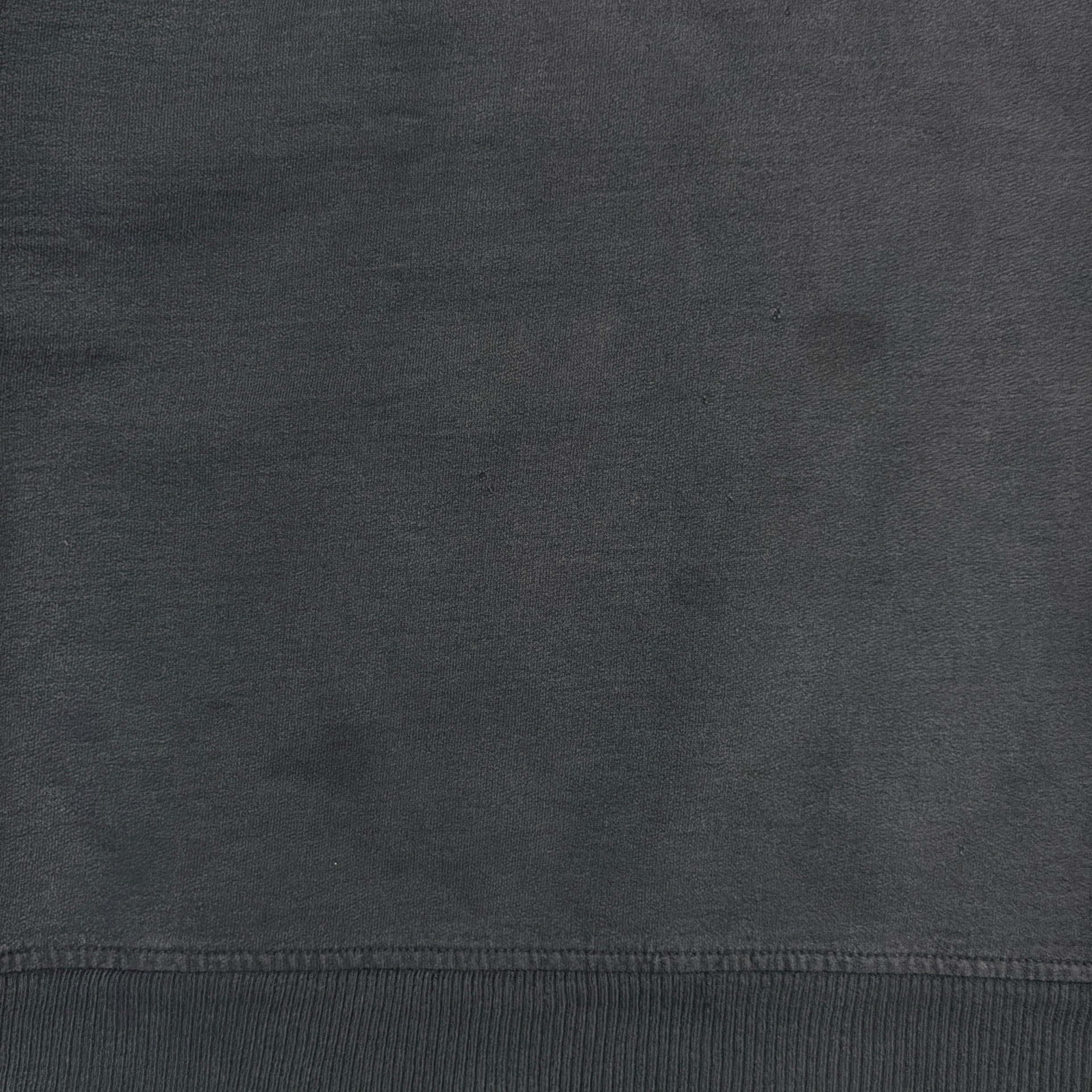 フェードしたブラックカラーが雰囲気抜群で、くたっとした質感が古着らしい味わいを引き立てます。やや短丈のボックスシルエットで、袖と裾のリブ幅が広めに取られたデザイン。