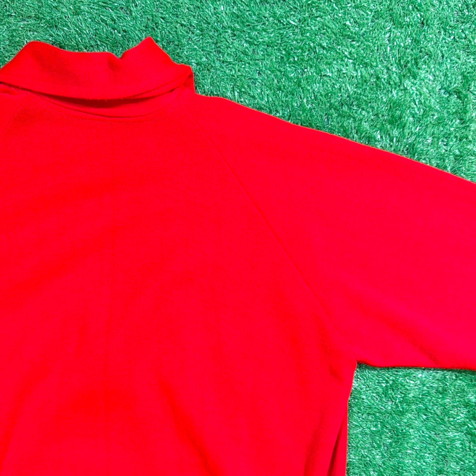 赤いボディにネイビーのリブラインが映える、70sらしいスポーツテイストの1枚です。