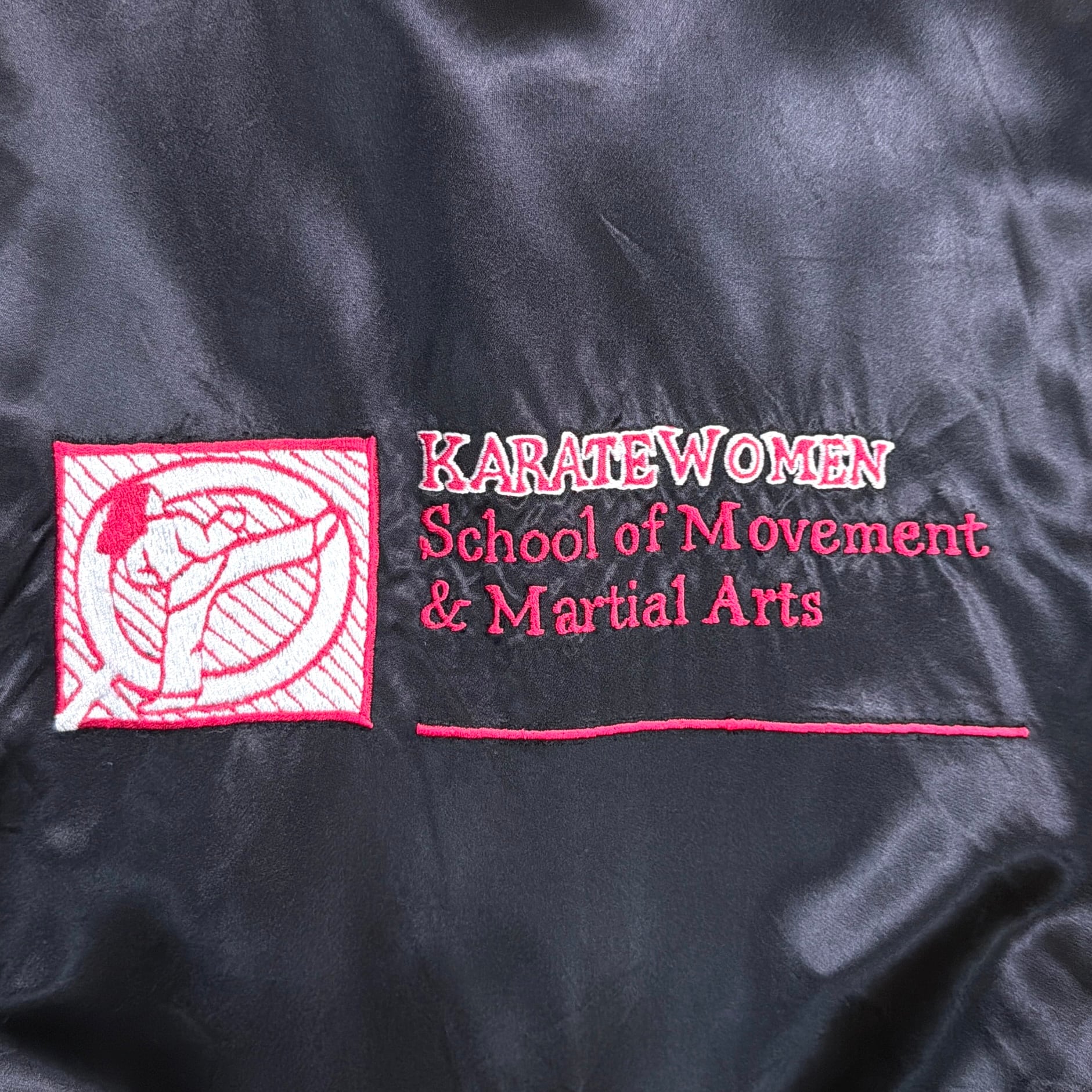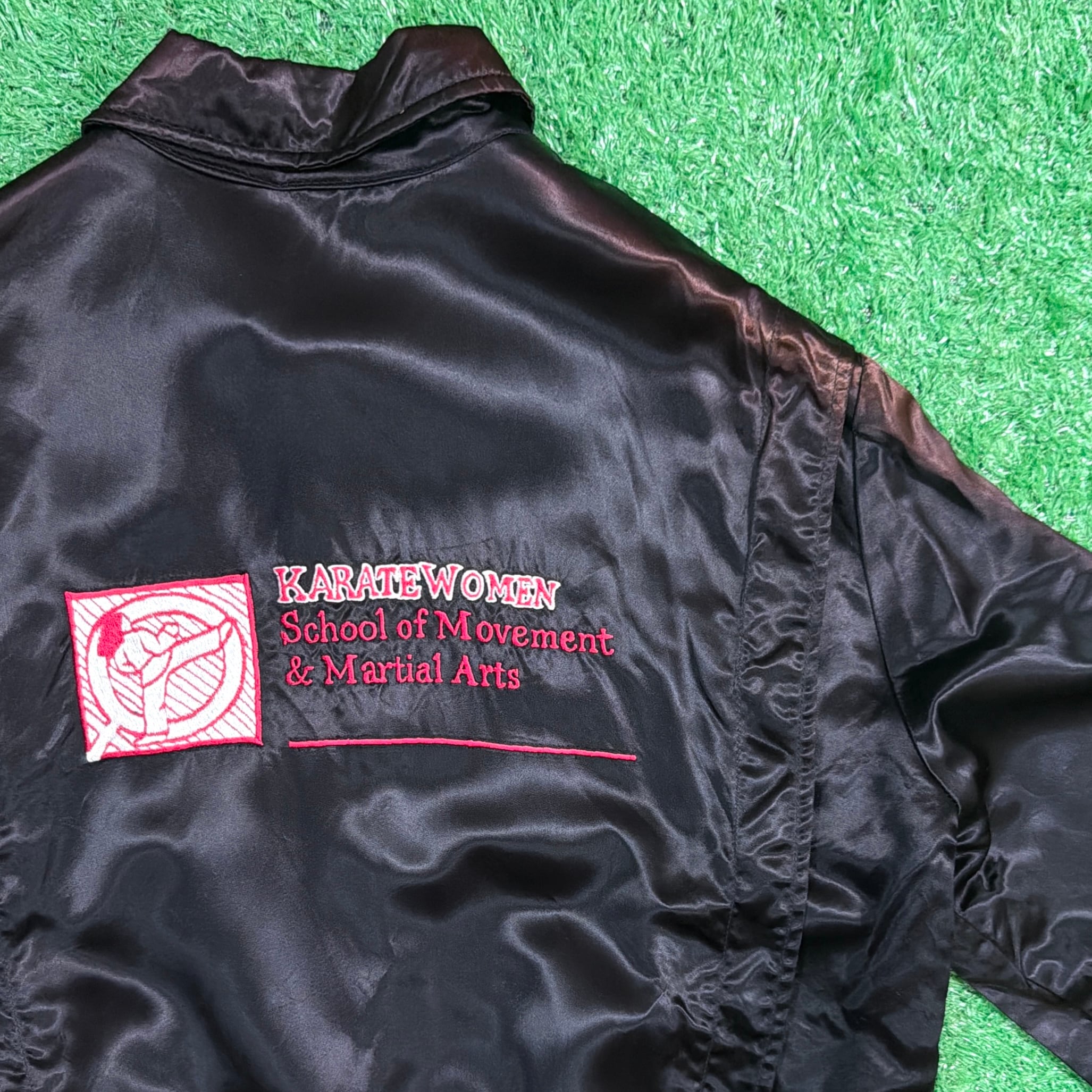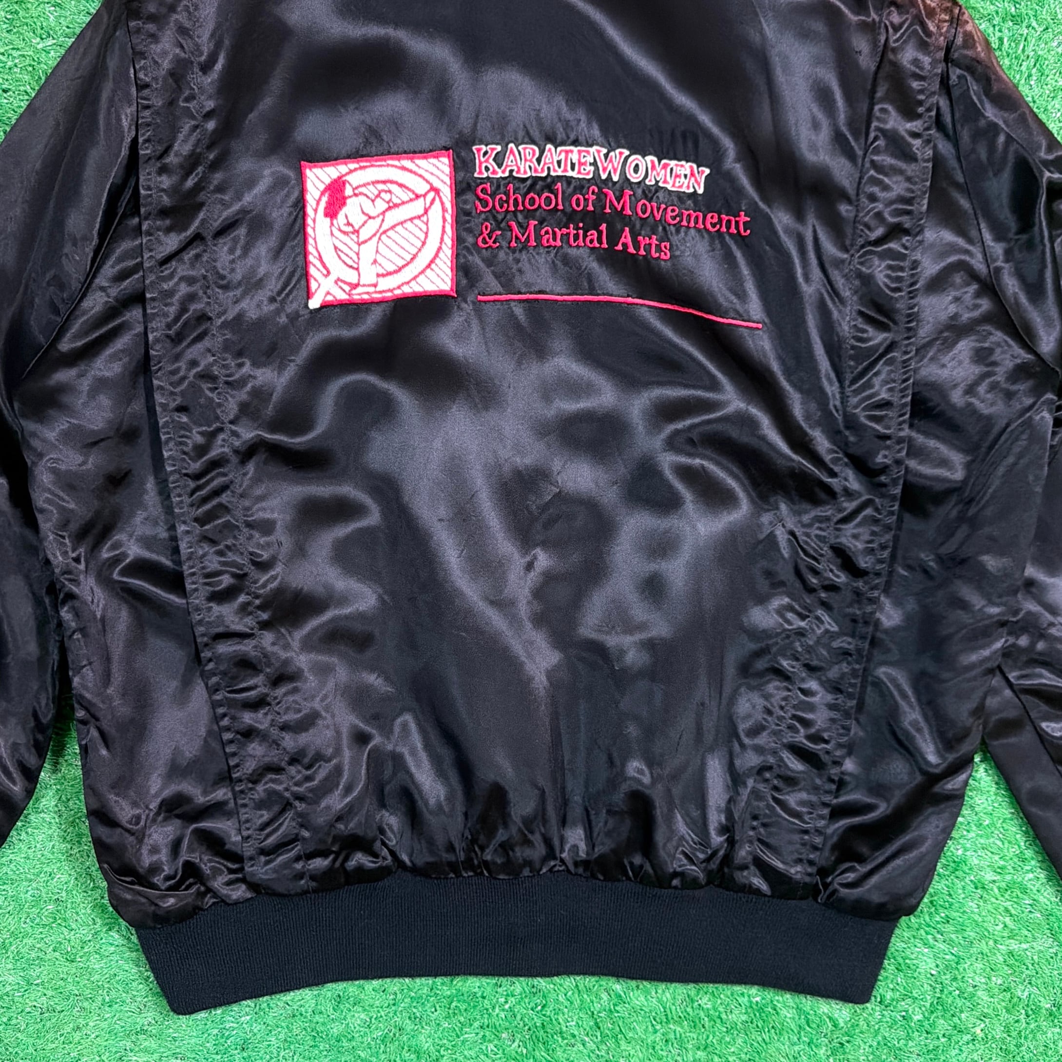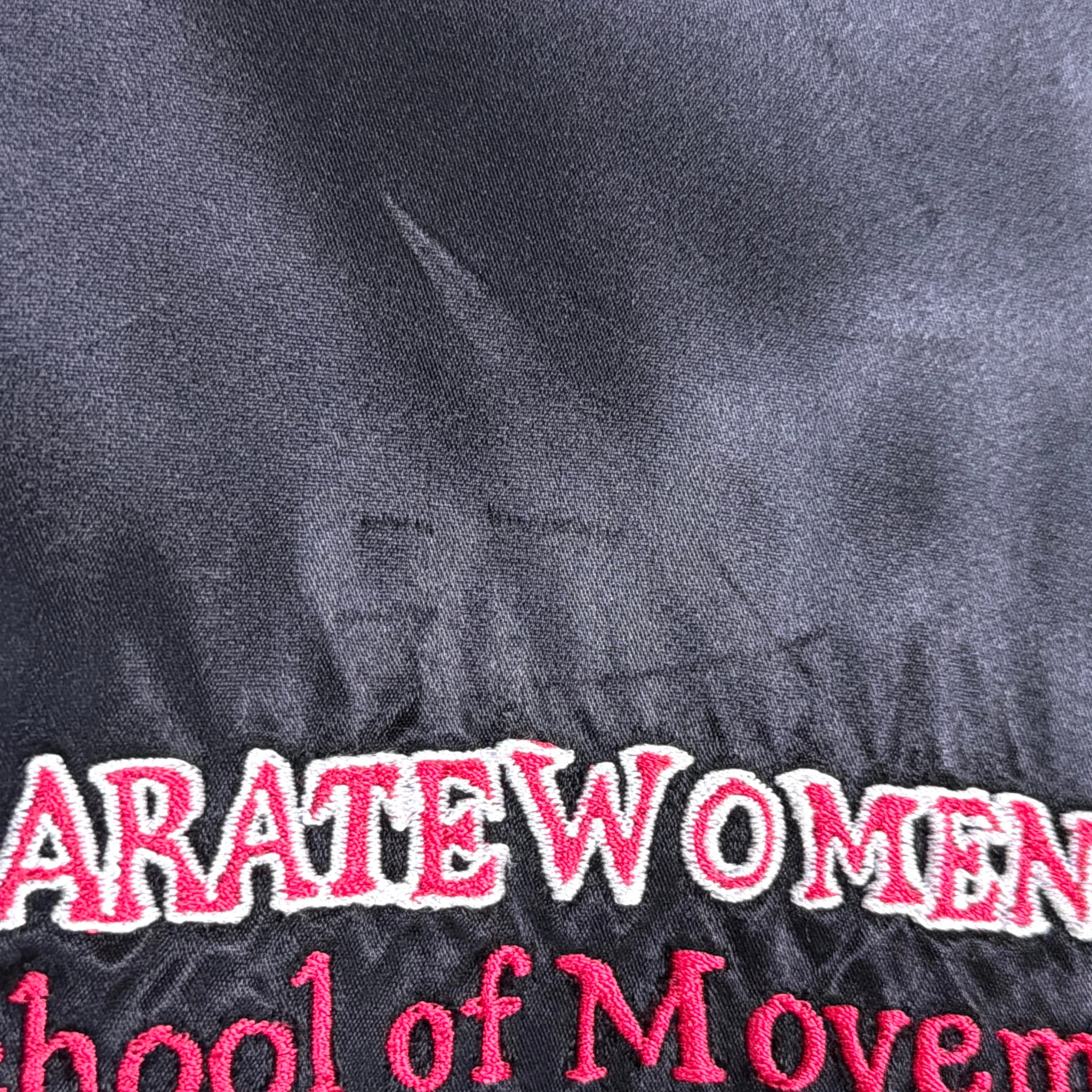 【Lady's】 80s KARATE WOMEN 刺繍入り サテン ジャケット / 80年代 古着 ブルゾン ジャンパー スタンドカラー 空手 黒 ブラック レディース 1099