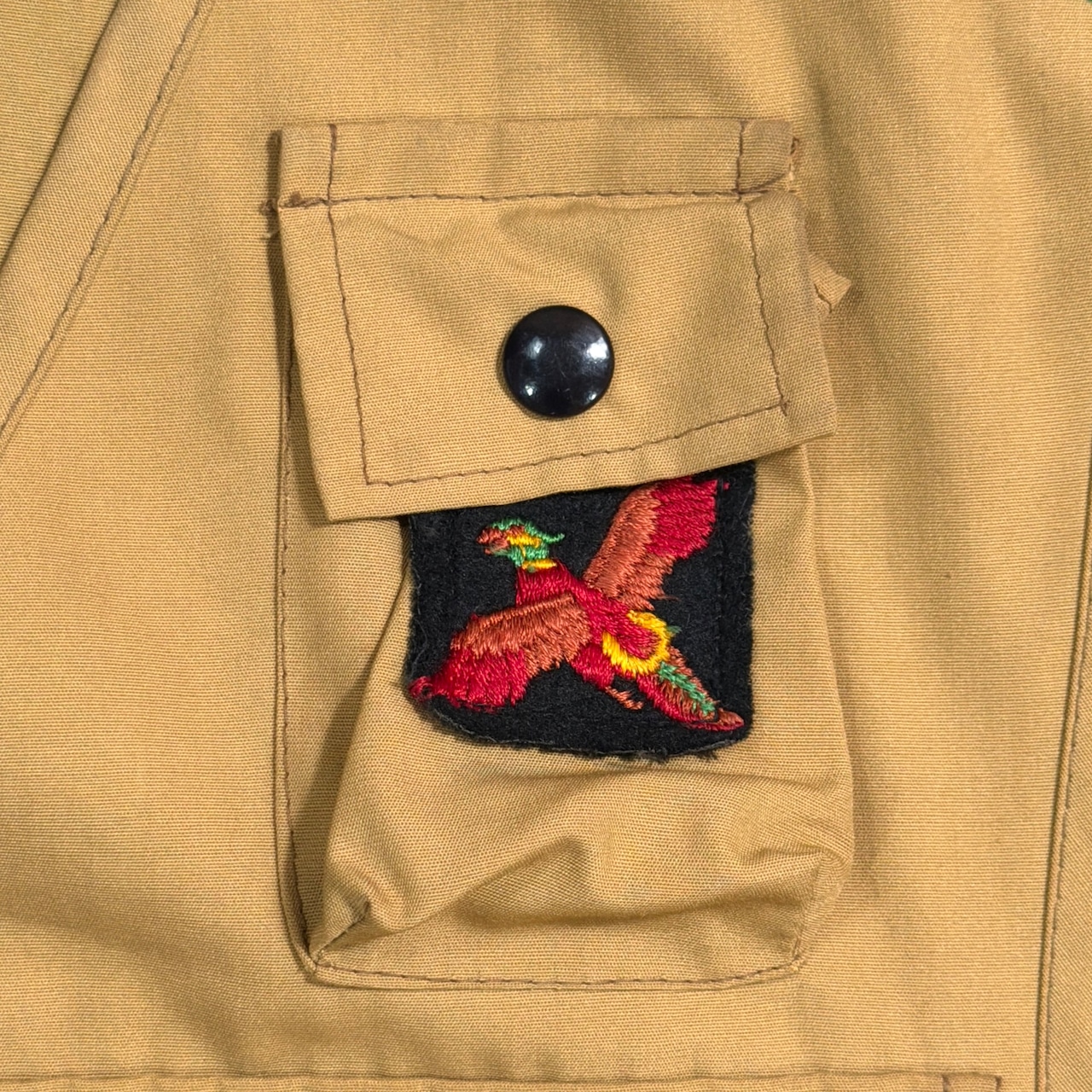 背面には大きなポケットが付き、当時のハンティングウェアらしい機能的なディテールが光ります。合わせ方次第で通年着まわせる万能アイテム。