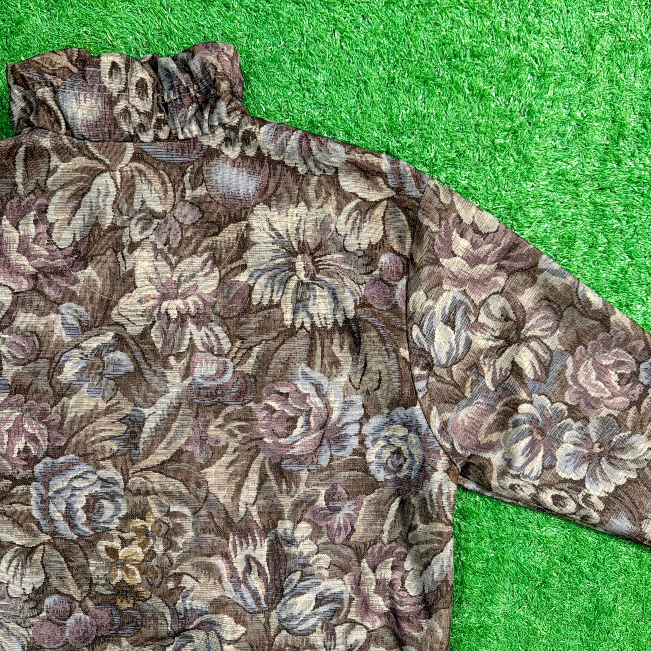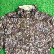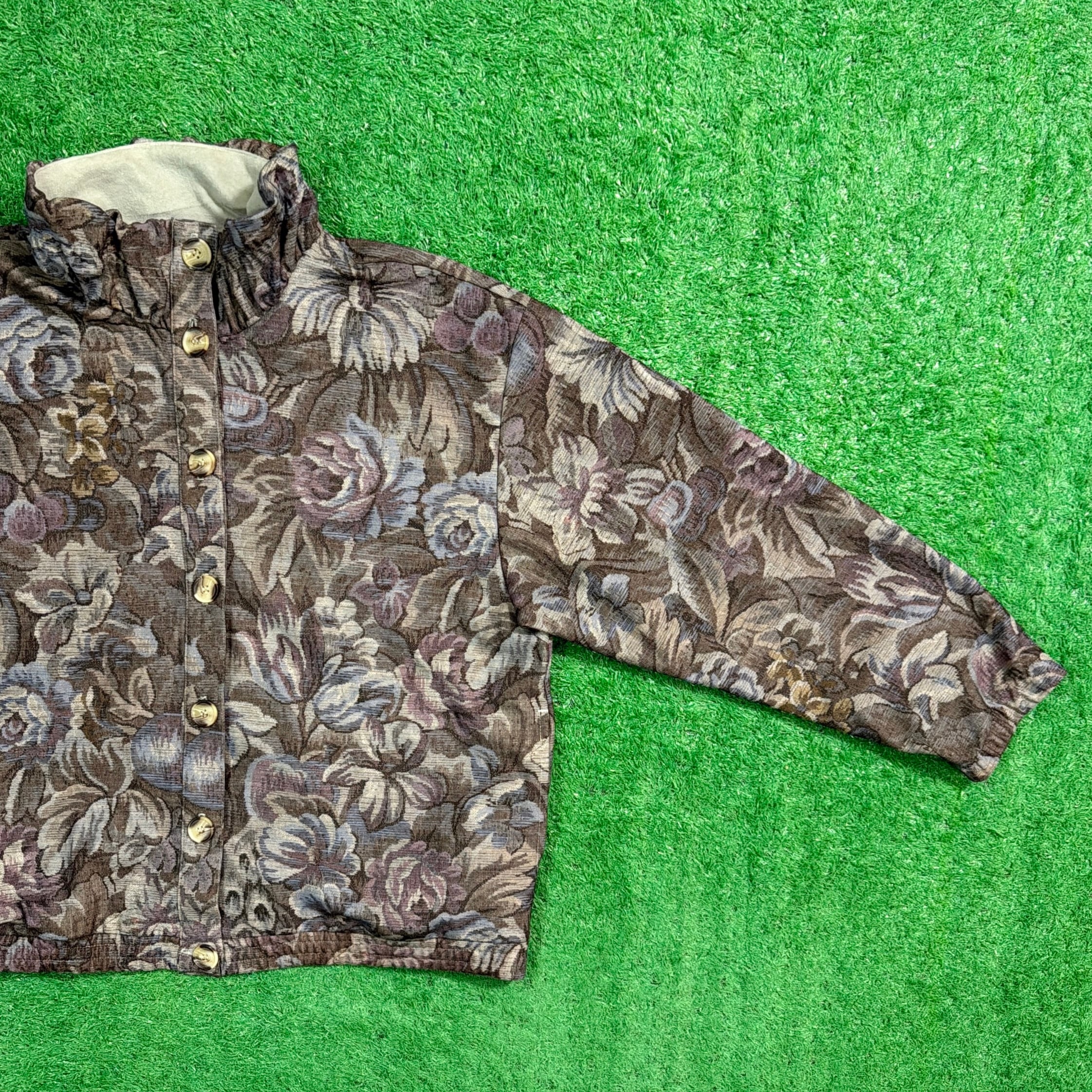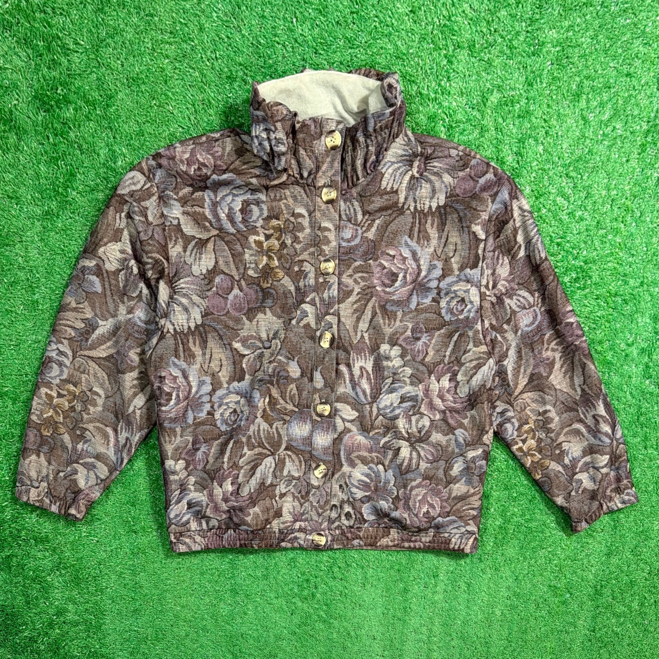 【Lady's】 90s ボタニカル柄 スタンドカラー ジップアップ ジャケット / アメリカ製 USA製 90年代 古着 ジャンパー レディース 1114