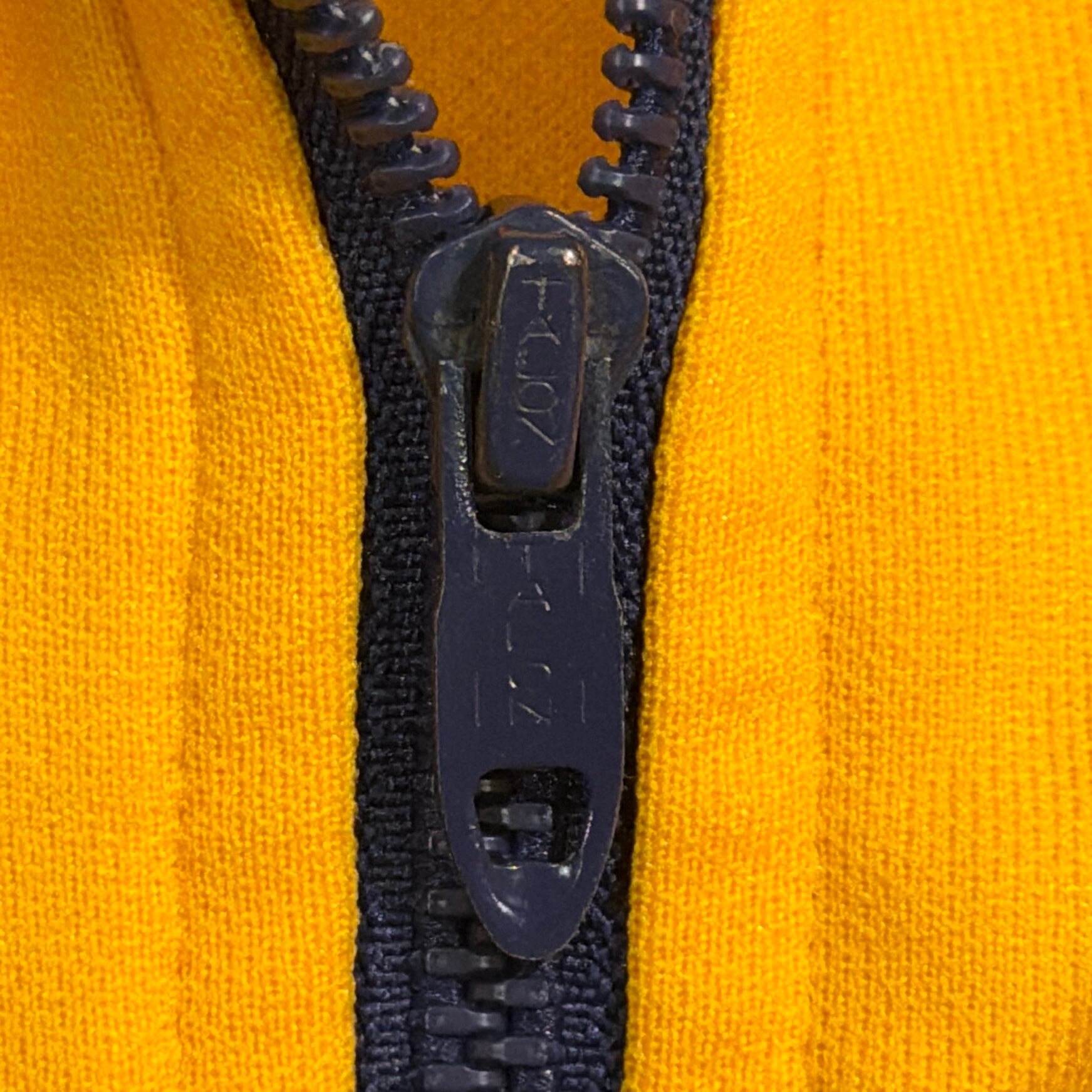 明るいイエローにブラックのラインが映えるデザイン。スポーティーながらも80sらしいレトロな雰囲気を感じさせる一着です。