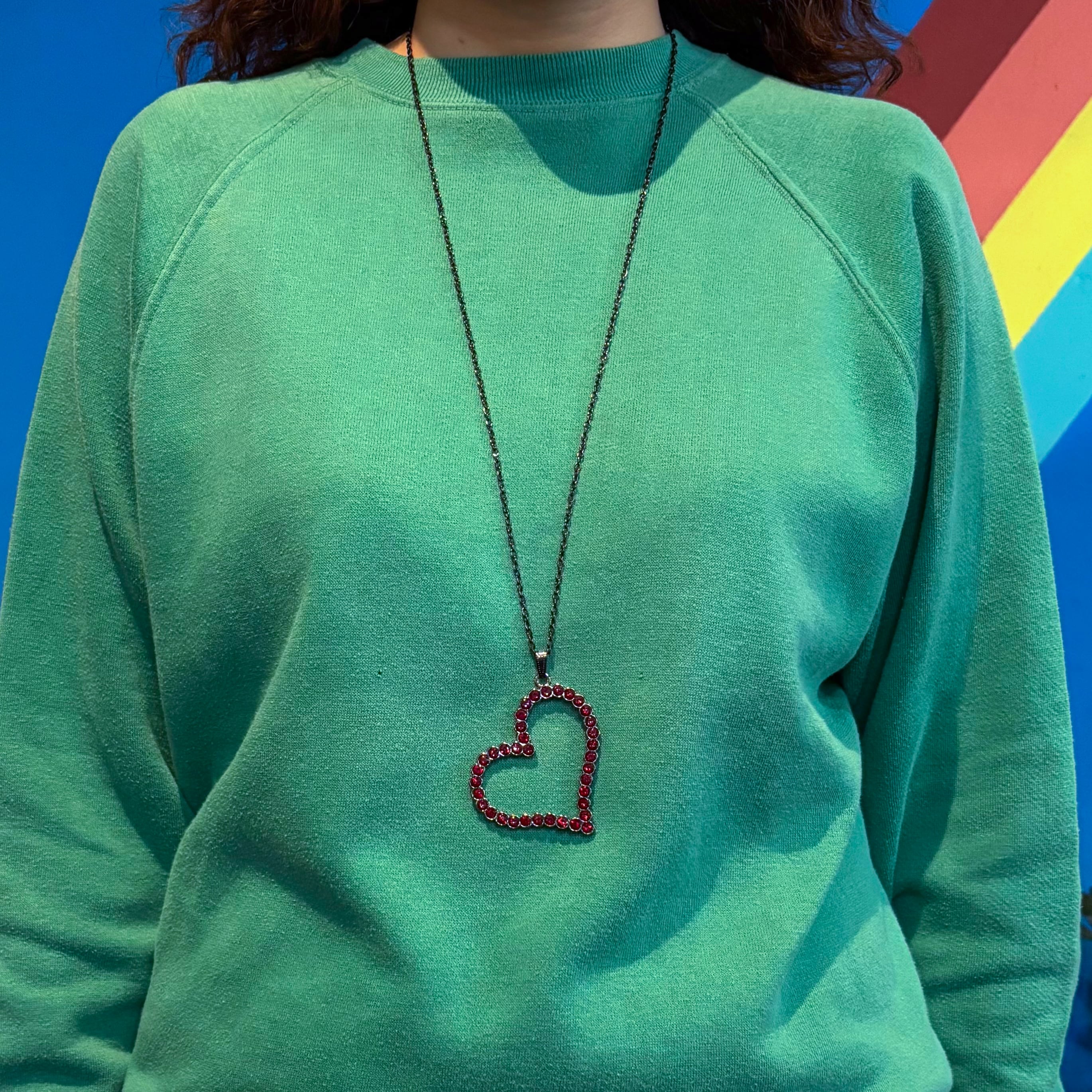 【Unisex】 レッド ビジュー ハート モチーフ スパンコール ネックレス / 古着 アクセサリー