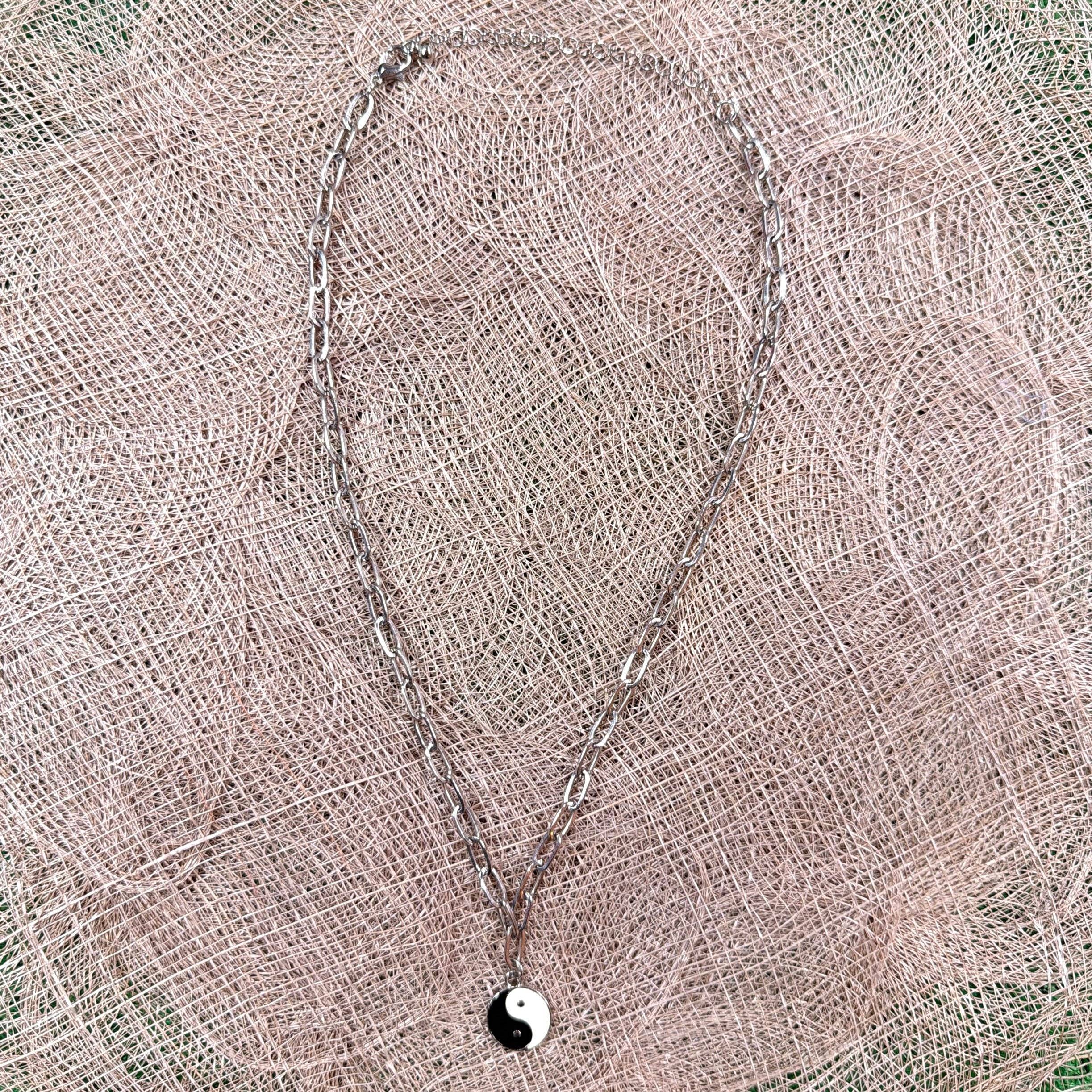 ブラックとホワイトのコントラストが印象的な、陰陽モチーフのチャームネックレスです。