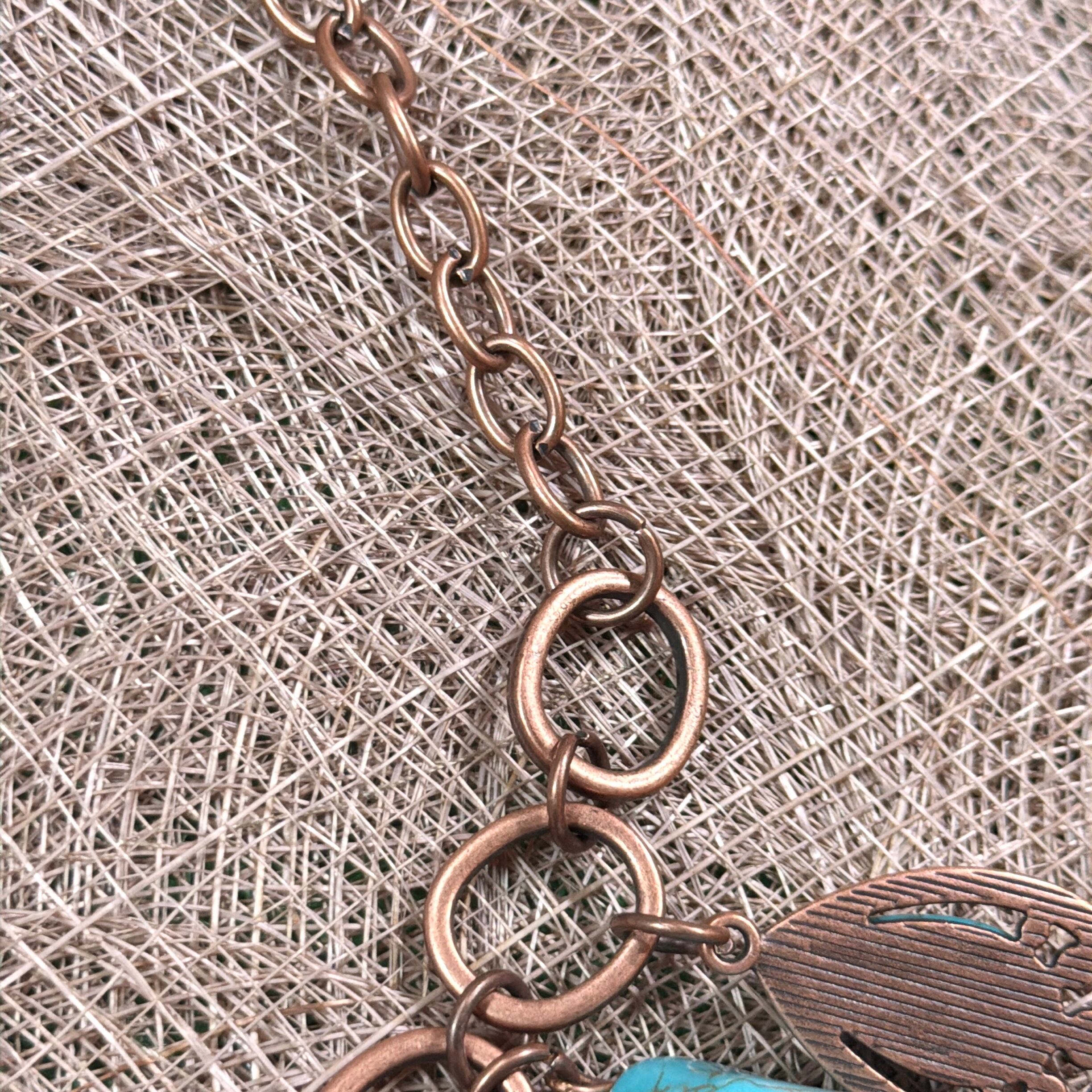 【Unisex】 ターコイズ & コンチョ モチーフ ブロンズ カラー ネックレス / 古着 アクセサリー