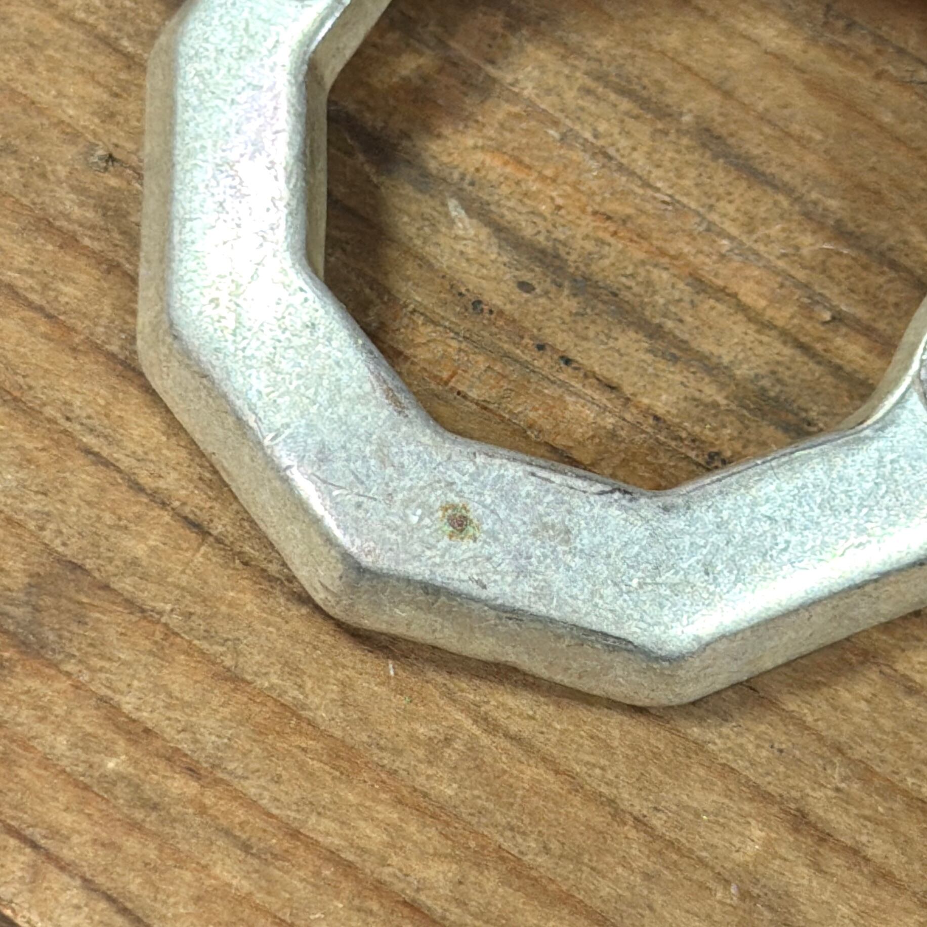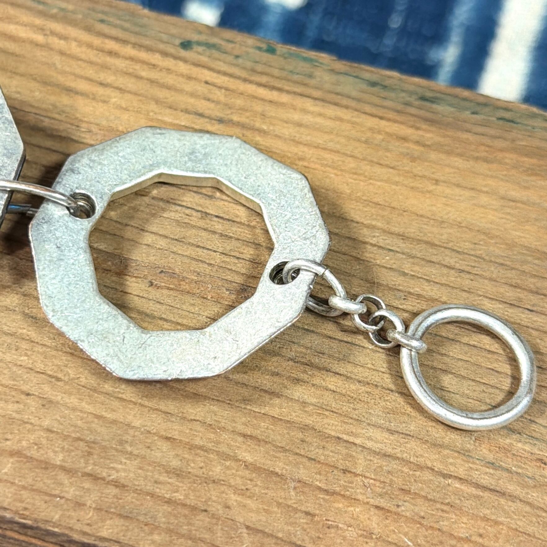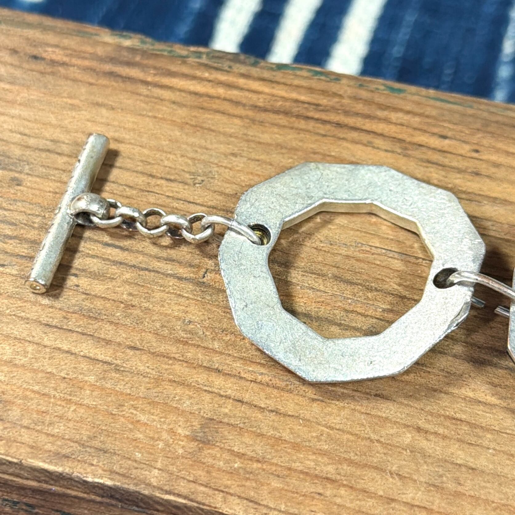 モチーフが連なる構築的なフォルムで、モダンな印象を与えながらもヴィンテージらしい質感が魅力。軽やかなつけ心地ながら、しっかりと存在感のあるデザインです。ユニセックスで使える、スタイルの主役になるアクセサリーです。