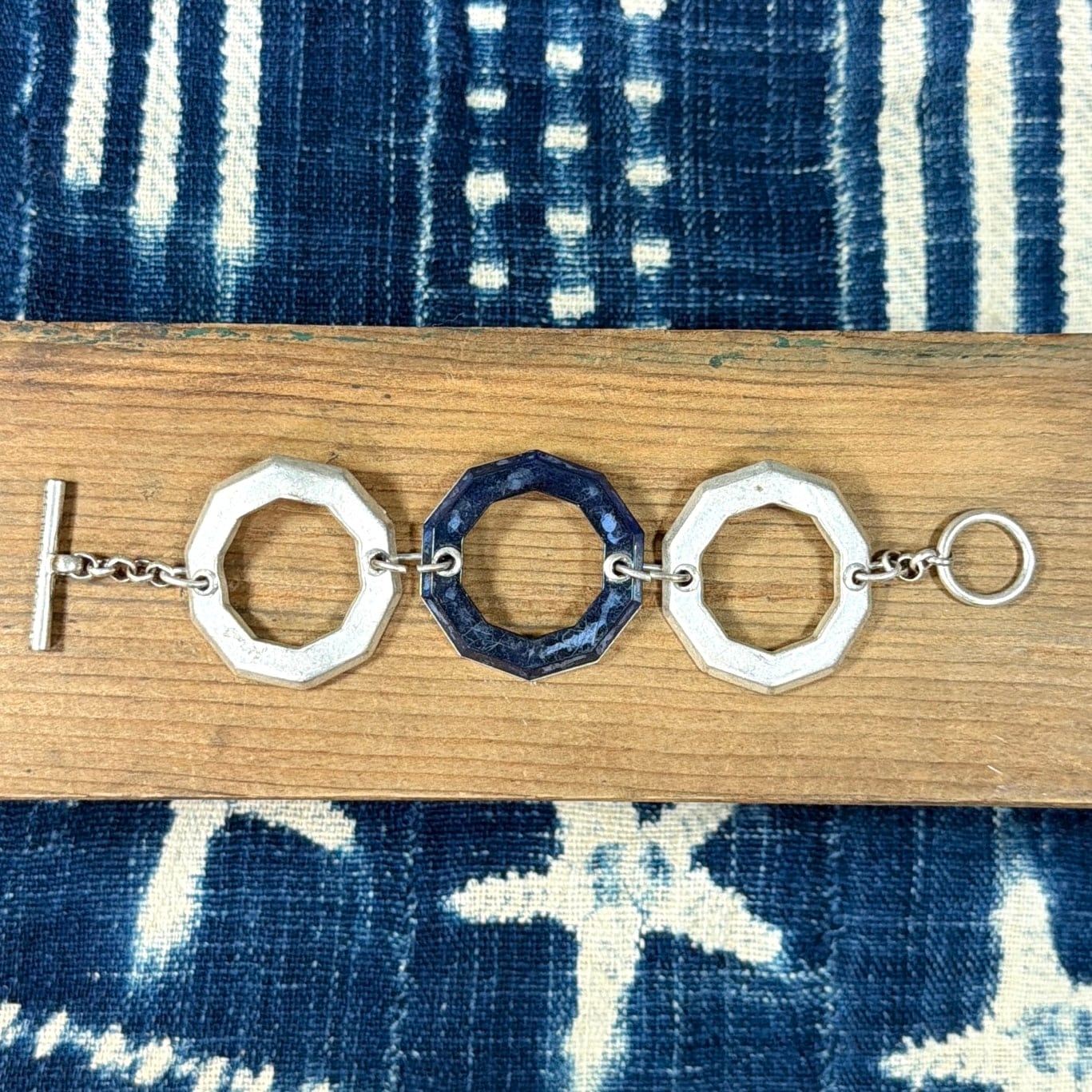【Unisex】ブラック シルバー デザイン ブレスレット / アクセサリー 古着