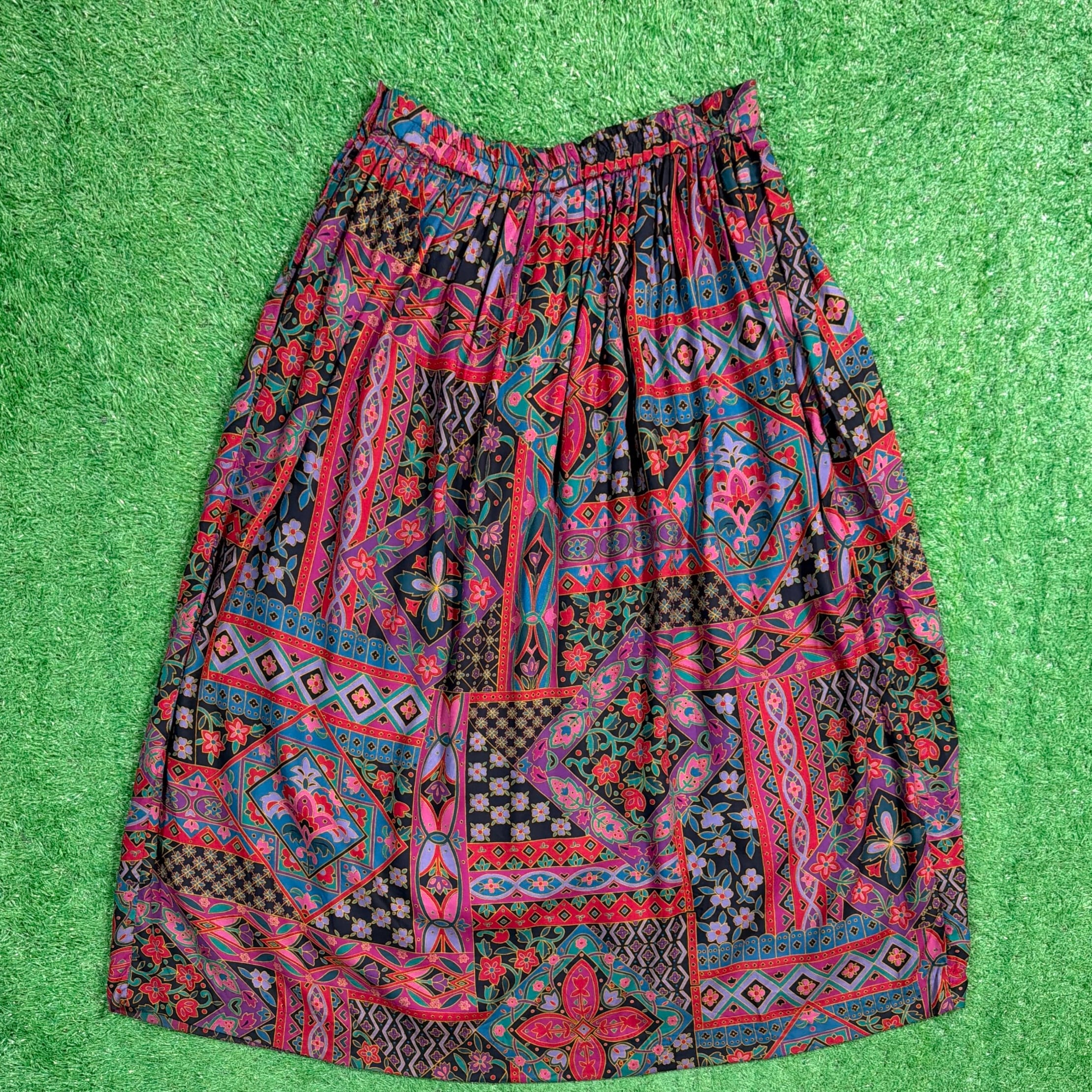 【Lady's】 80s 総柄 フレア スカート / アメリカ製 USA製 80年代 古着 レディース 1126
