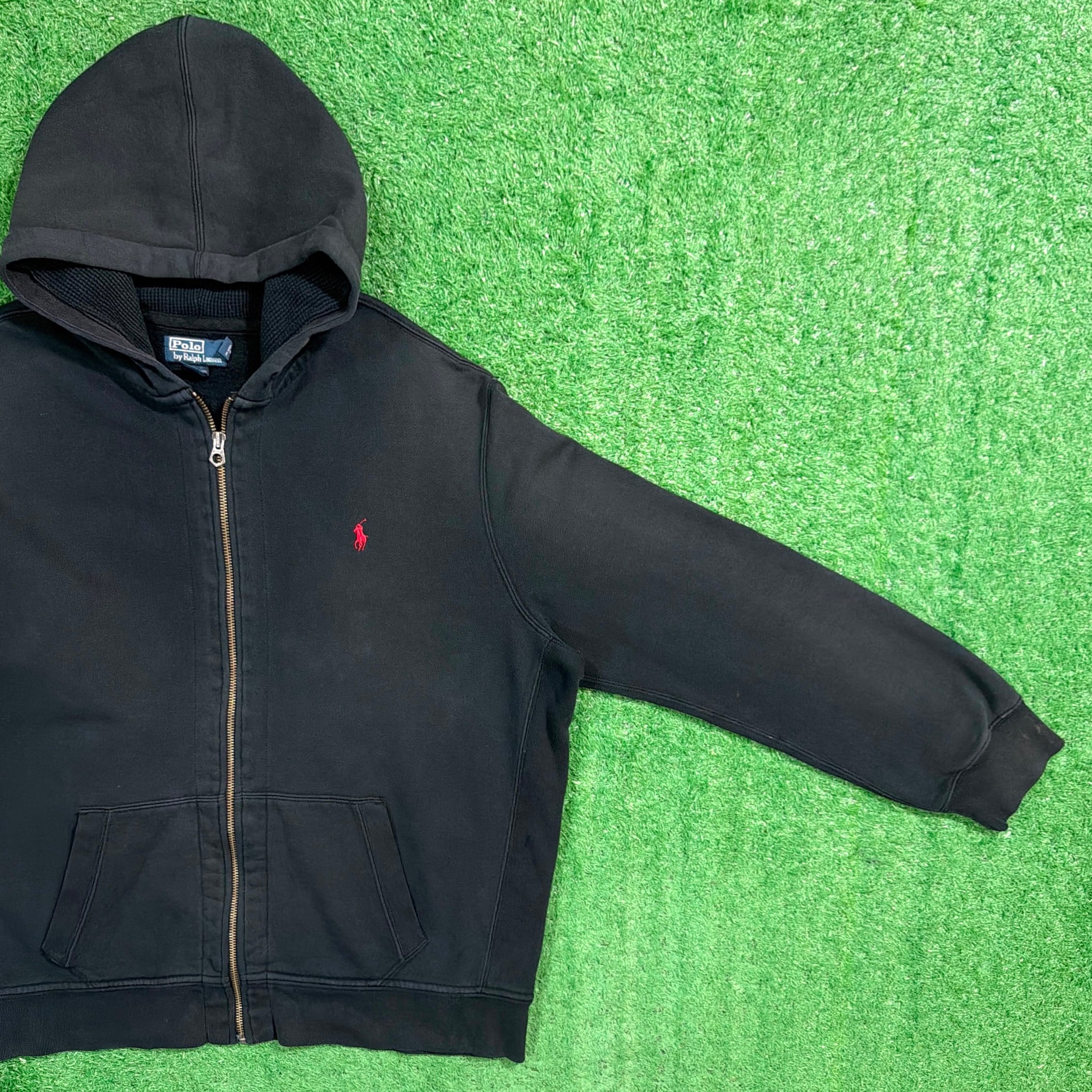 【Men's】 90s POLO Ralph Lauren ジップアップ パーカー / 90年代 フーディー ジップパーカー ポロ ラルフローレン メンズ 黒 ブラック 1130