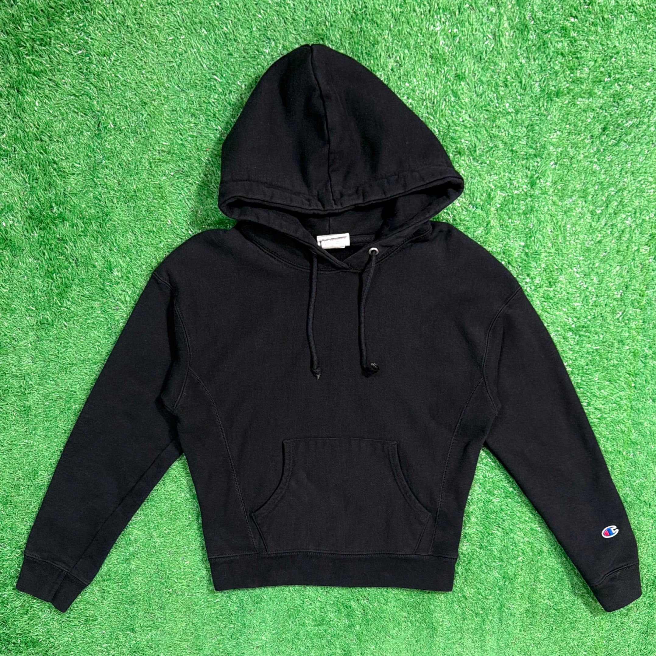 肉厚でしっかりとしたスウェット生地が特徴で、袖口にはお馴染みのCロゴ刺繍入り。無地のブラックで合わせやすく、シンプルながら存在感のあるアイテムです。Sサイズでコンパクトなシルエット。レディースにもおすすめのサイズ感です。