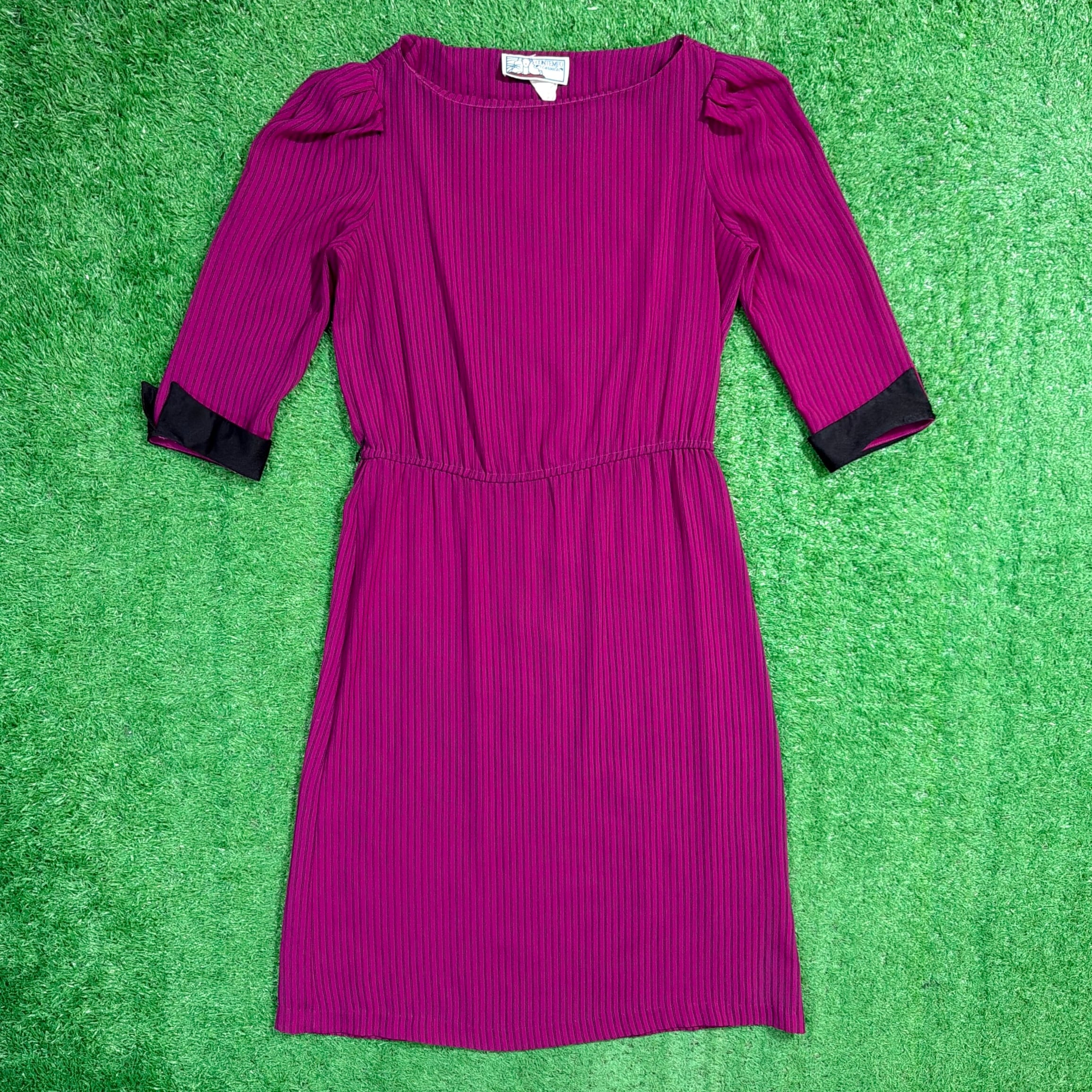 【Lady's】 70s レトロ デザイン 8分袖 ストライプ ワンピース / 70年代 ワンピ 古着 レディース 1137