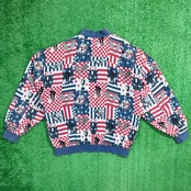 【Men's】 90s アメリカンフラッグ & テニス イラスト シルク ブルゾン ジャケット / 90年代 古着 総柄 メンズ 1138