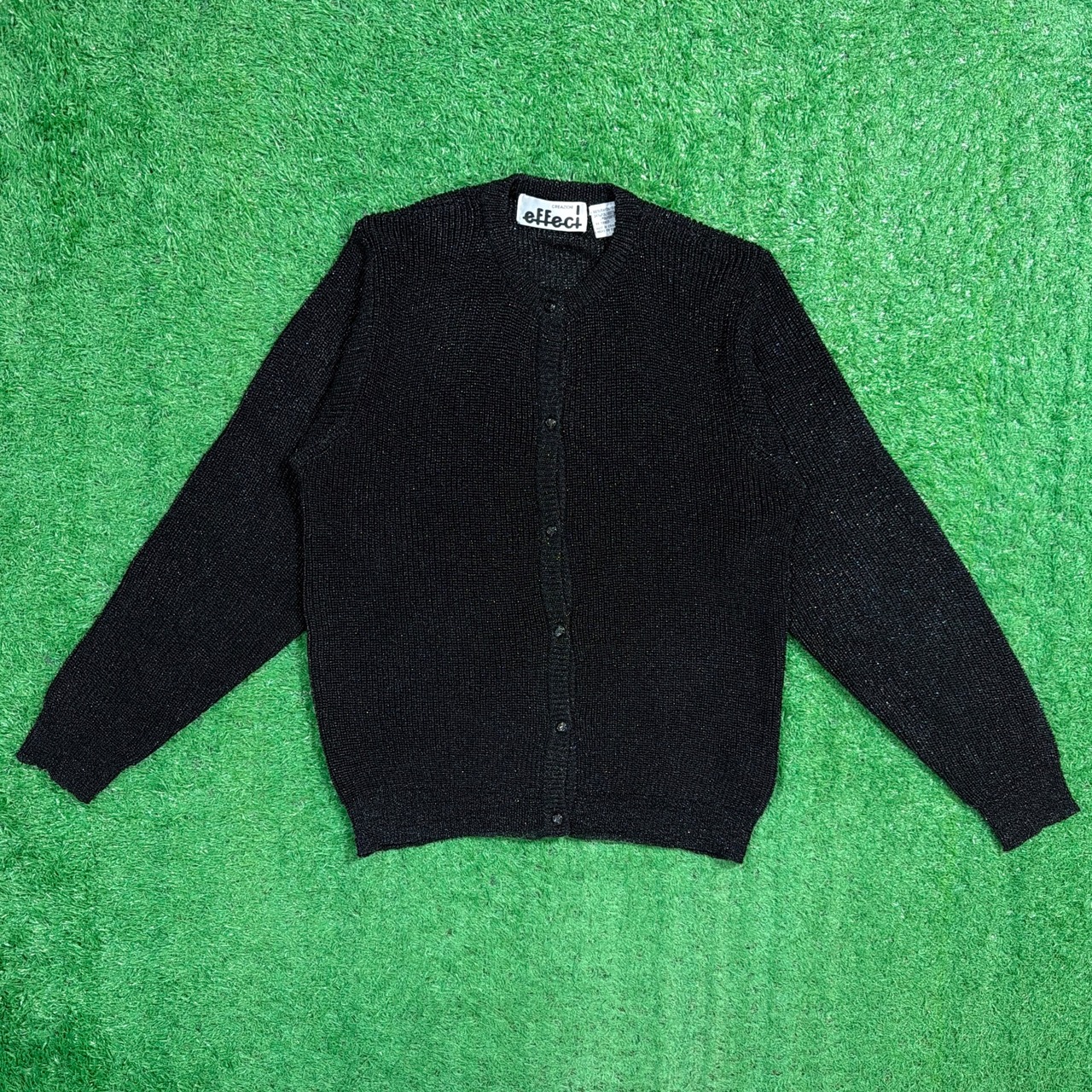 【Lady's】 90s ラメ入り ノーカラー ニット カーディガン / 90年代 古着 カーデガン 古着 黒 ブラック レディース 1149