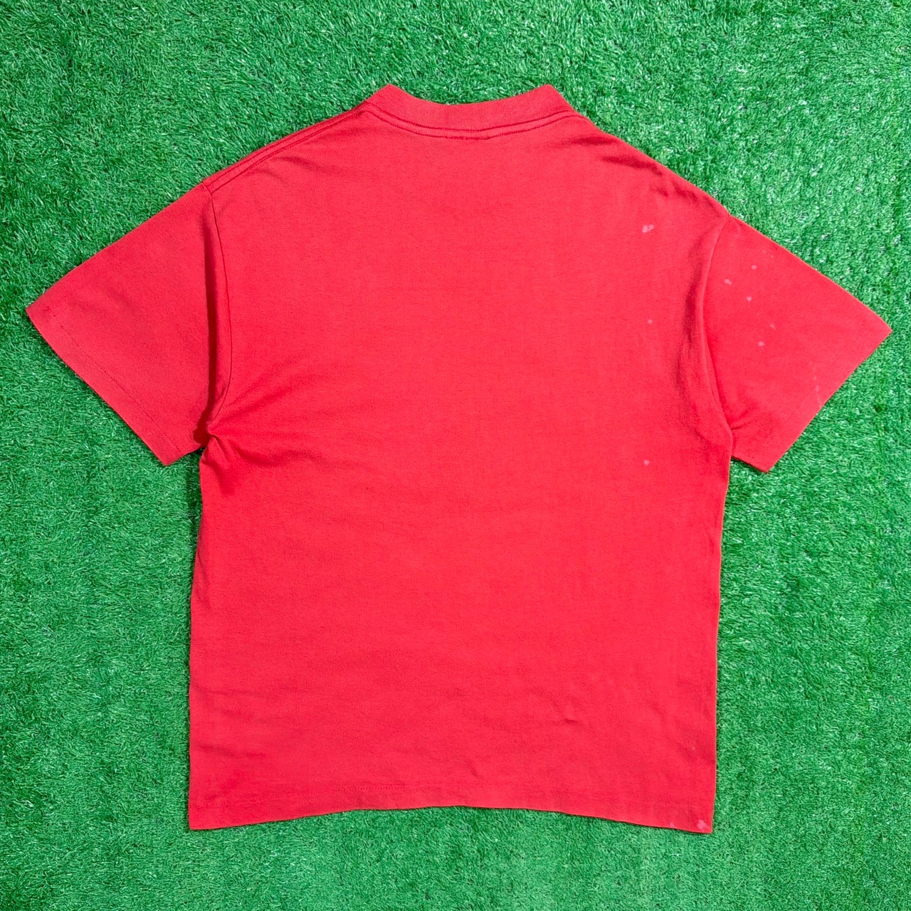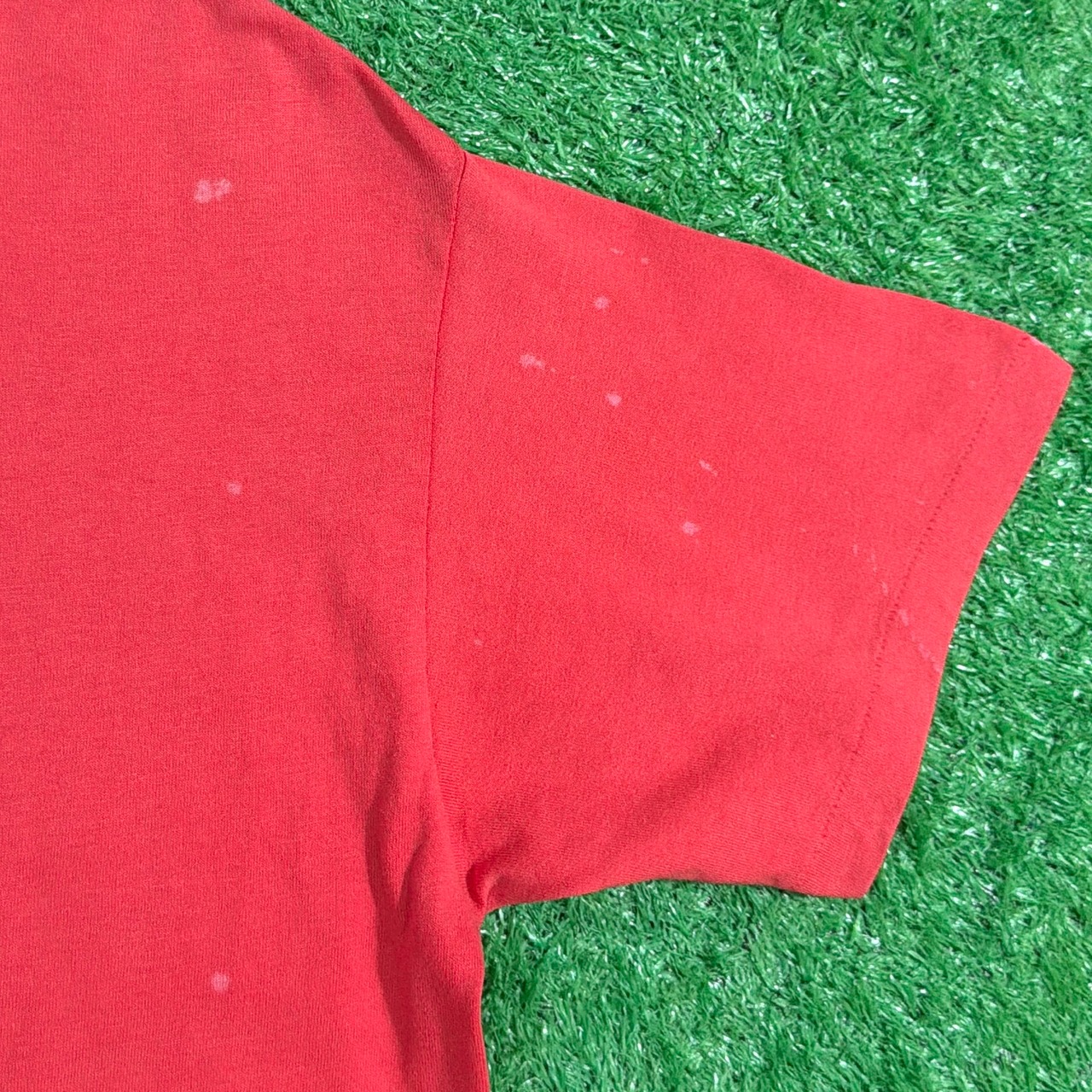 古着らしい自然な色落ちがあり、経年による風合いも楽しめます。鮮やかなレッドカラーがスタイリングのアクセントになるアイテムです。