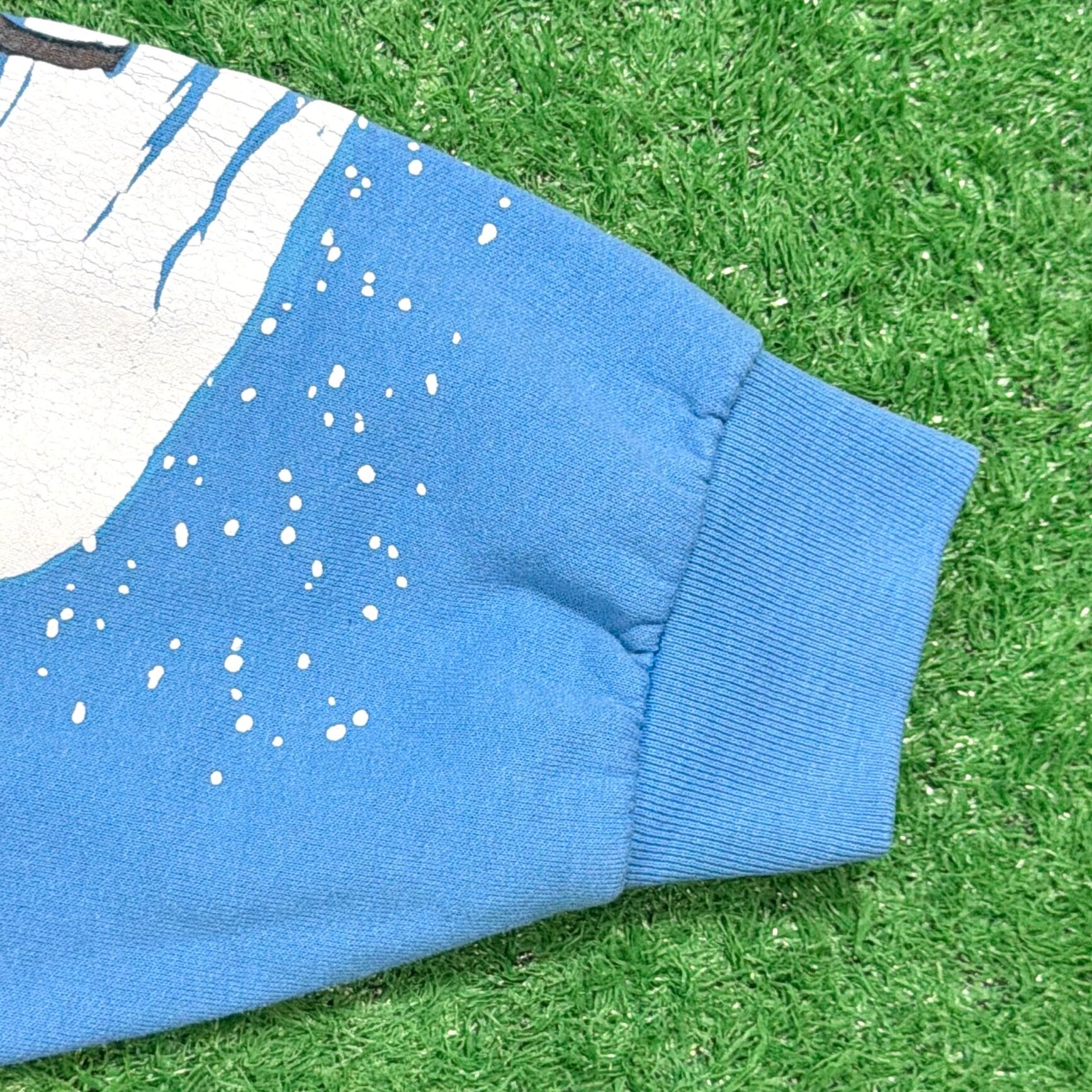 【Men's】 90s アニマル イラスト 襟付 スウェットシャツ / アメリカ製 USA製 90年代 古着 スウェット スエット トレーナー 古着 青 ブルー 1156