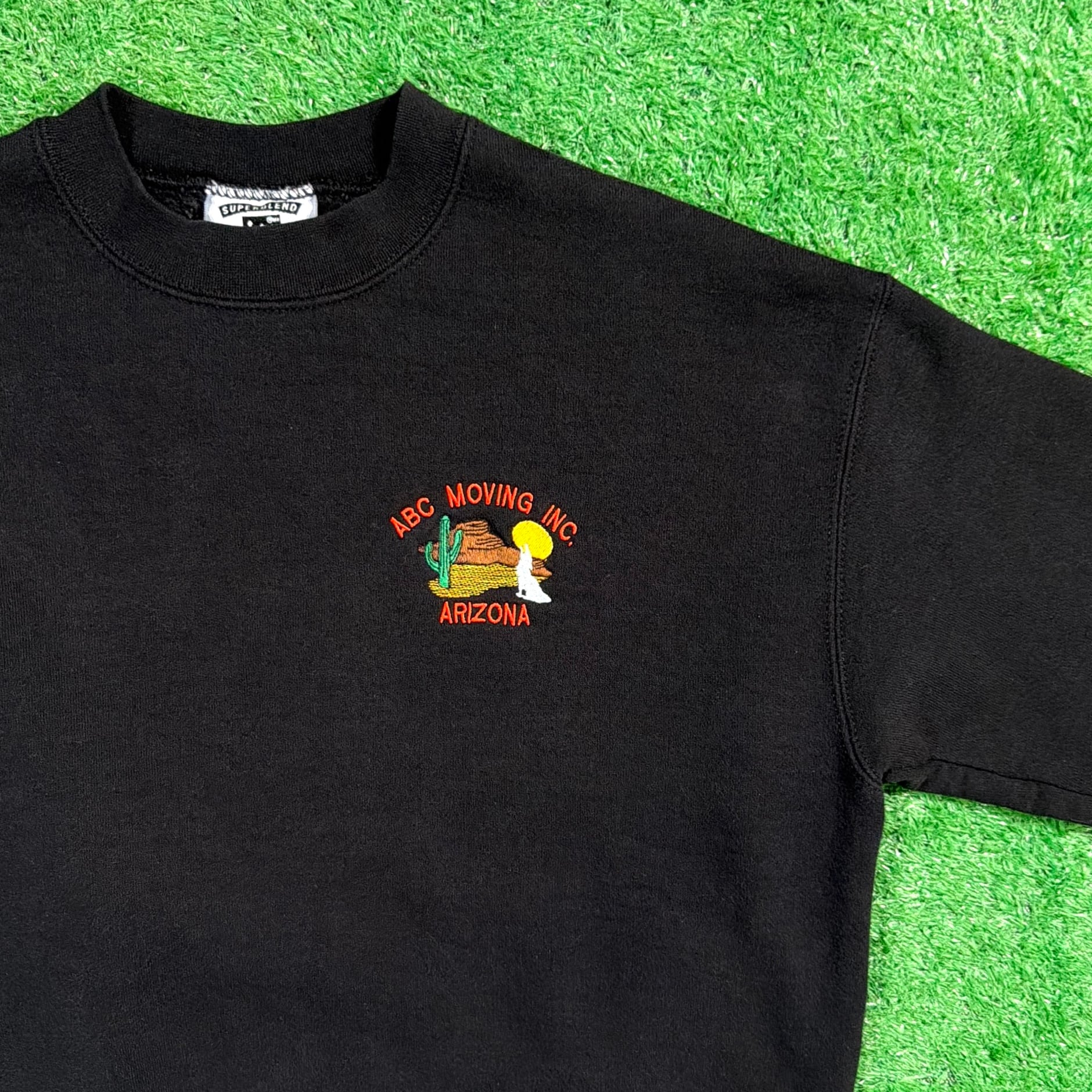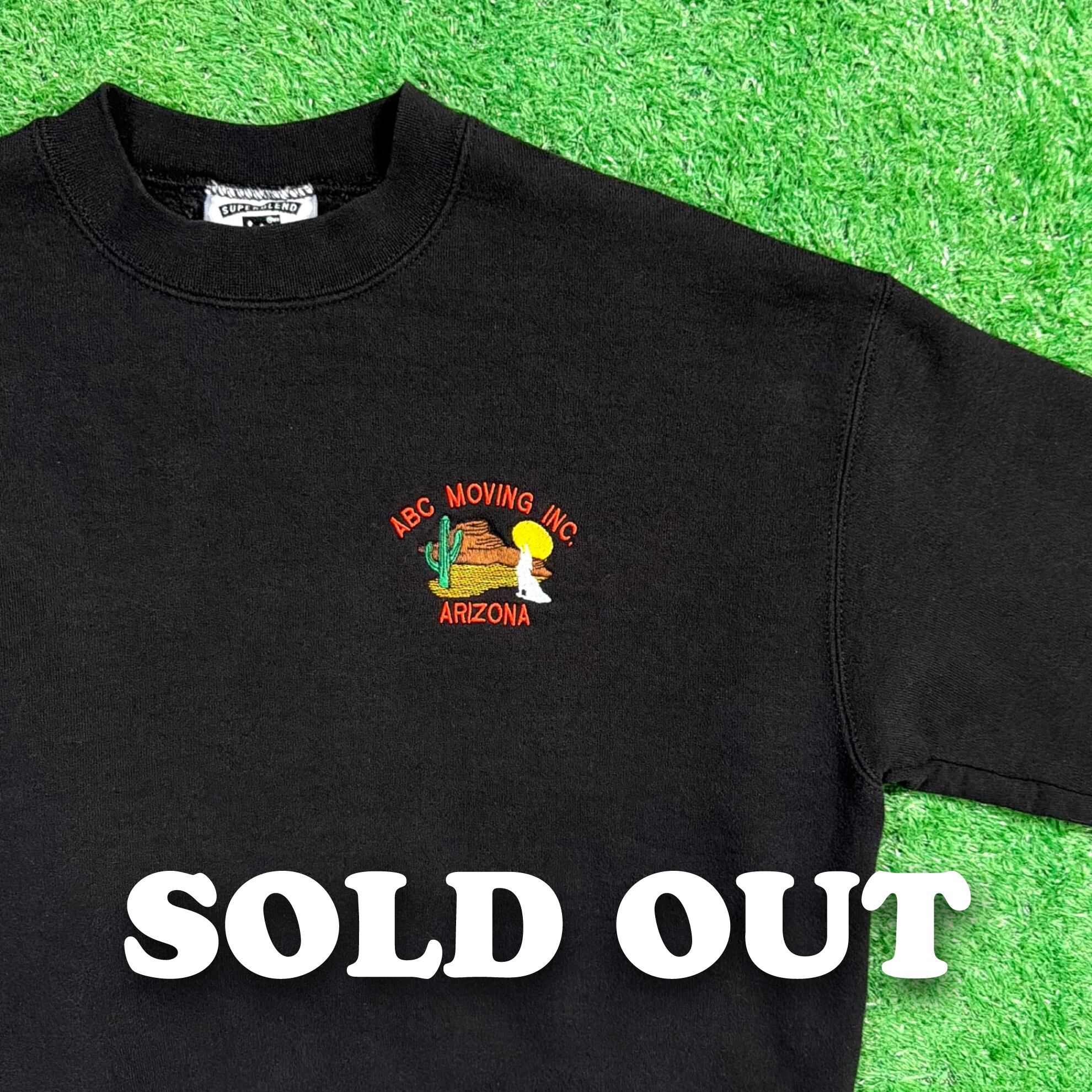 フロントには「ABC MOVING INC. ARIZONA」と、アリゾナらしいサボテン・コヨーテ・レッドロック(赤土の岩山)が鮮やかに刺繍されたワンポイントデザイン。
