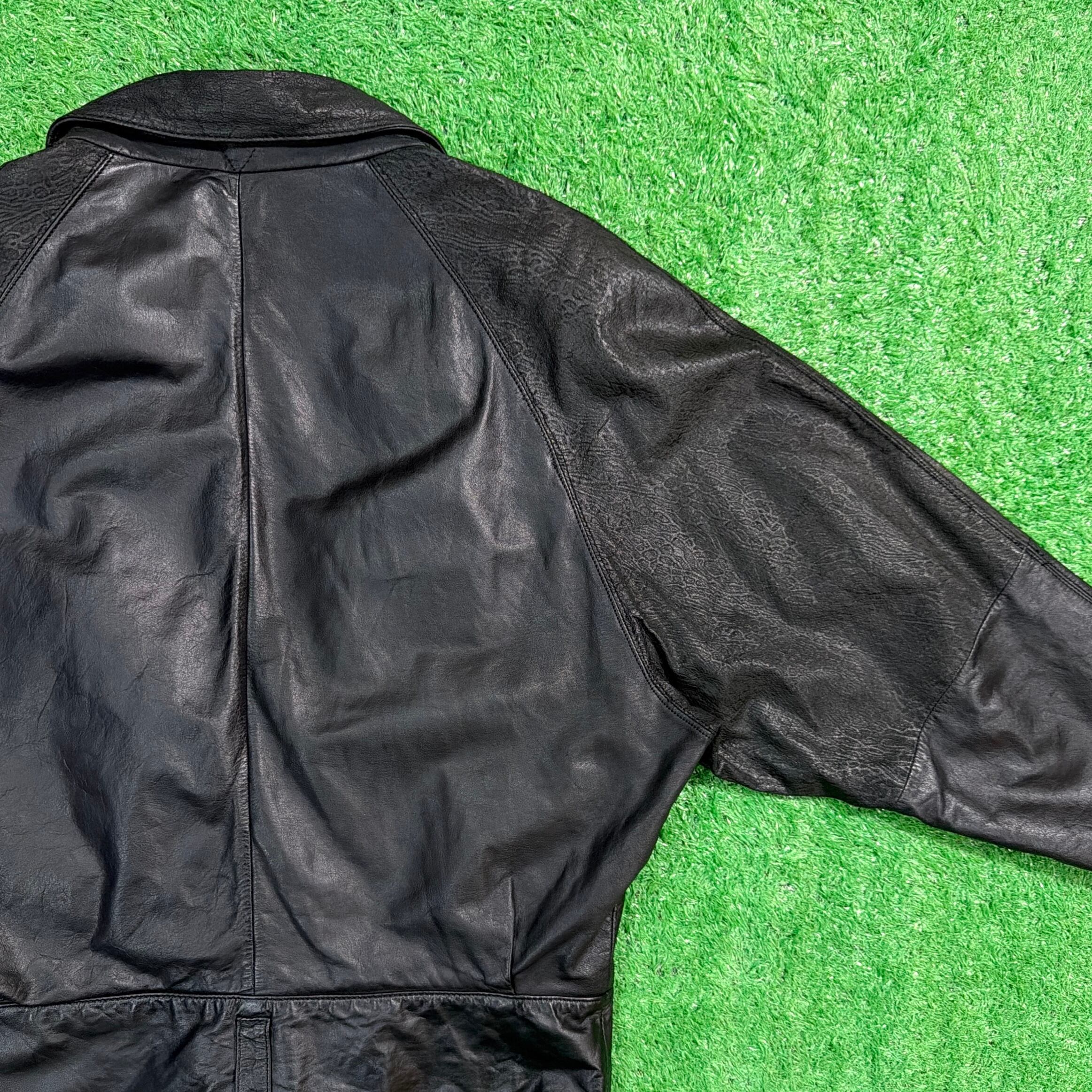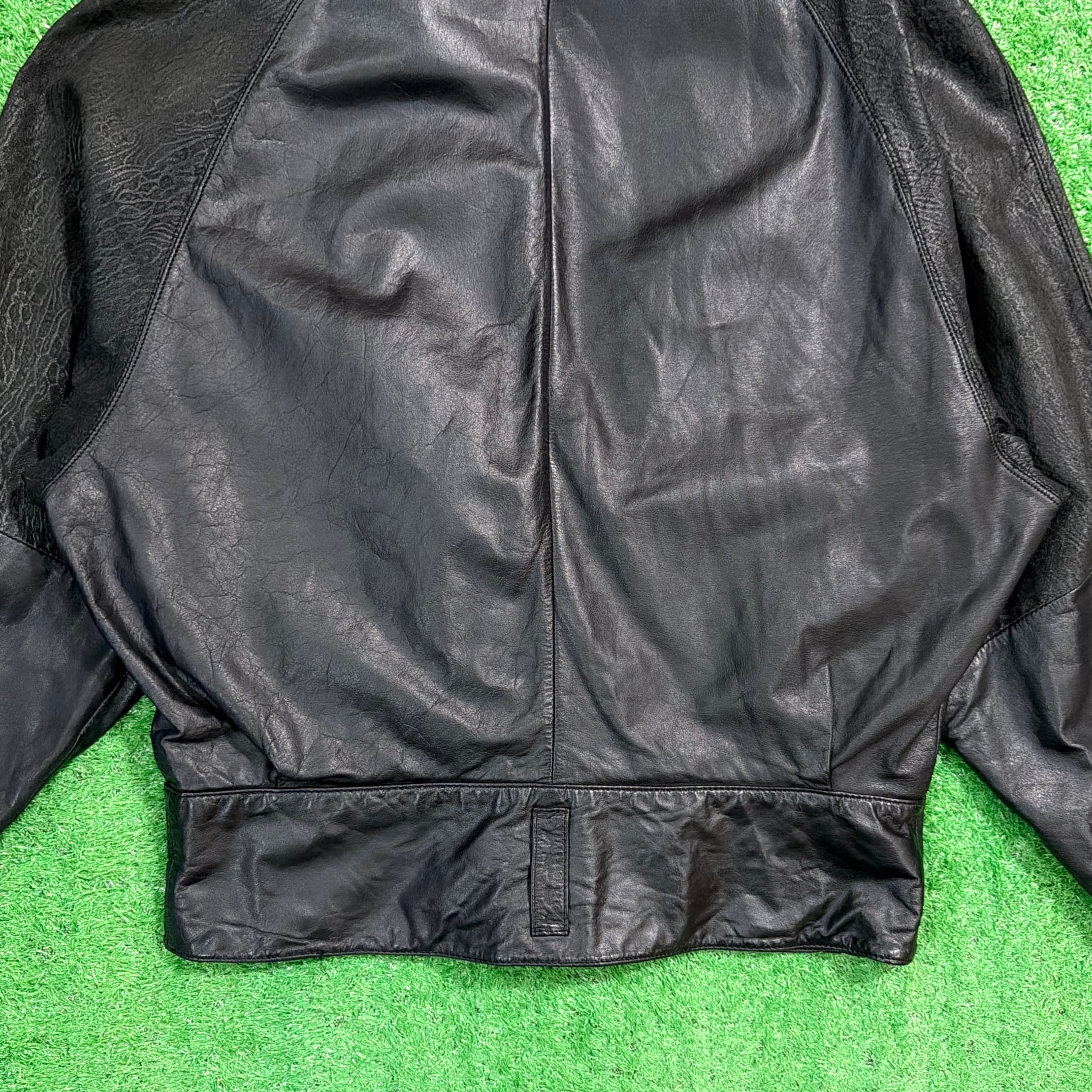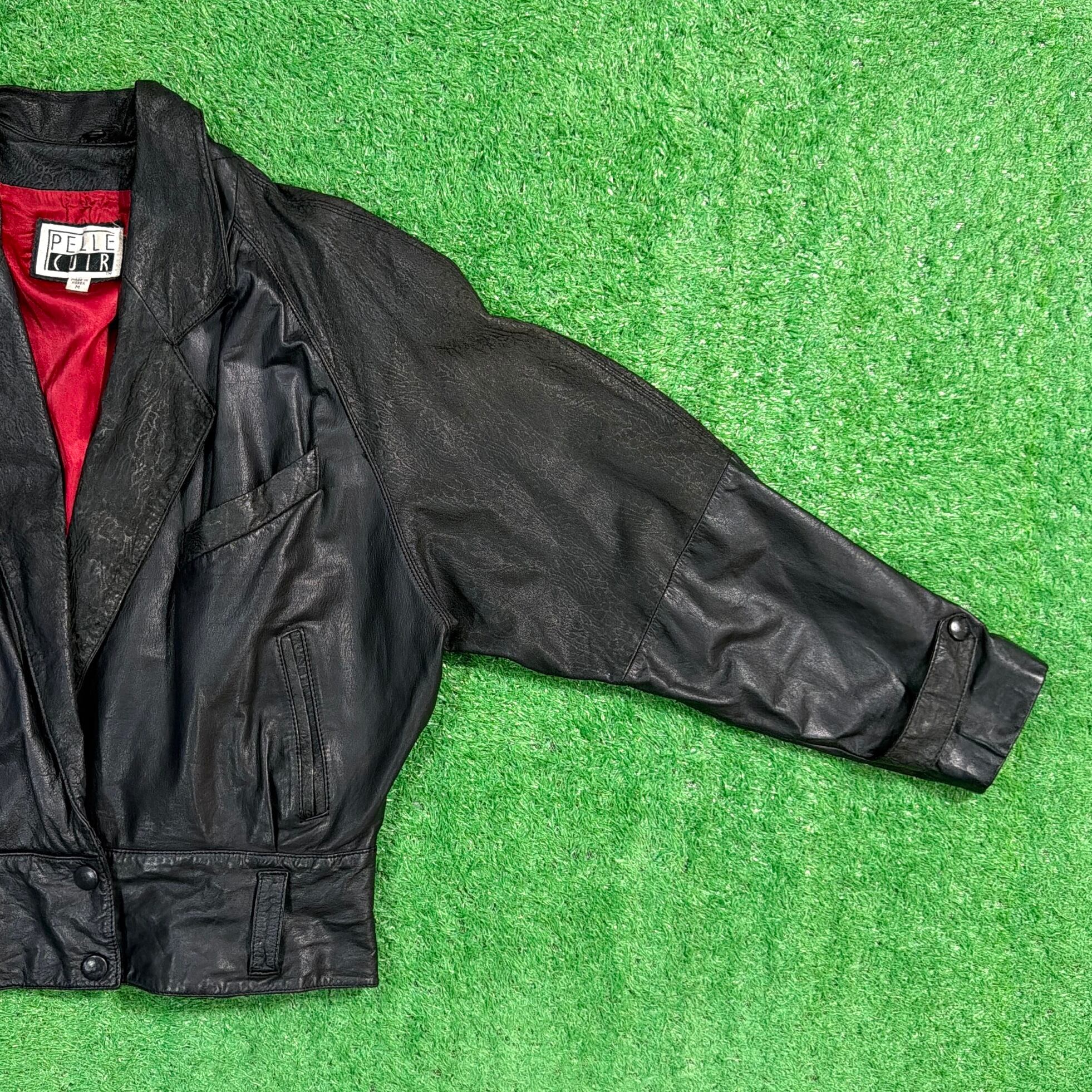 【Lady's】 90s シングル ライダース風 レザー ジャケット / 90年代 革ジャン 古着 革 黒 ブラック レディース 短丈 Made In KOREA 1160