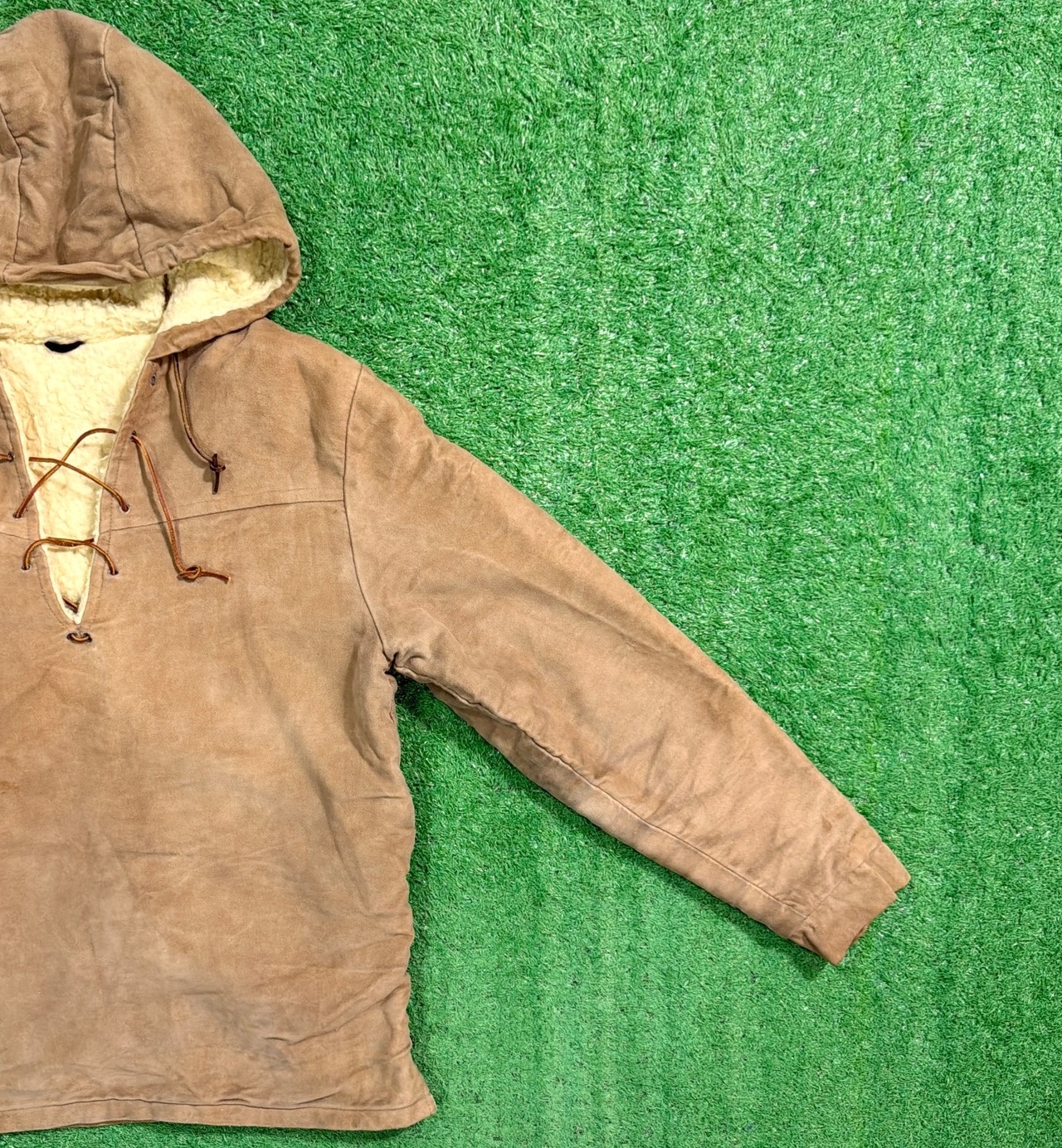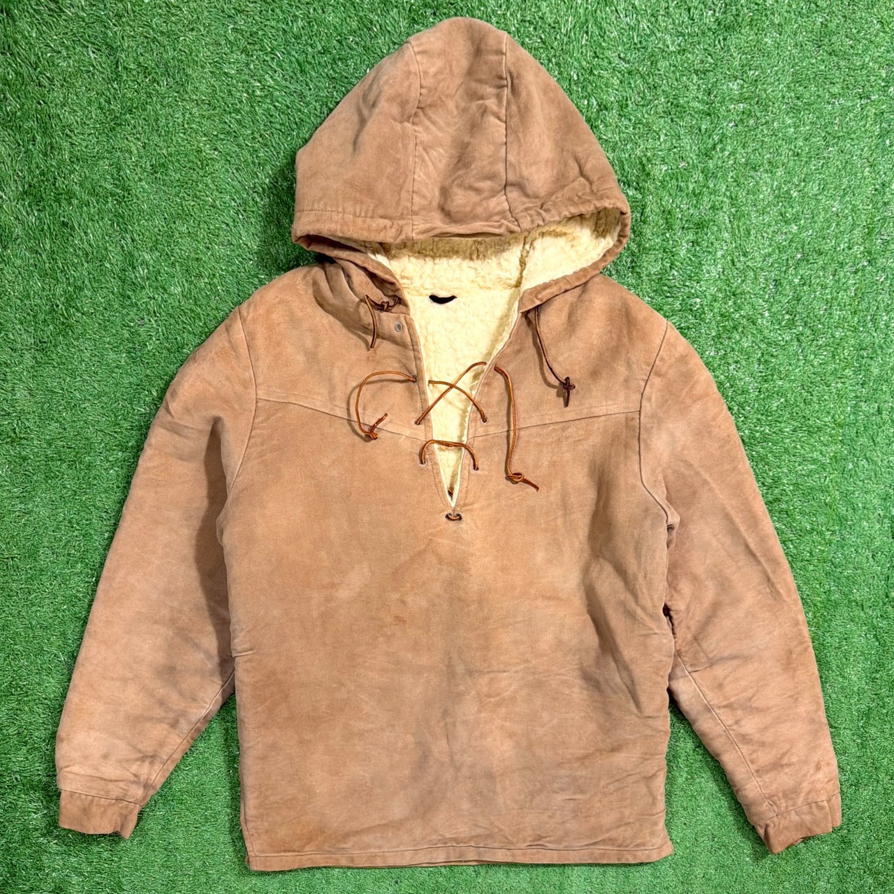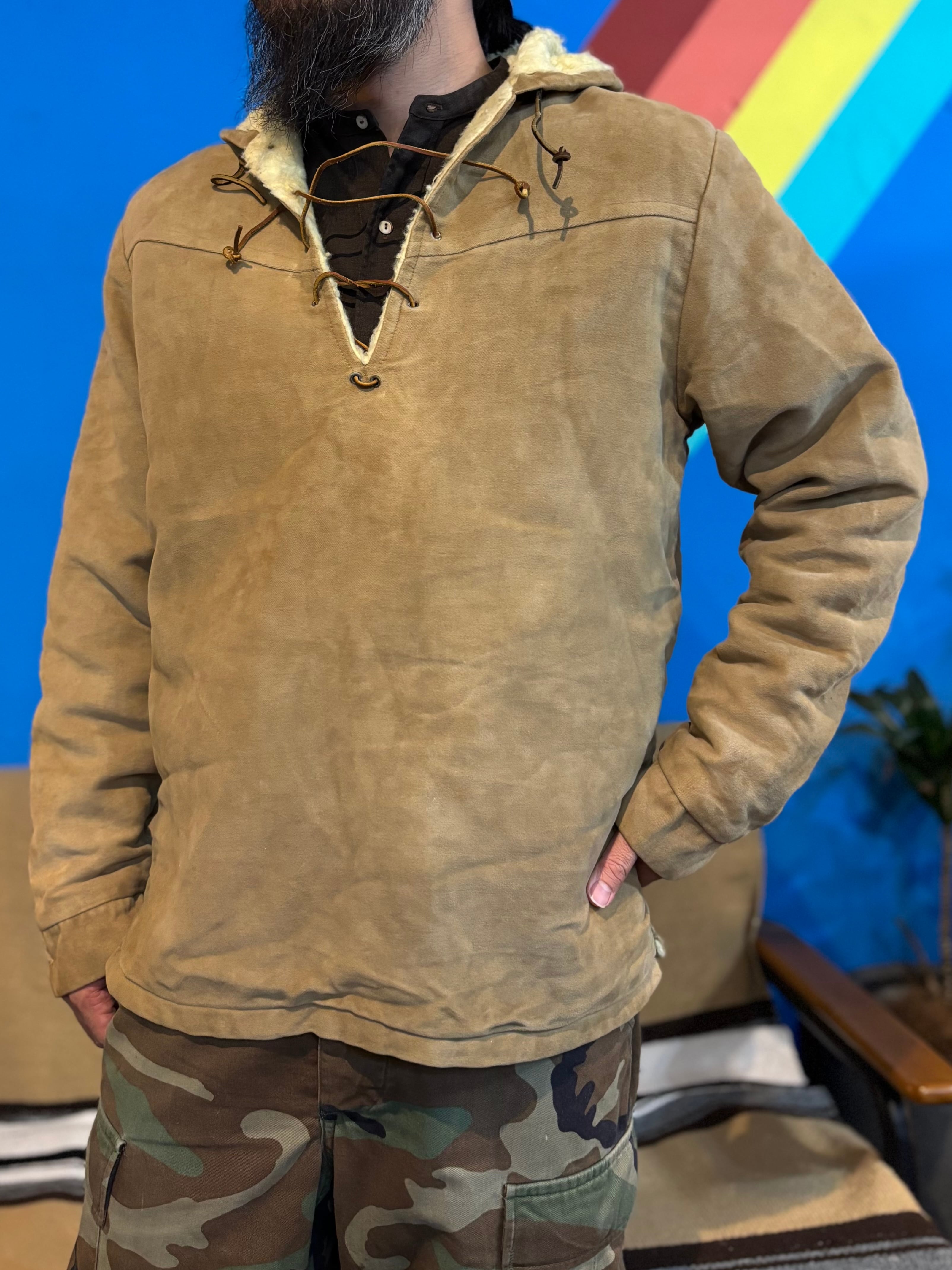 【Men's】 70s - スエード調 裏ボア プルオーバー ジャケット / 70年代 古着 スウェード アウター レースアップ ウエスタン メンズ 1163