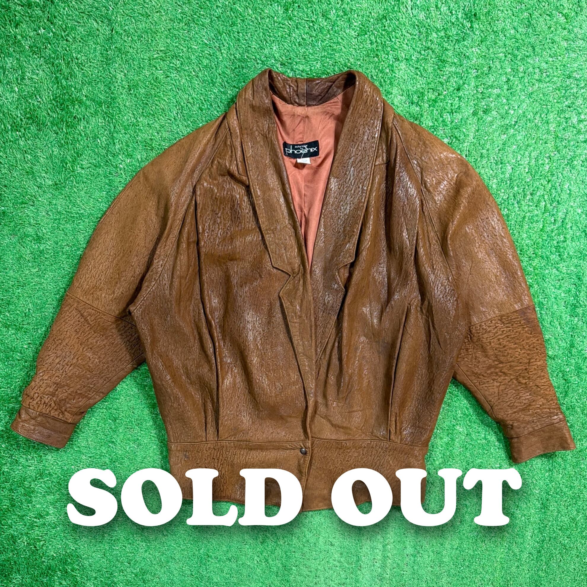 しなやかなブラウンレザーは着込むほどに味が出て、ヴィンテージらしい風合いをしっかり楽しめる一着。フロントはスナップボタン仕様で、ジャケットとしてもブルゾンのようにも着られるデザイン。裾まわりが少し絞られたシルエットで、90sらしい丸みのあるフォルムが特徴的です。レディースアイテムですが、身幅・肩まわりともにゆったりめのつくりで、メンズの方にもおすすめのサイズ感です。