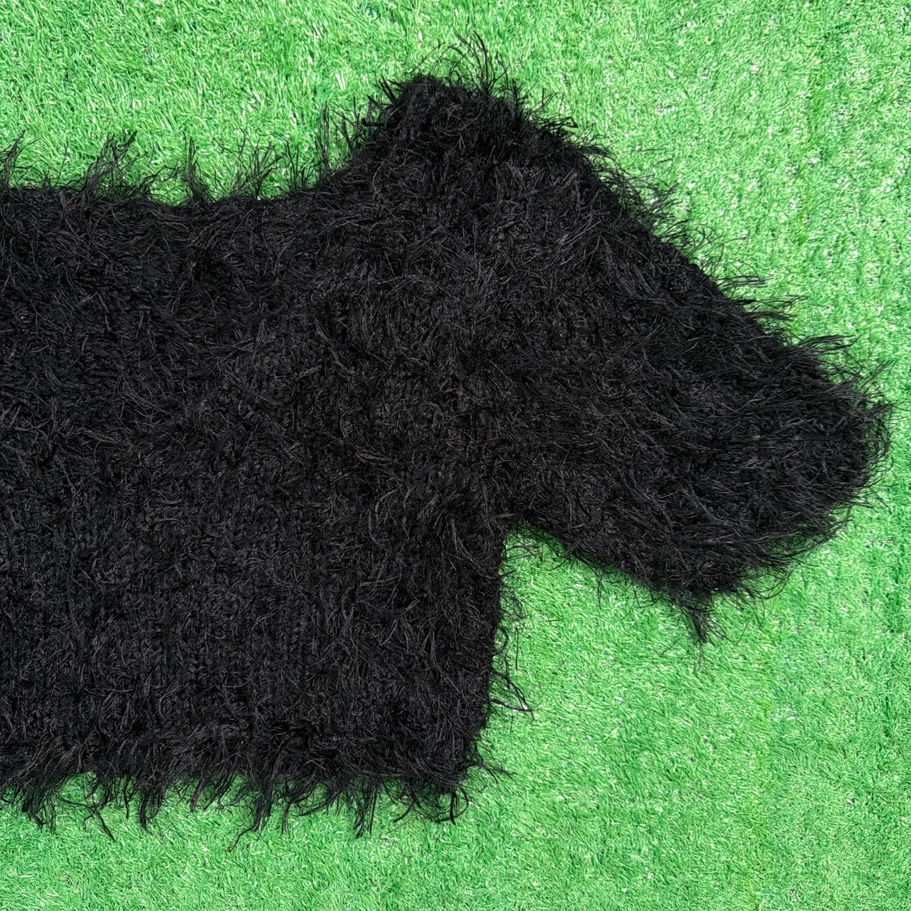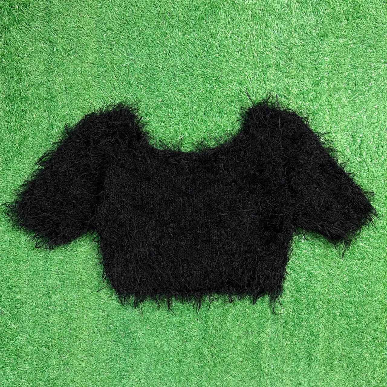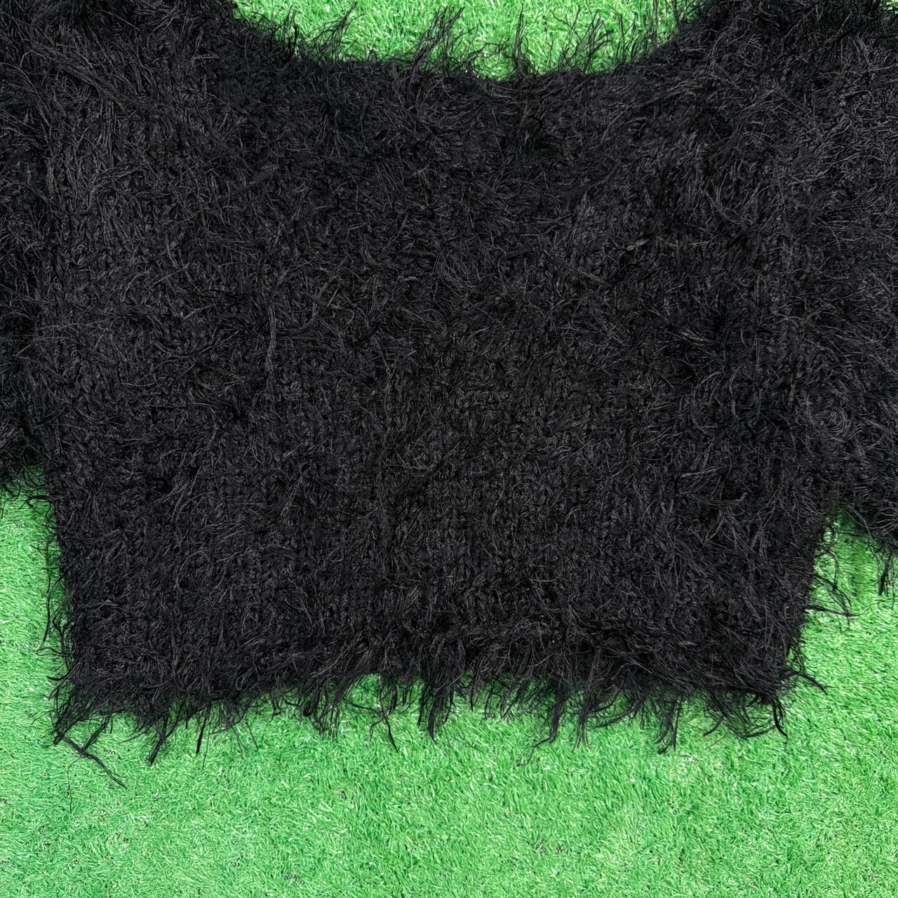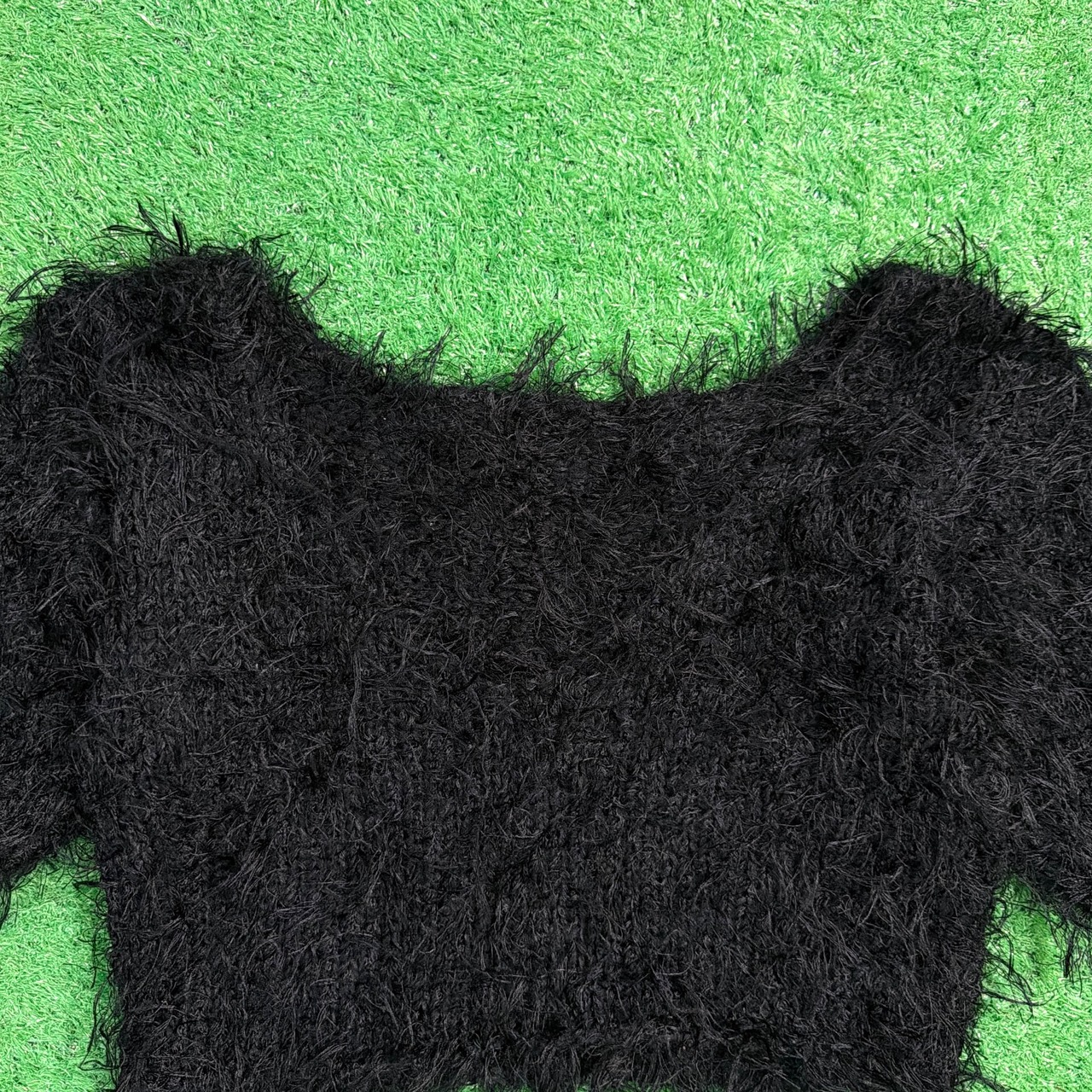 【Lady's】 90s シャギーニット トップス / 90年代 古着 半袖 レディース 黒 ブラック 短丈 1168