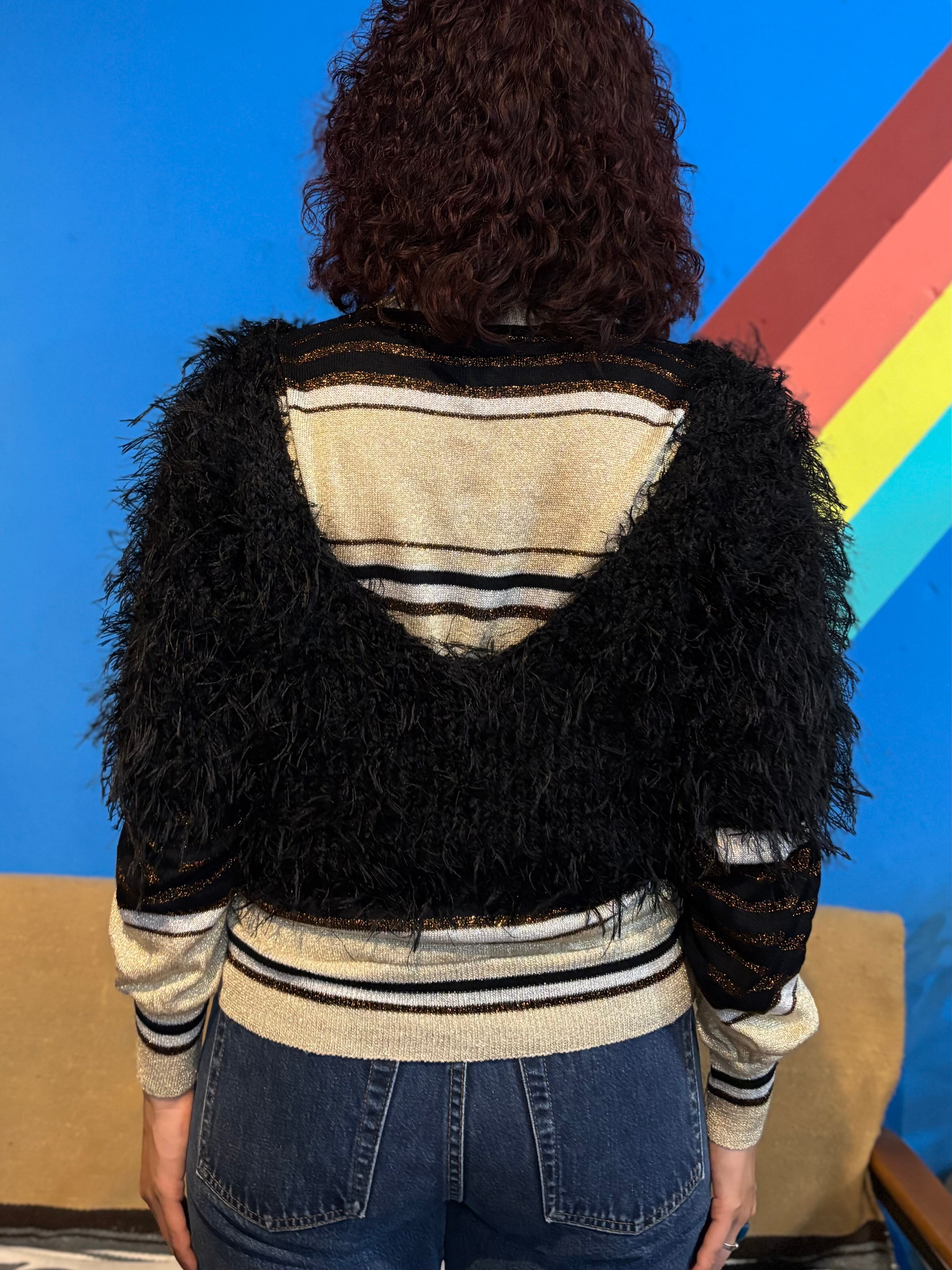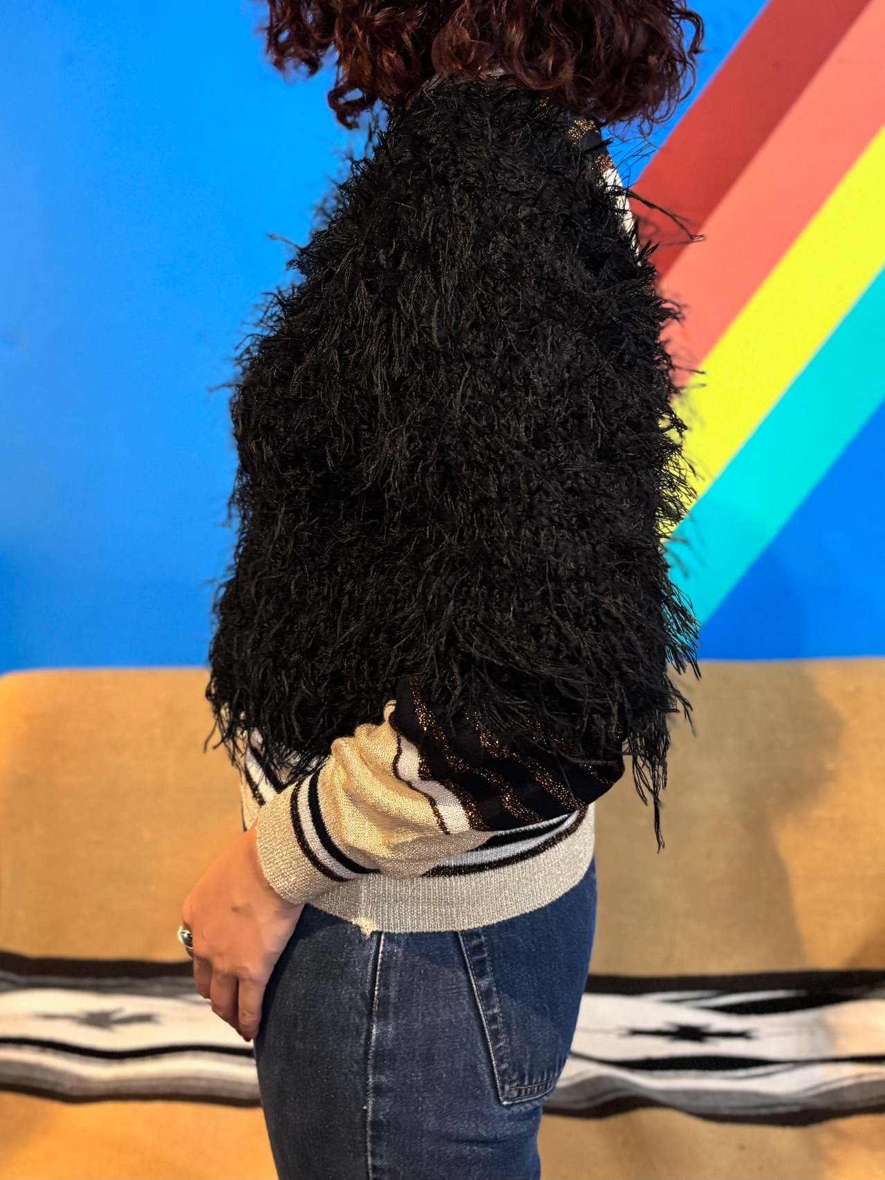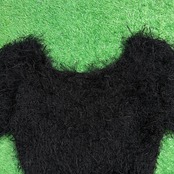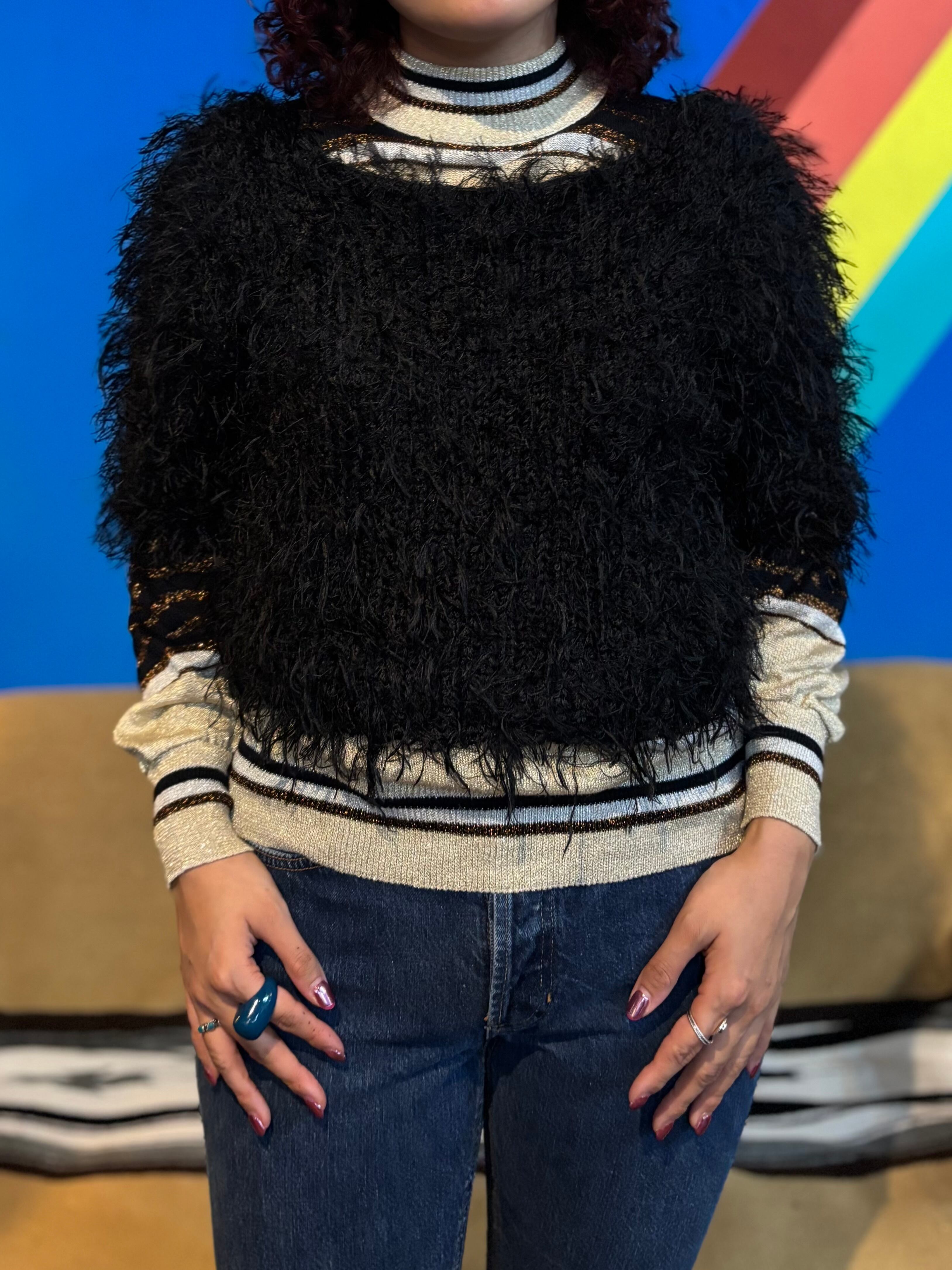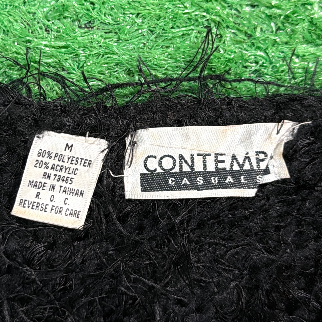 【Lady's】 90s シャギーニット トップス / 90年代 古着 半袖 レディース 黒 ブラック 短丈 1168