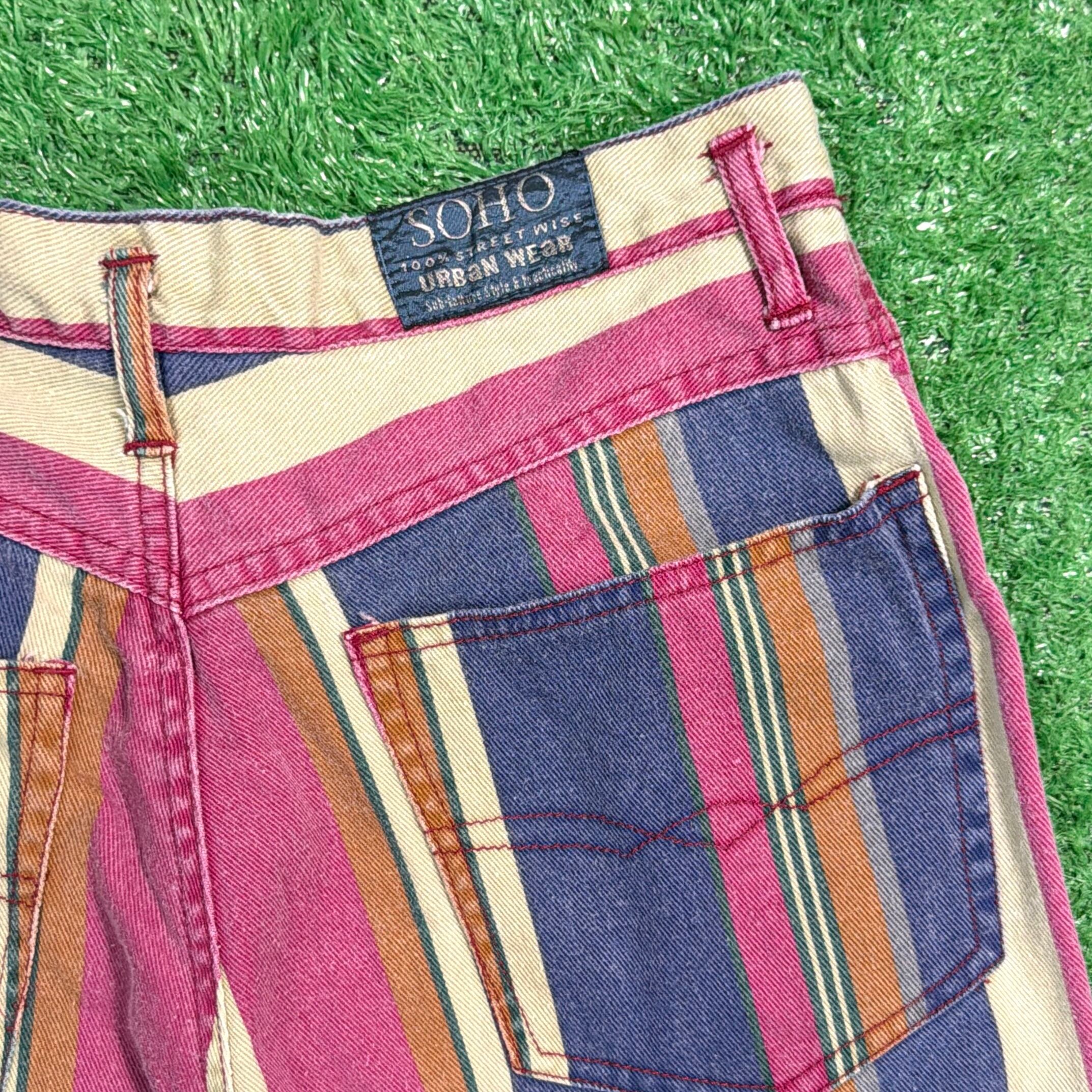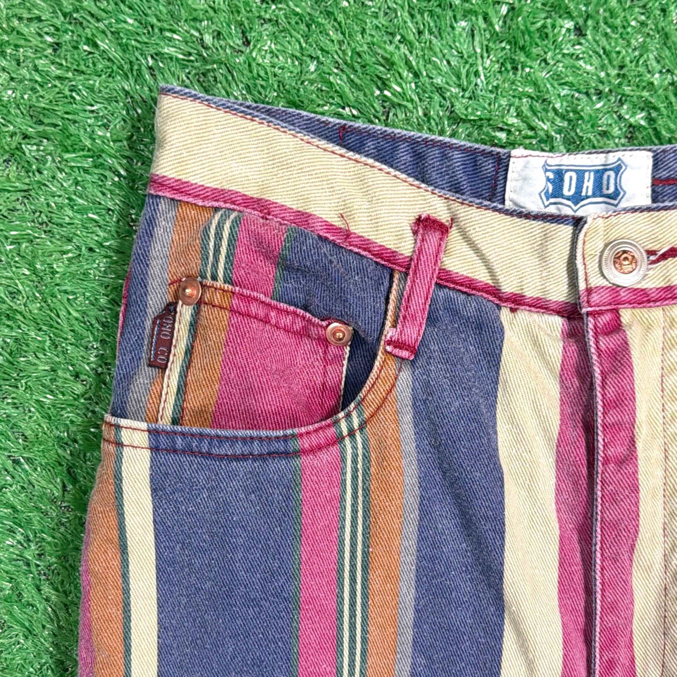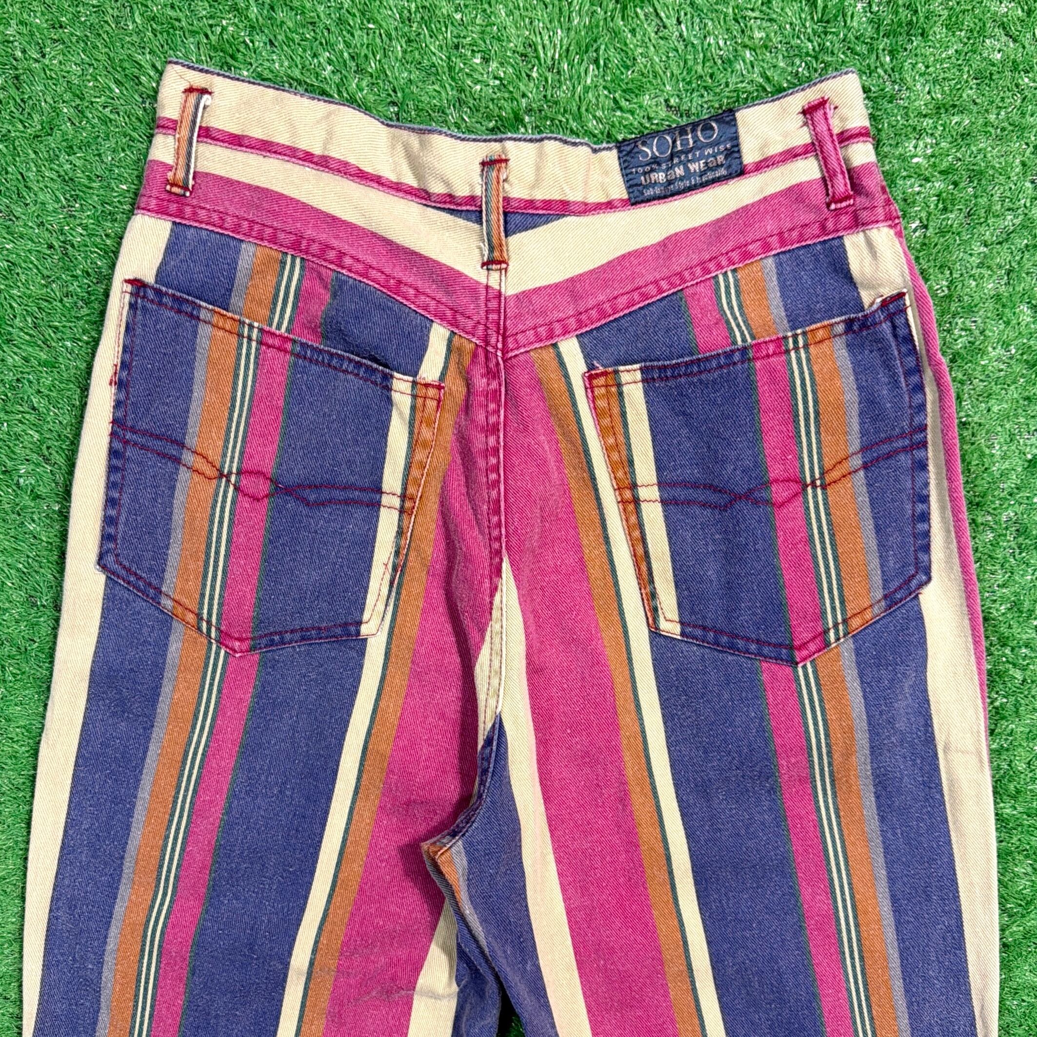 【Lady's】 80s ストライプ コットン パンツ / 80年代 古着 レディース 柄パン 1172