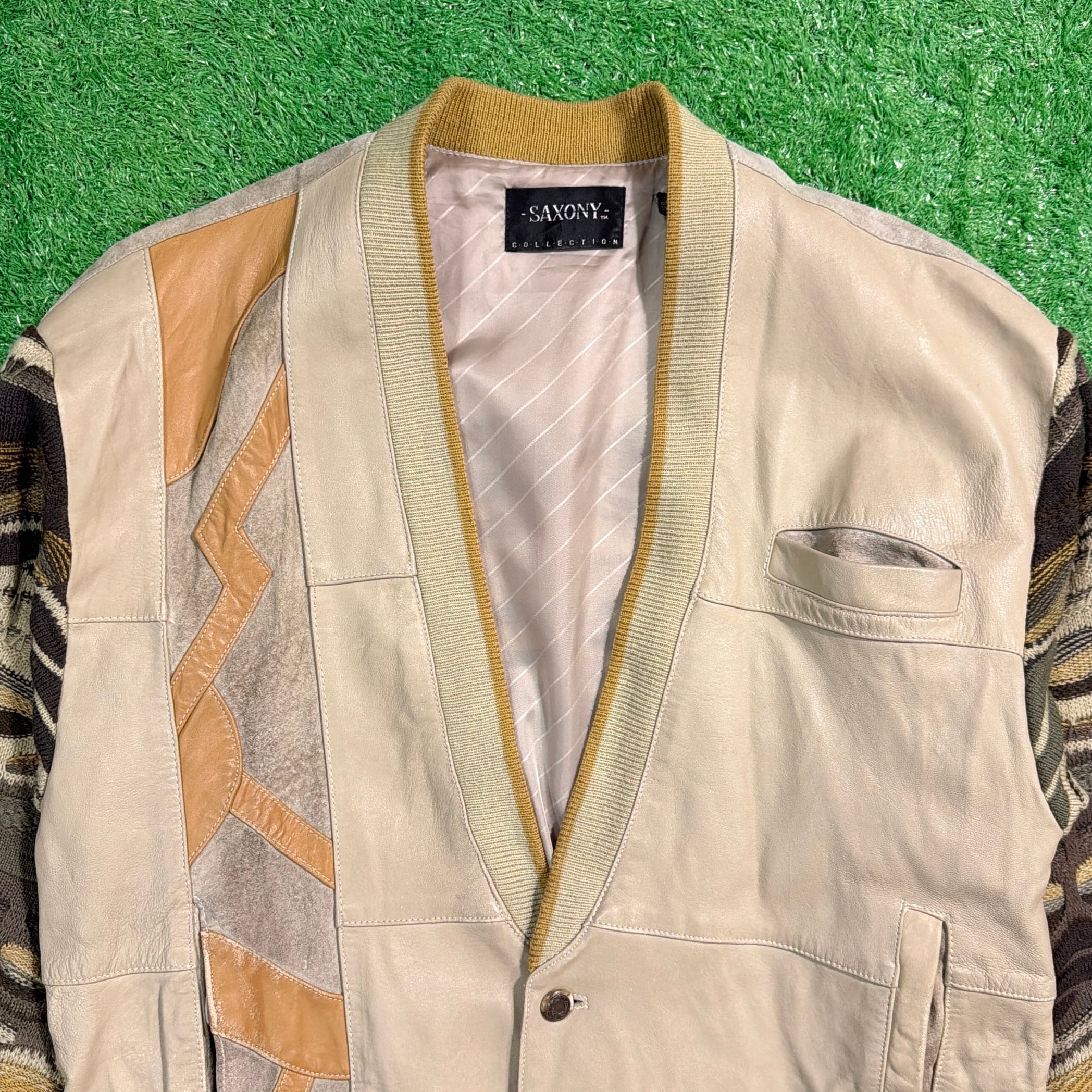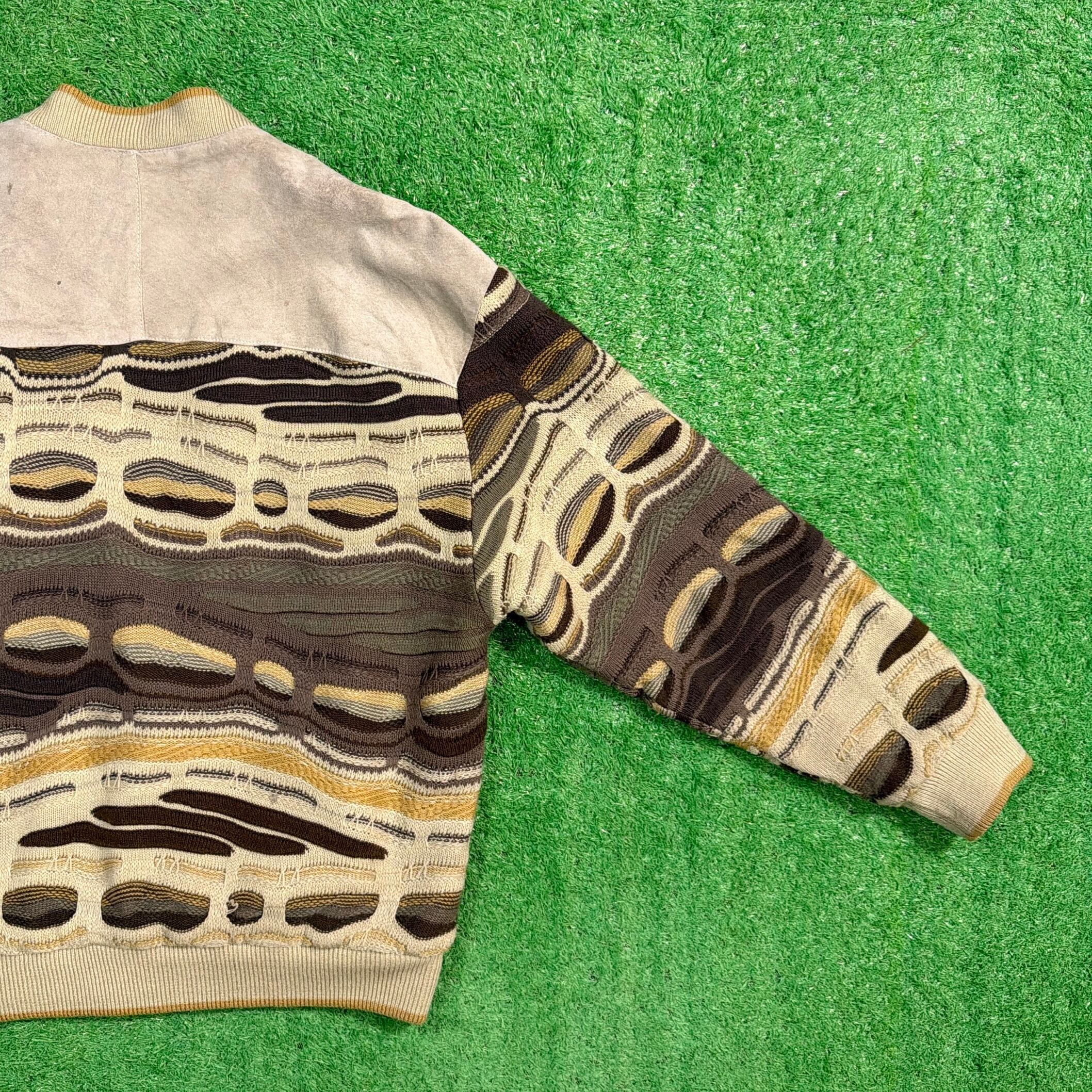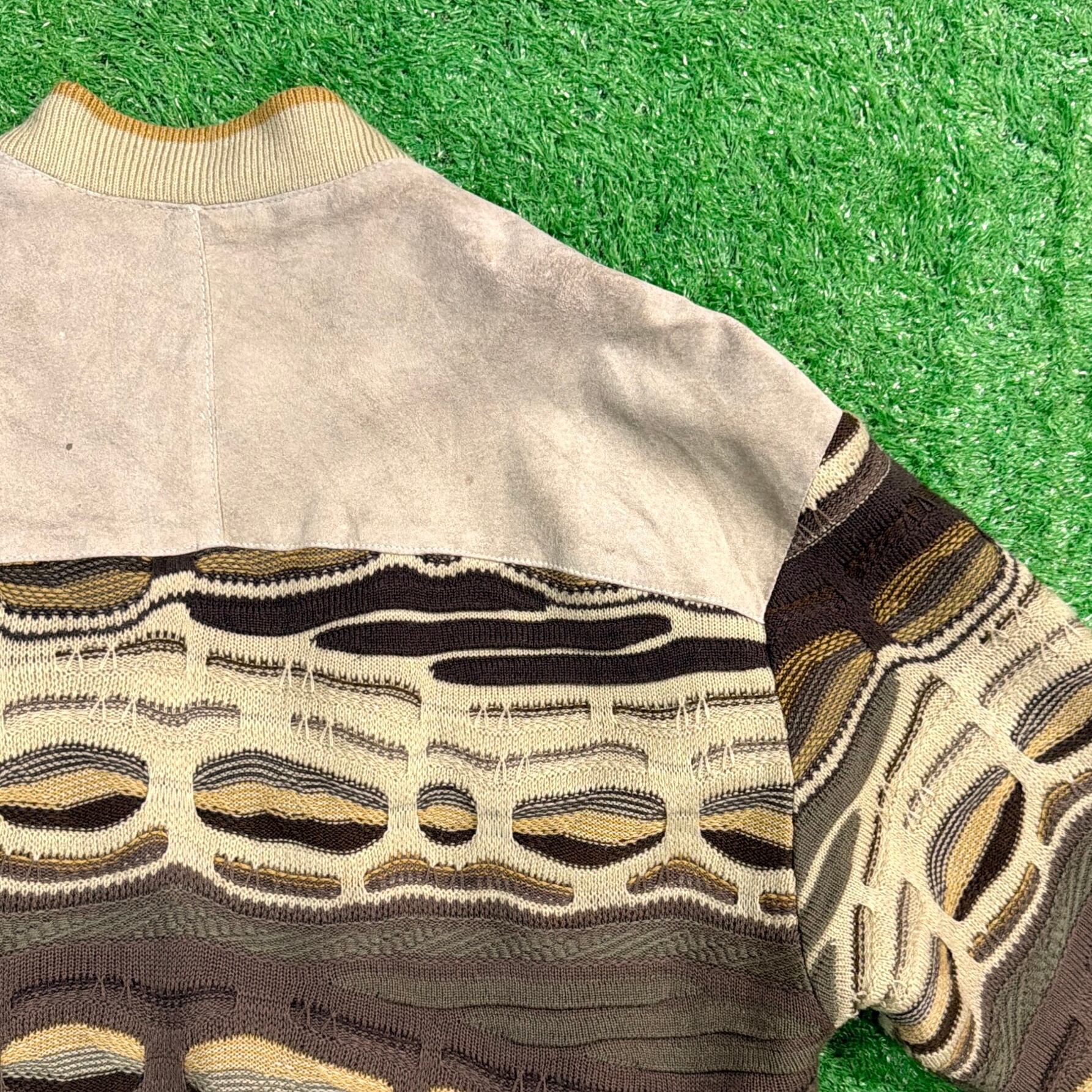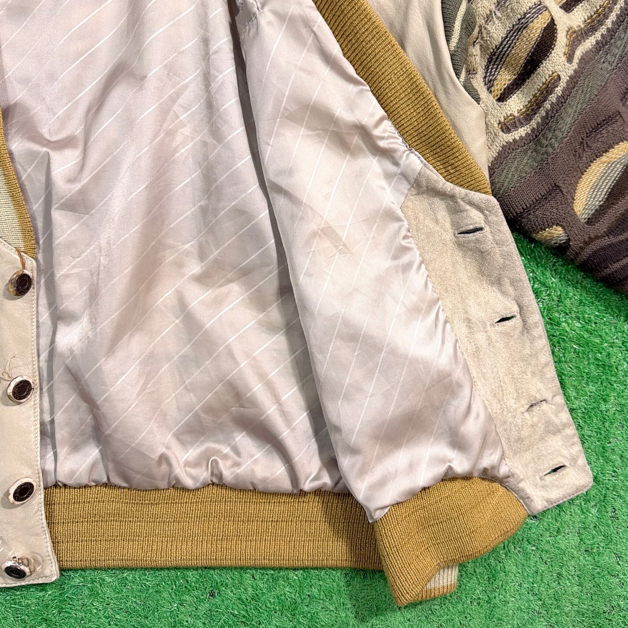 1990年代の3Dニット×レザー切り替えデザインのジャケットです。