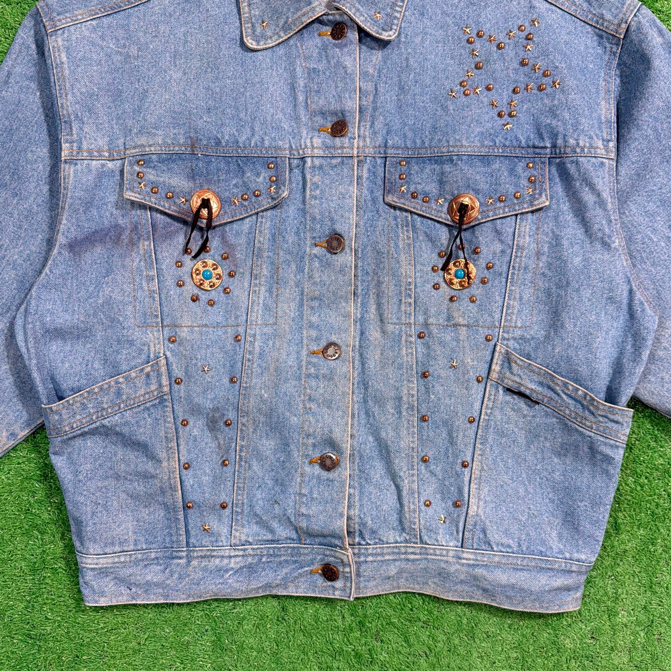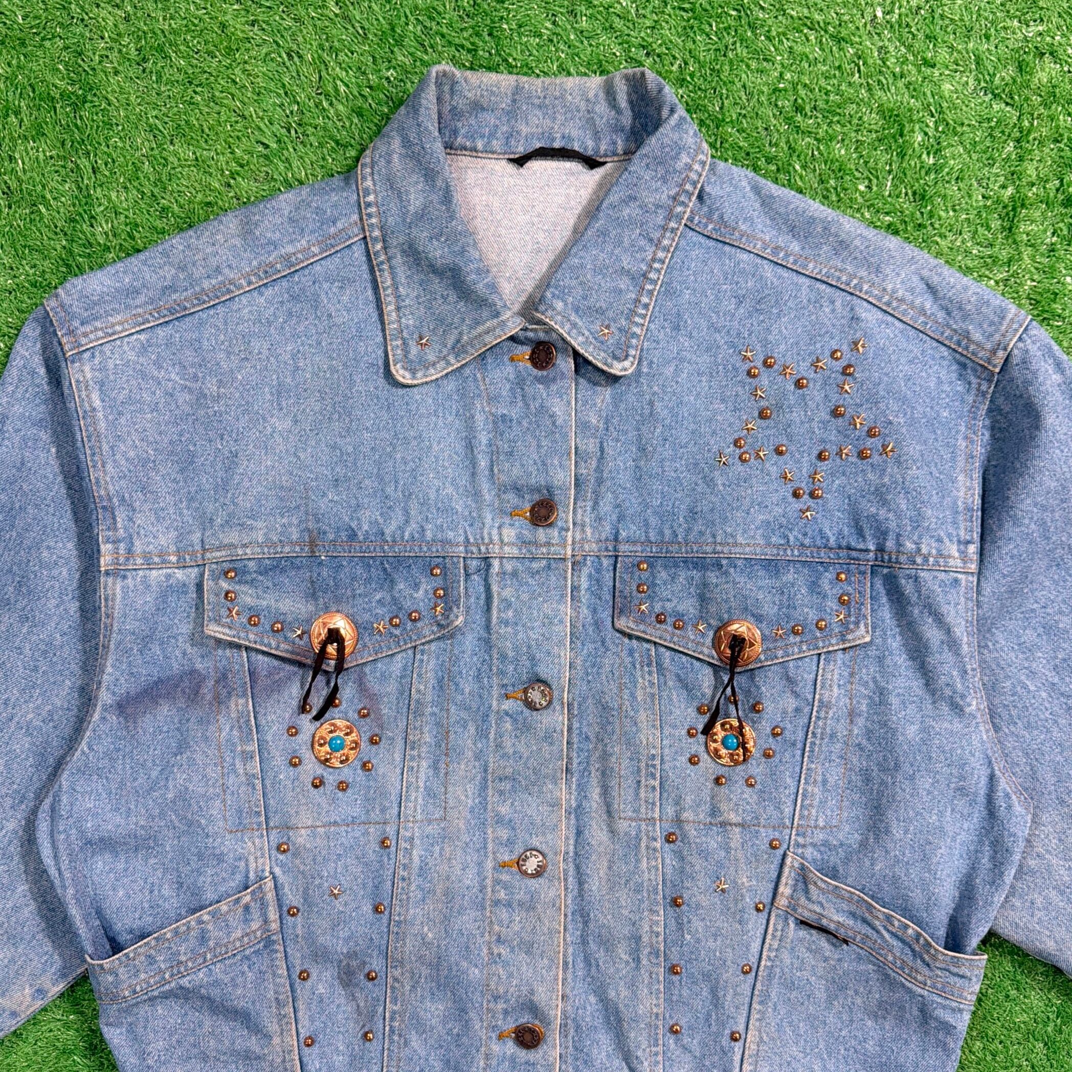 【Lady's】 80s - 90s コンチョ & スタッズ 付き デザイン デニムジャケット / 80年代 90年代 古着 ジージャン デニム ジャケット レディース ジージャン トラッカー 古着 1177