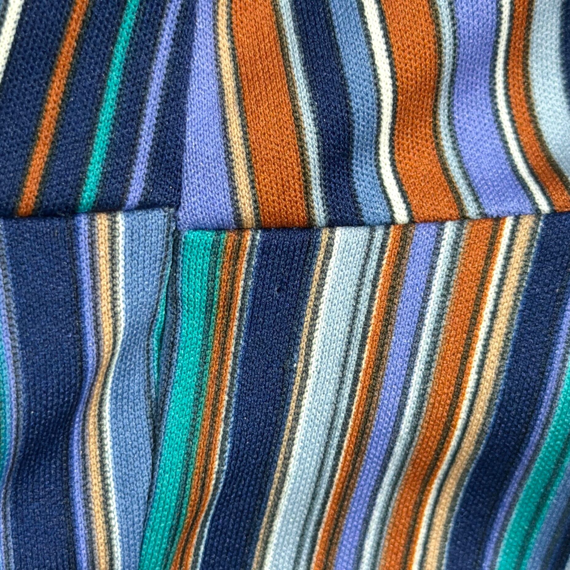 つるっとした表面感に、少し伸縮性のあるジャージのような素材感が特徴的。軽くて着心地も良く、独特の光沢感と色合いが70sらしい雰囲気を演出しています。