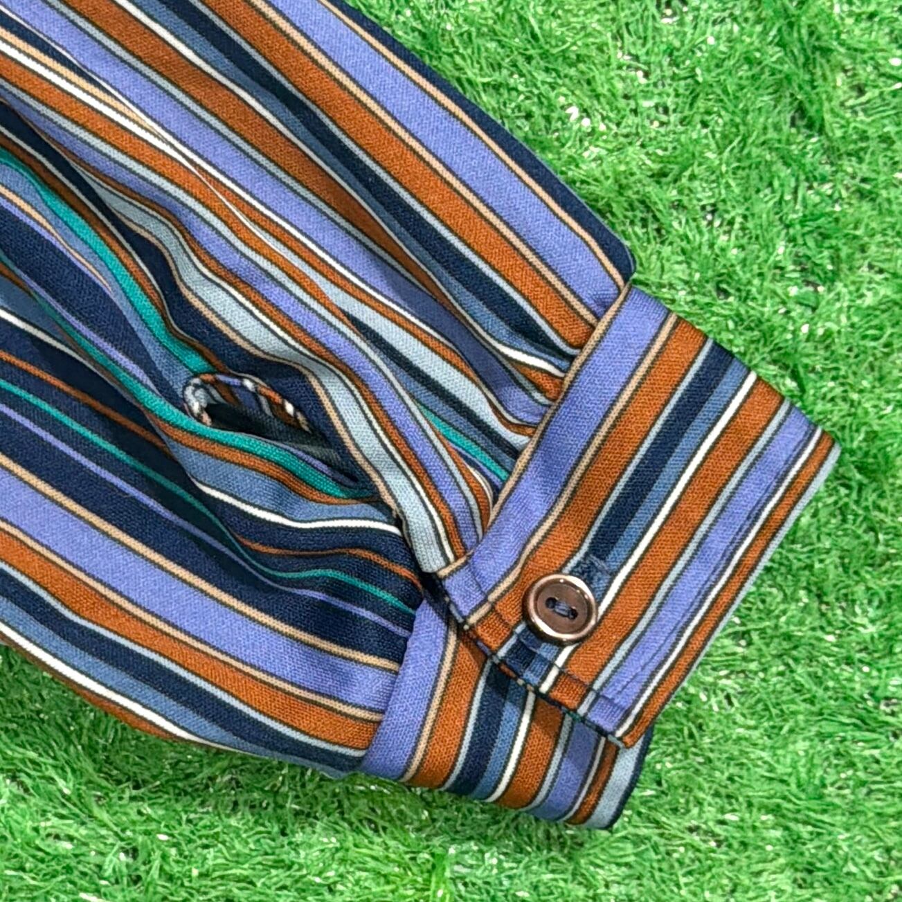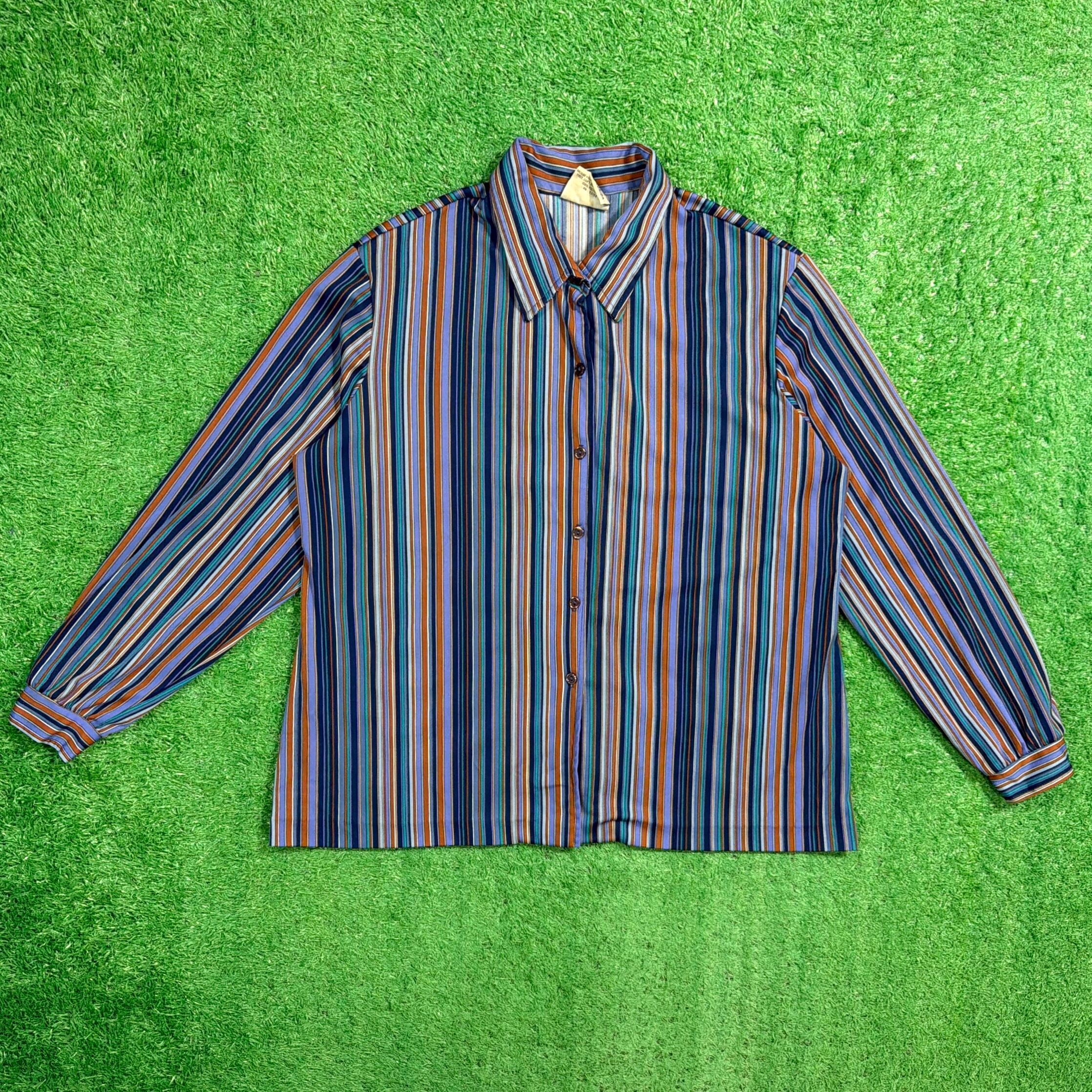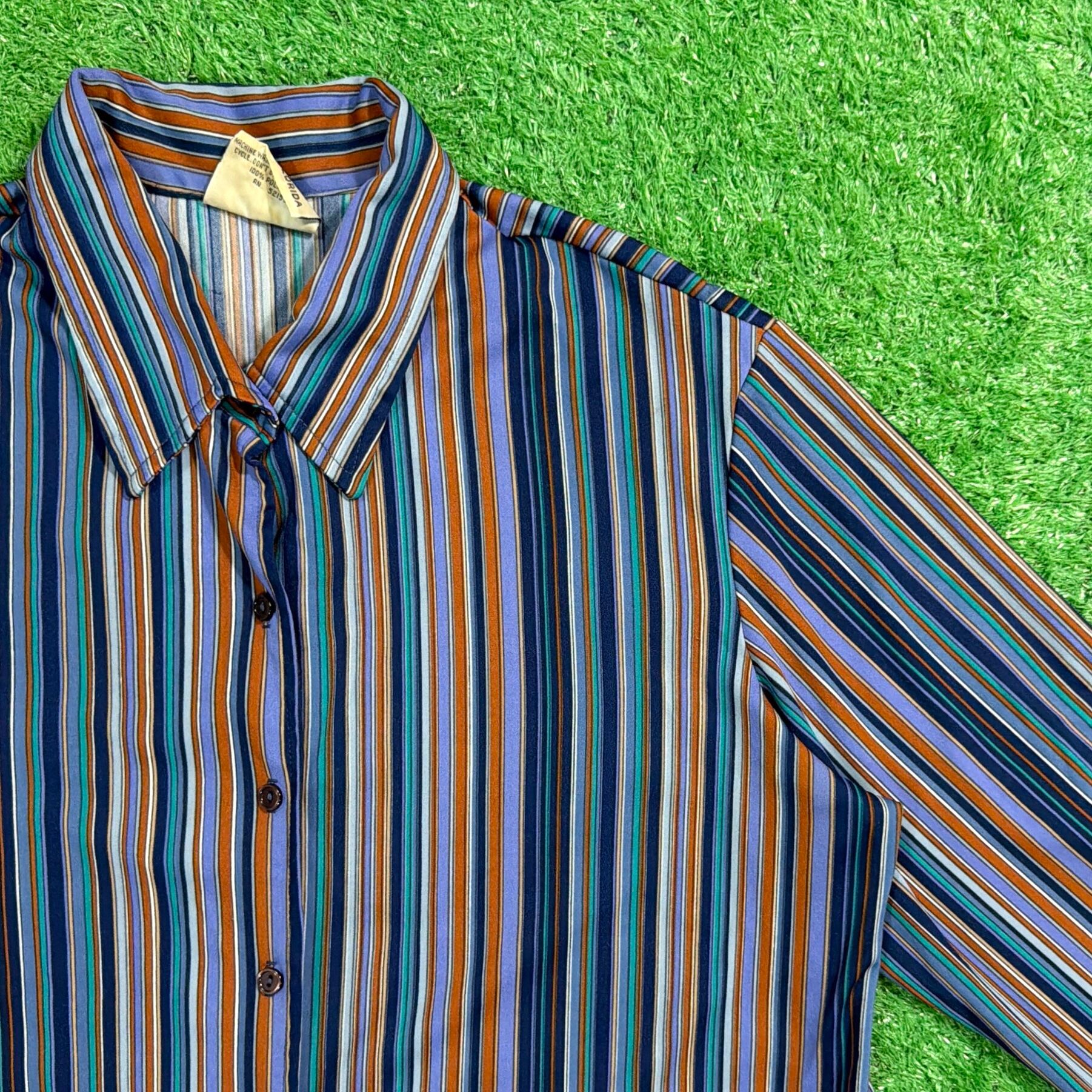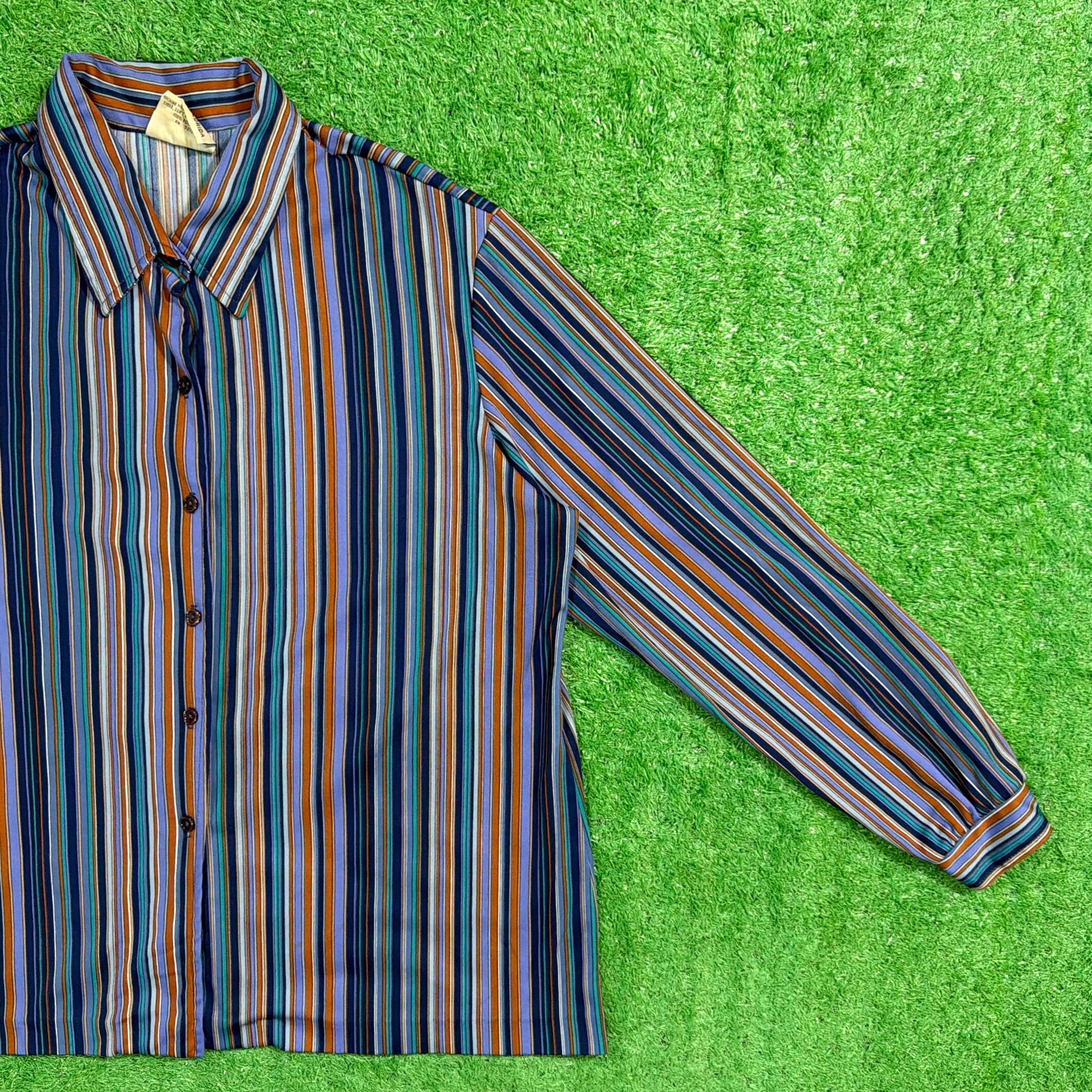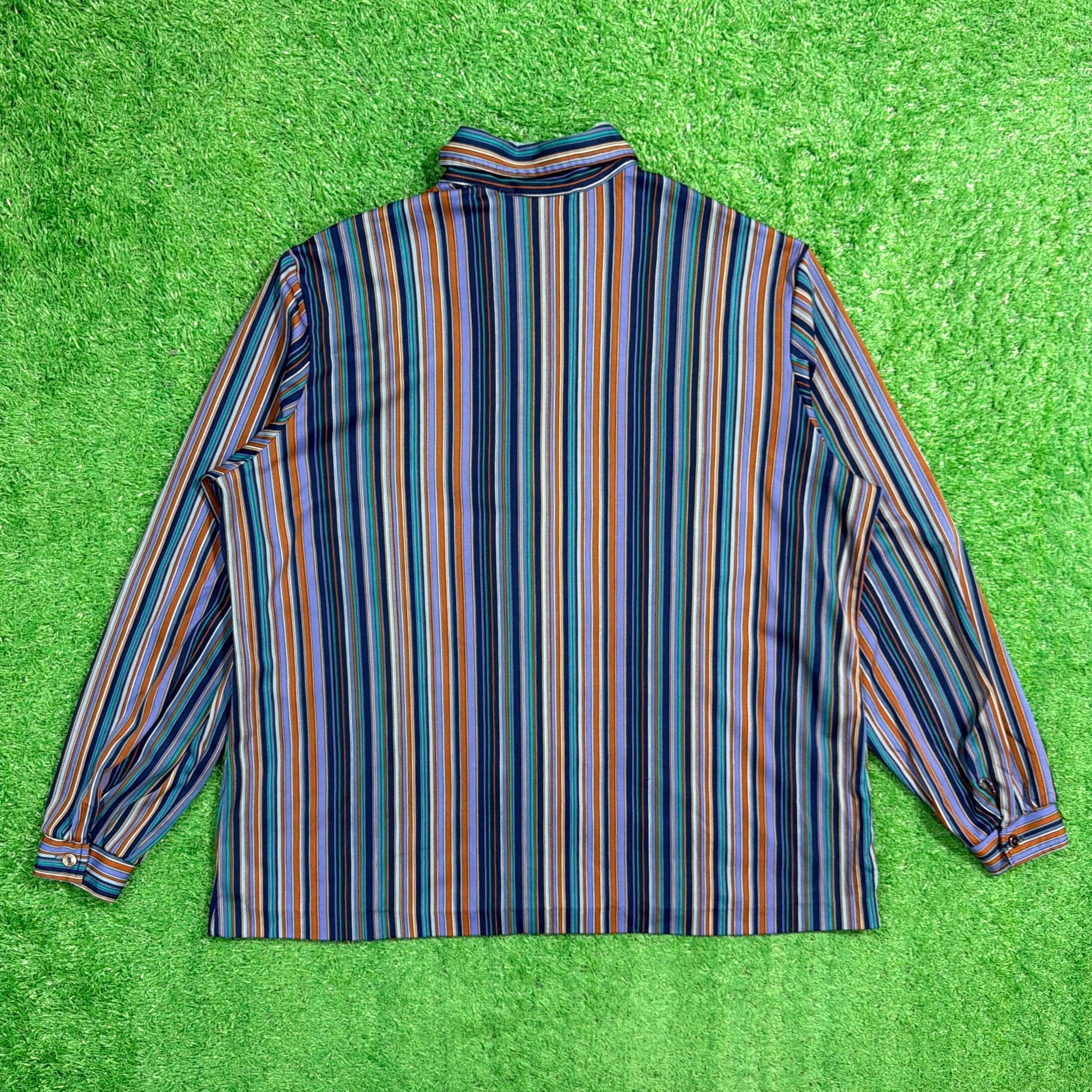 【Lady's】 70s ストライプ ポリエステル シャツ / 70年代 レディース レトロ 古着 ポリシャツ 1179