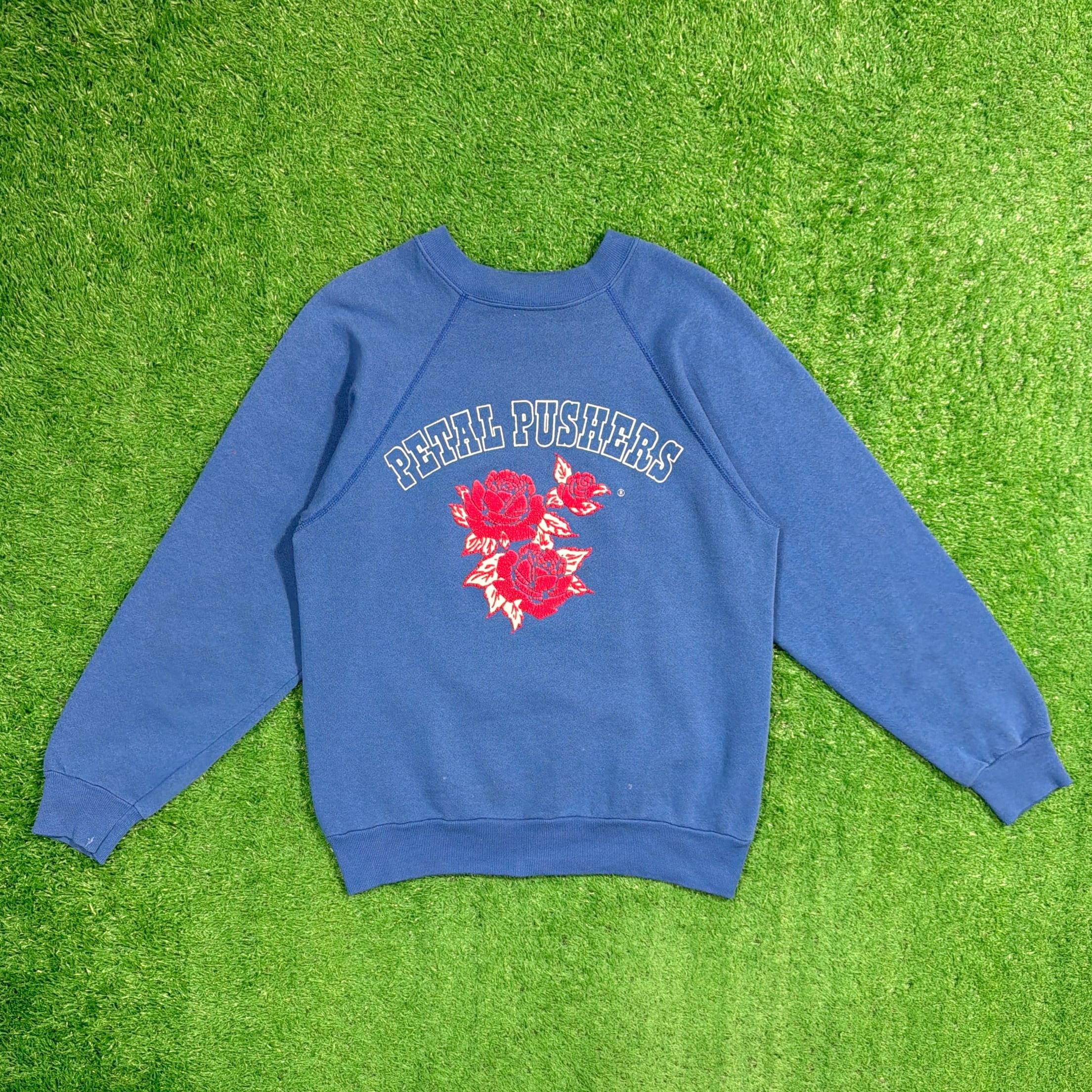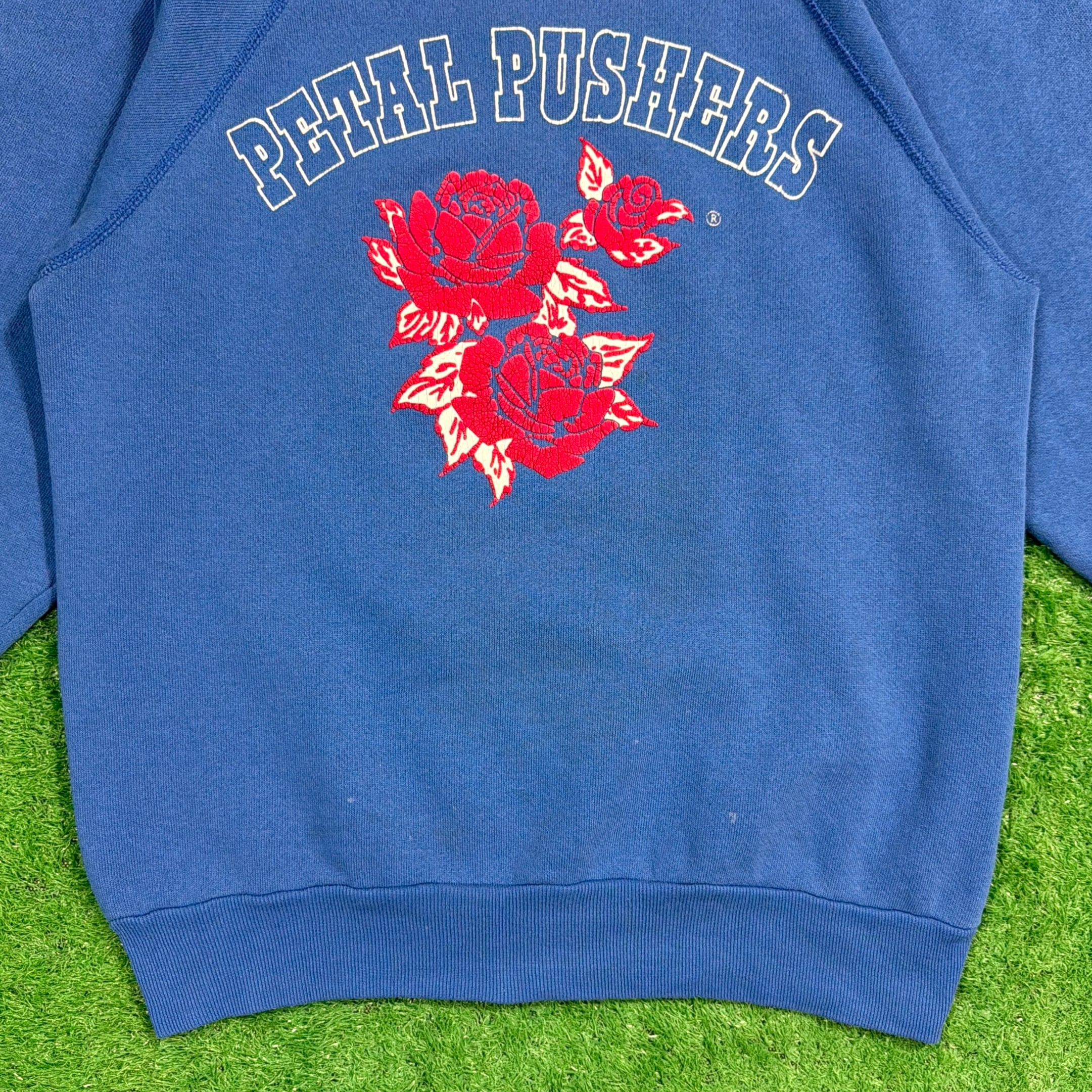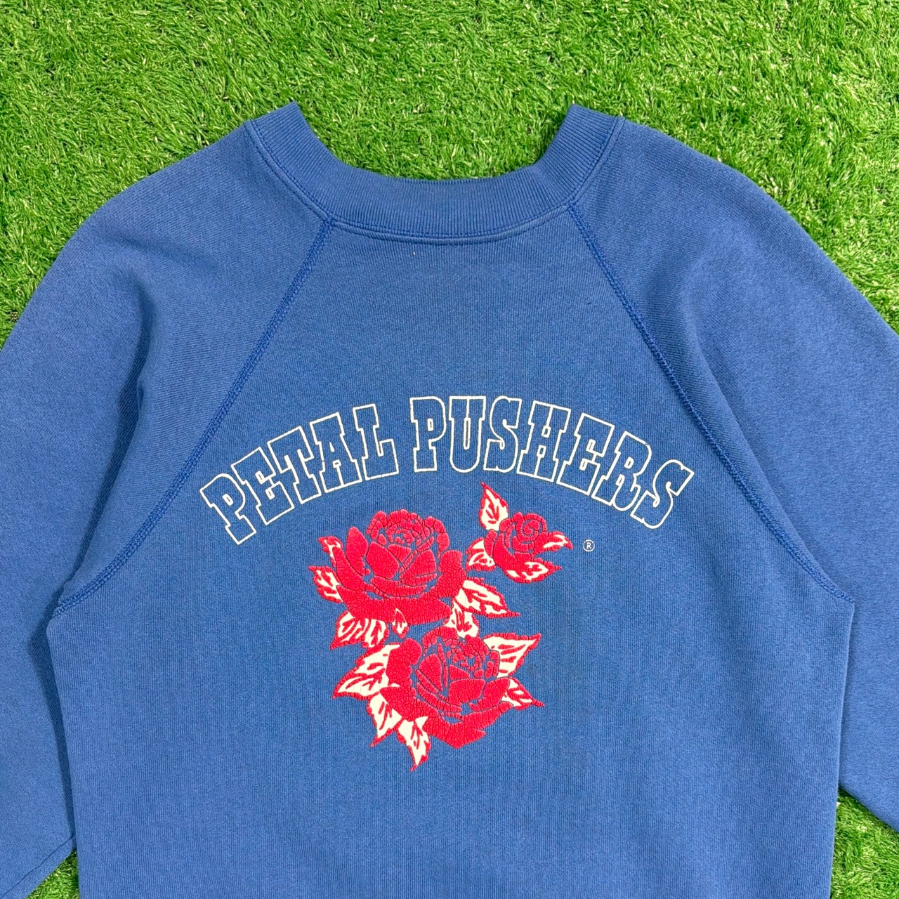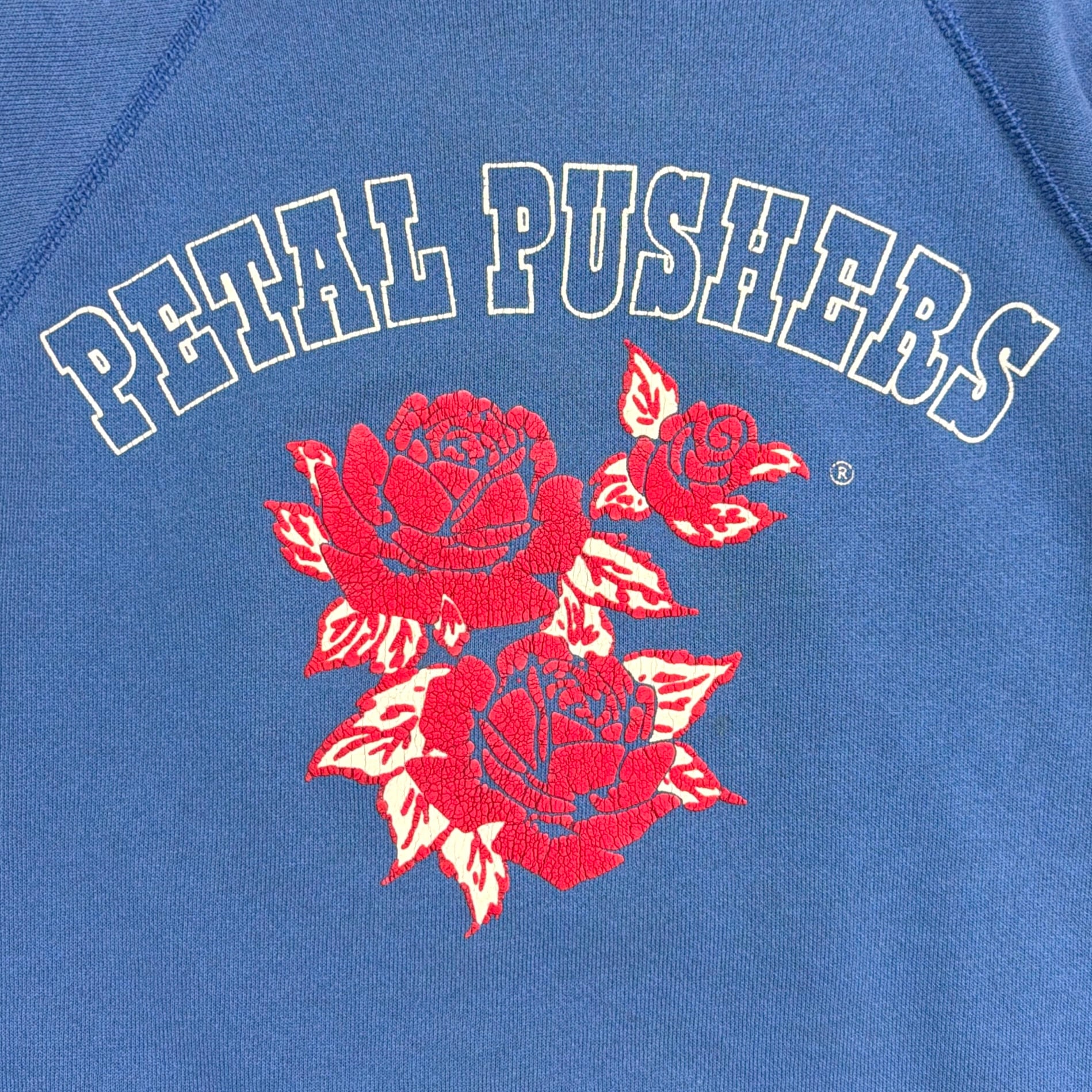 【Men's】 90s PETAL PUSHERS バラ イラスト スウェットシャツ / 90年代 スウェット スエット トレーナー 青 ブルー 古着 1189
