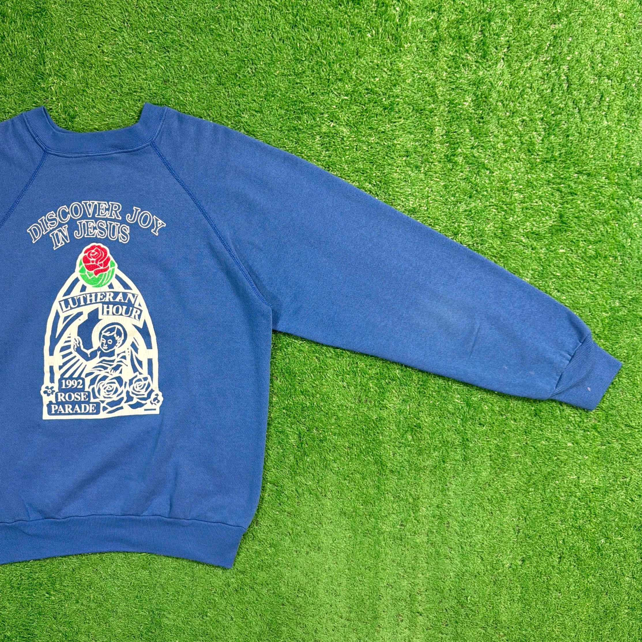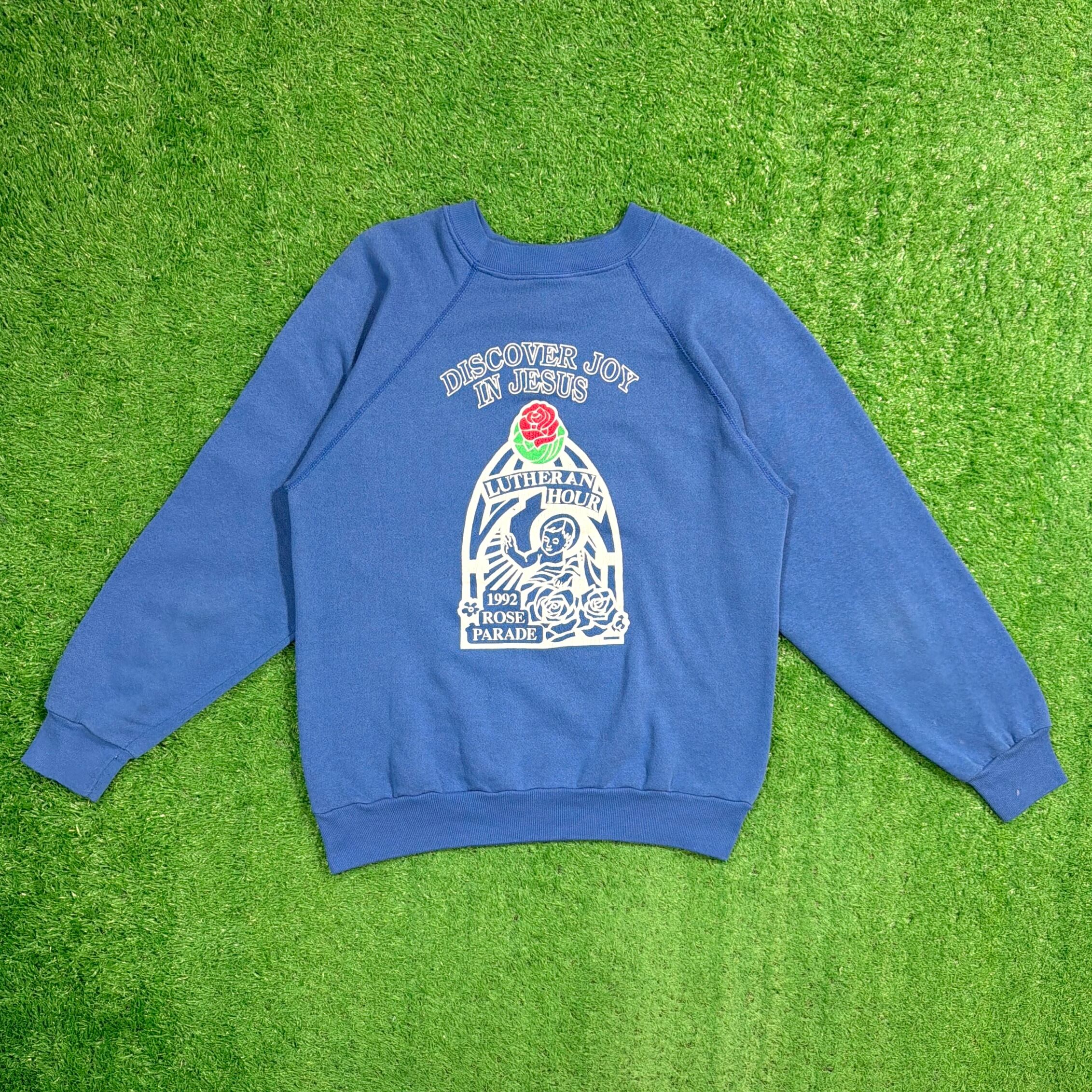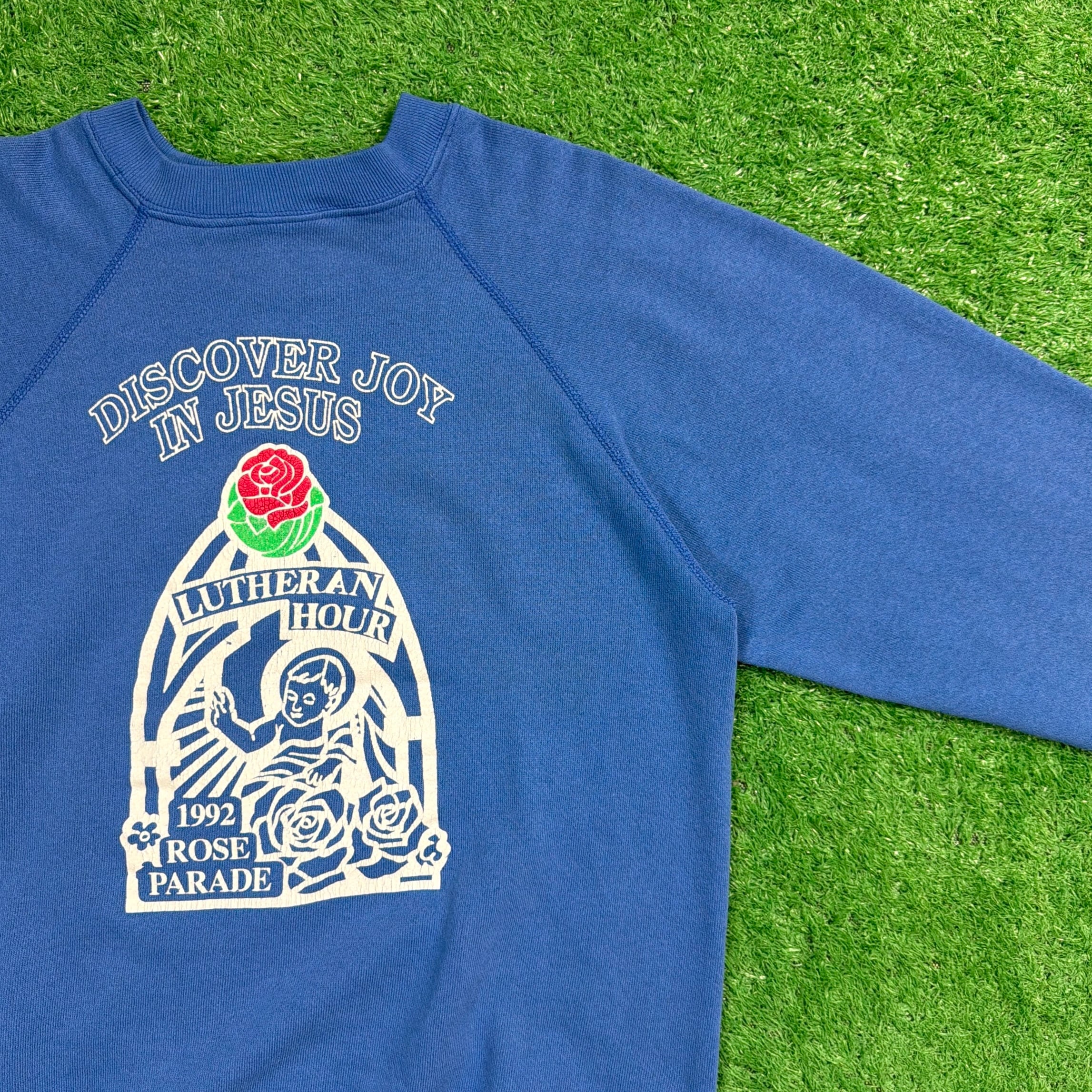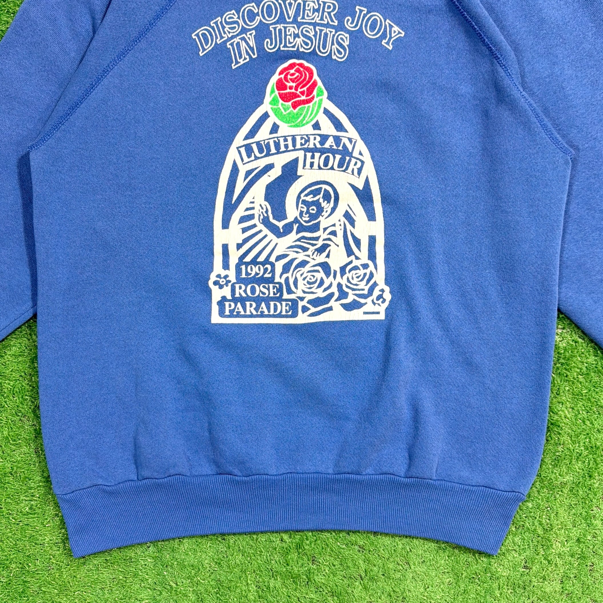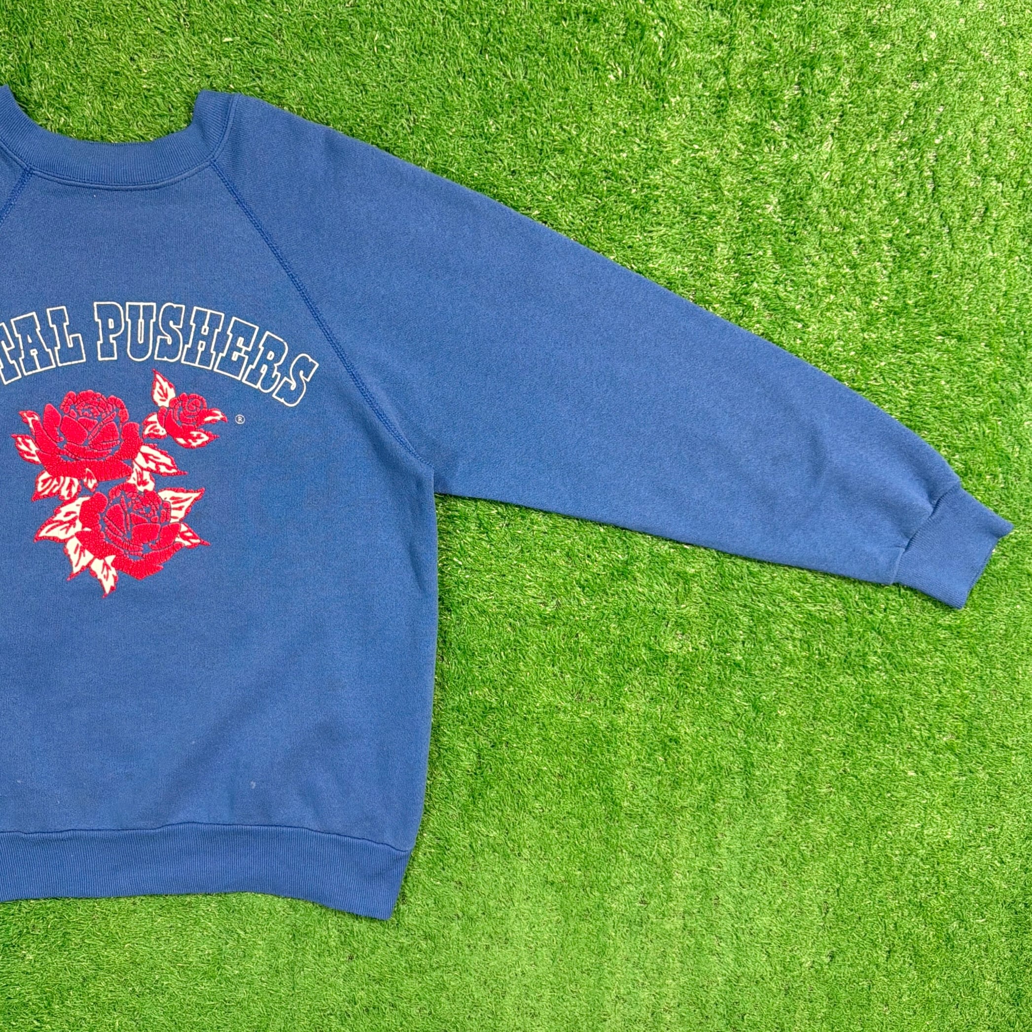 【Men's】 90s PETAL PUSHERS バラ イラスト スウェットシャツ / 90年代 スウェット スエット トレーナー 青 ブルー 古着 1189