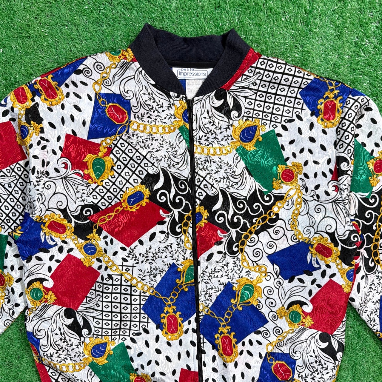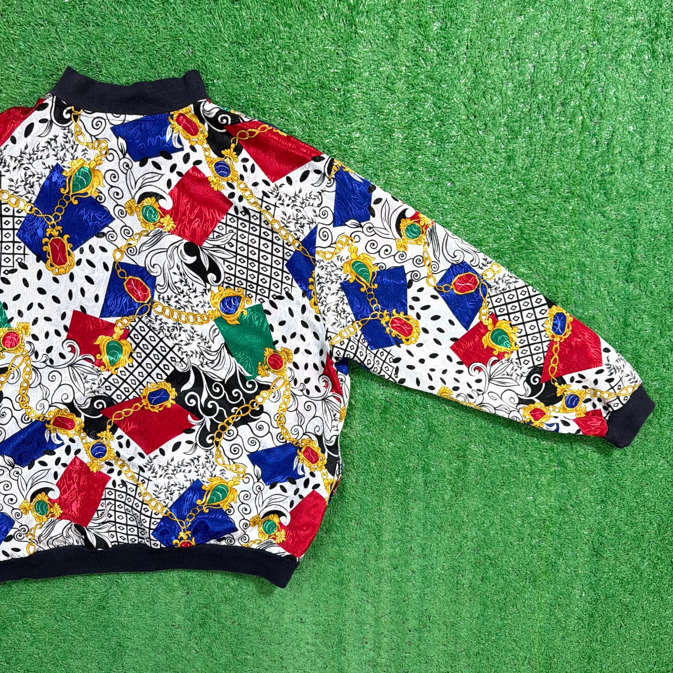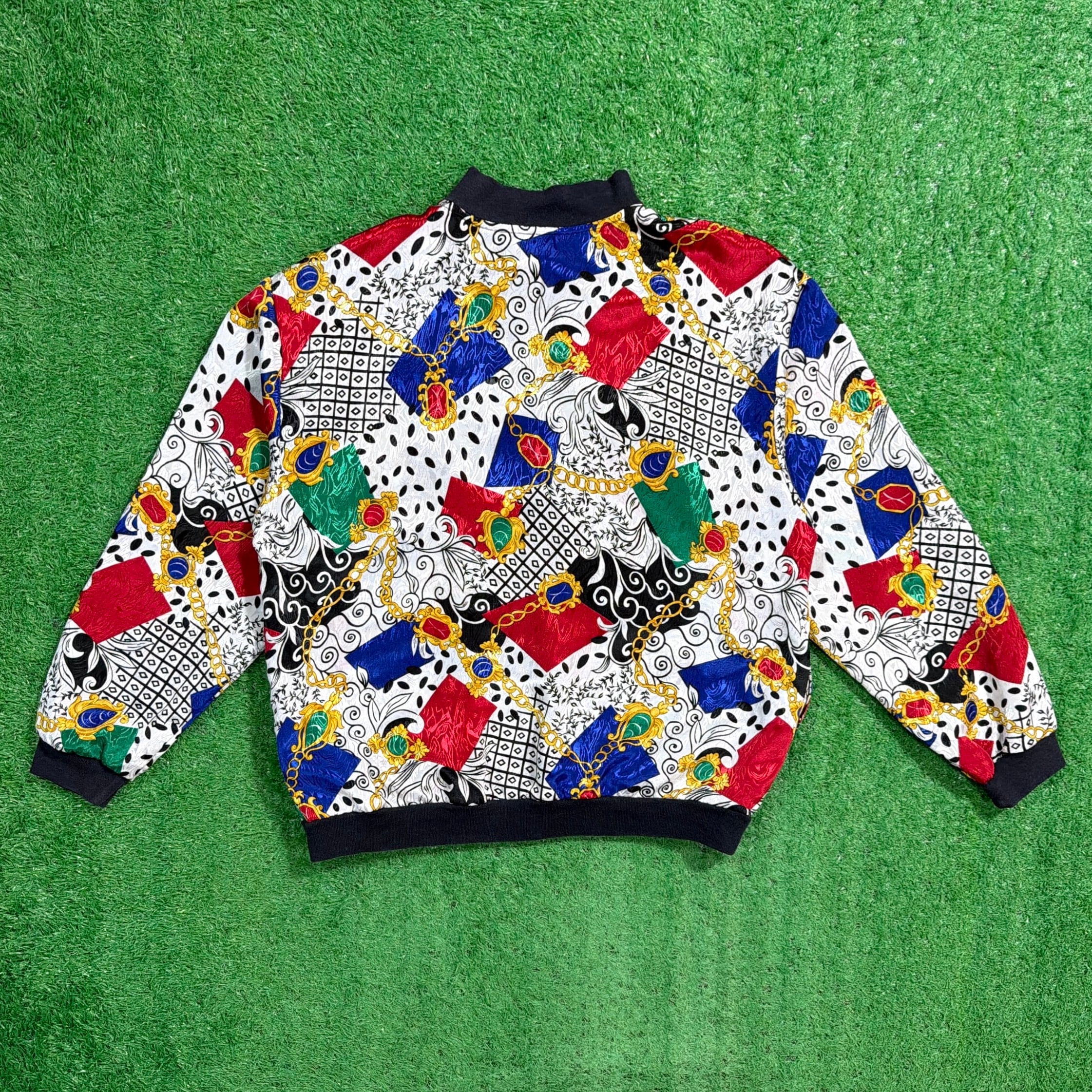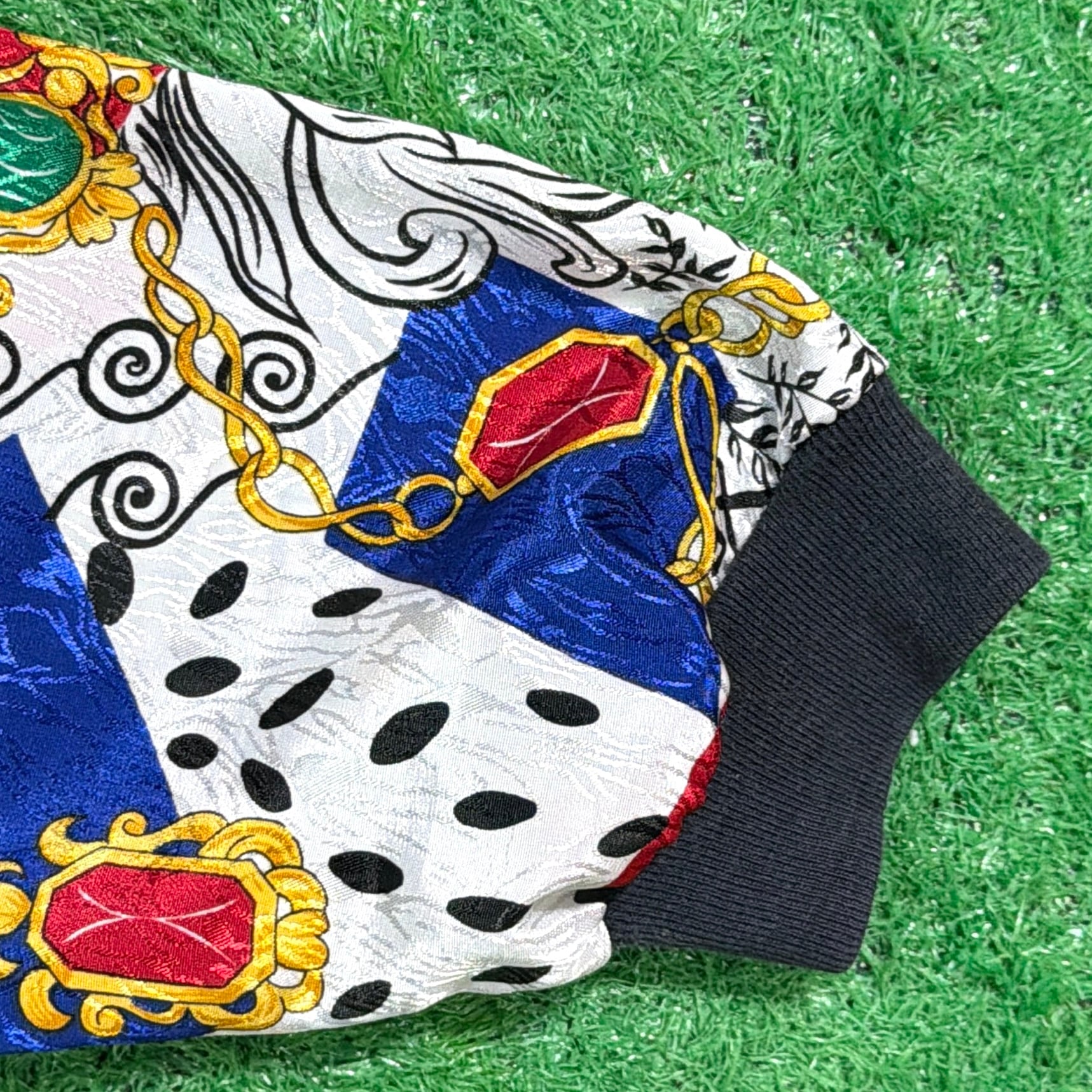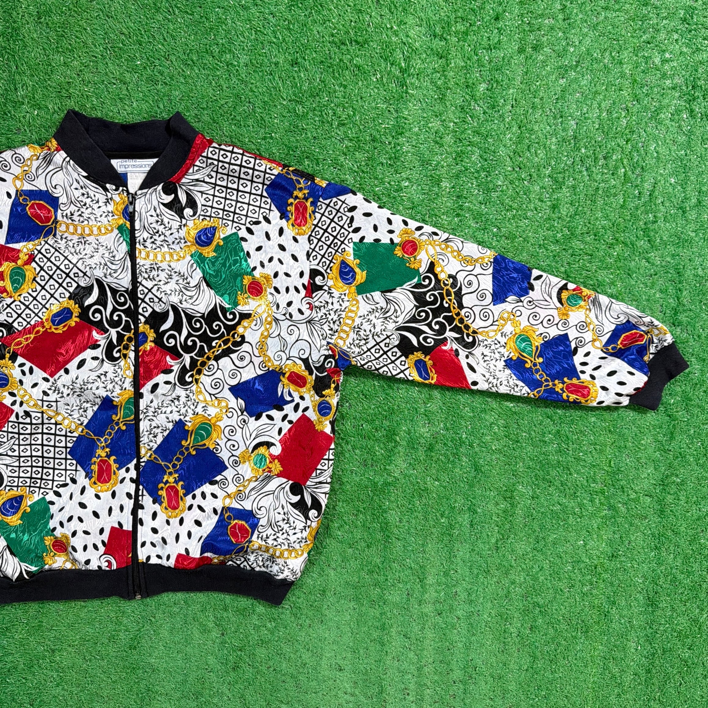 1980〜90年代のアメリカ製、バロック調の総柄が印象的なジップアップジャケットです。