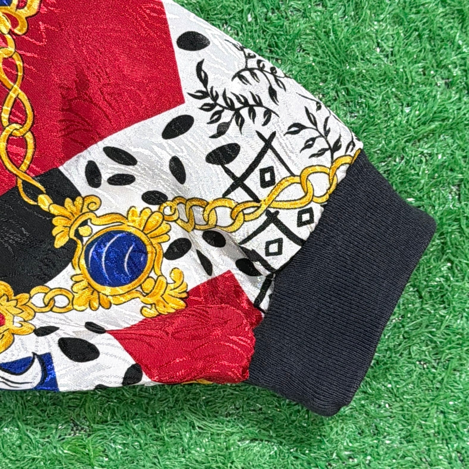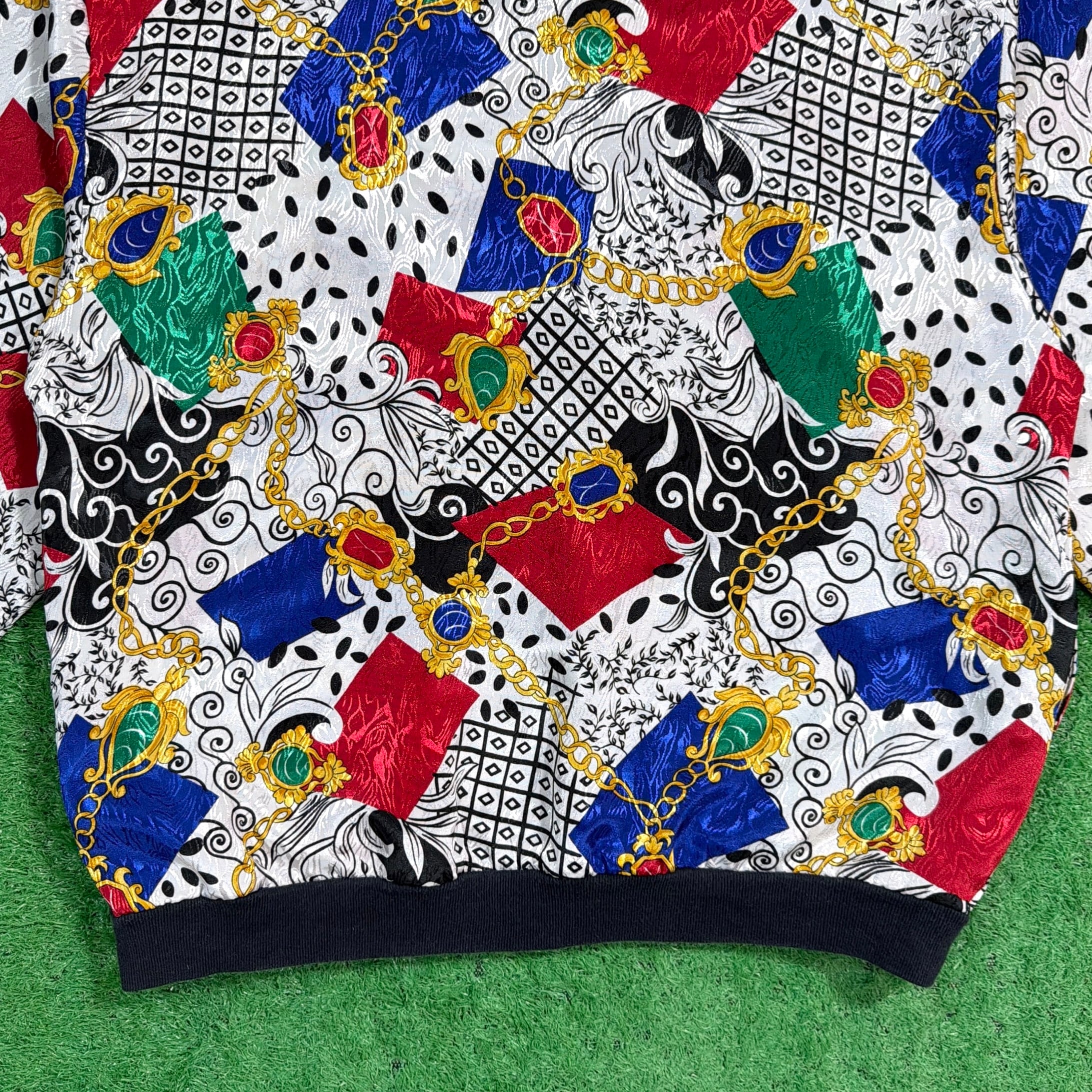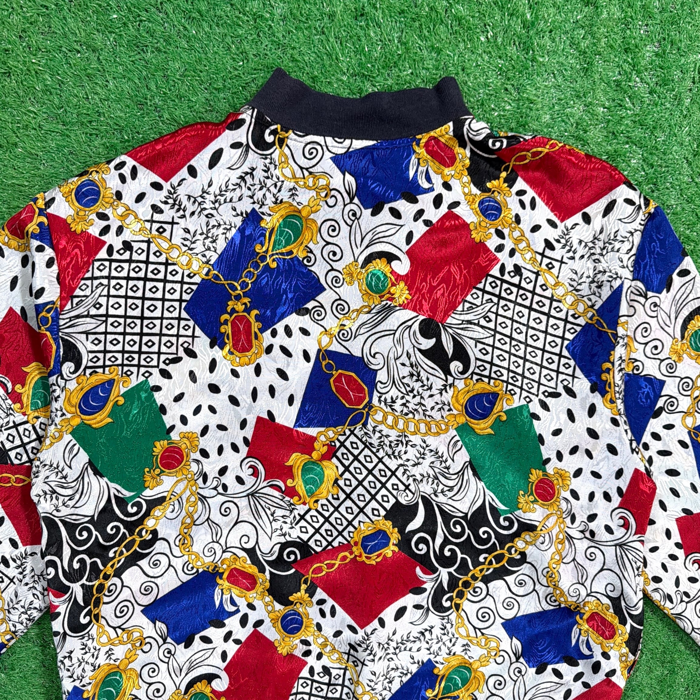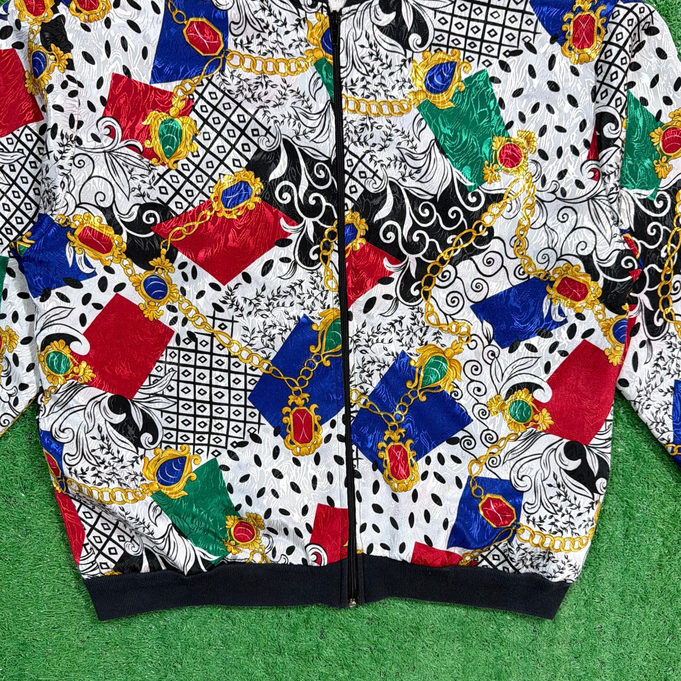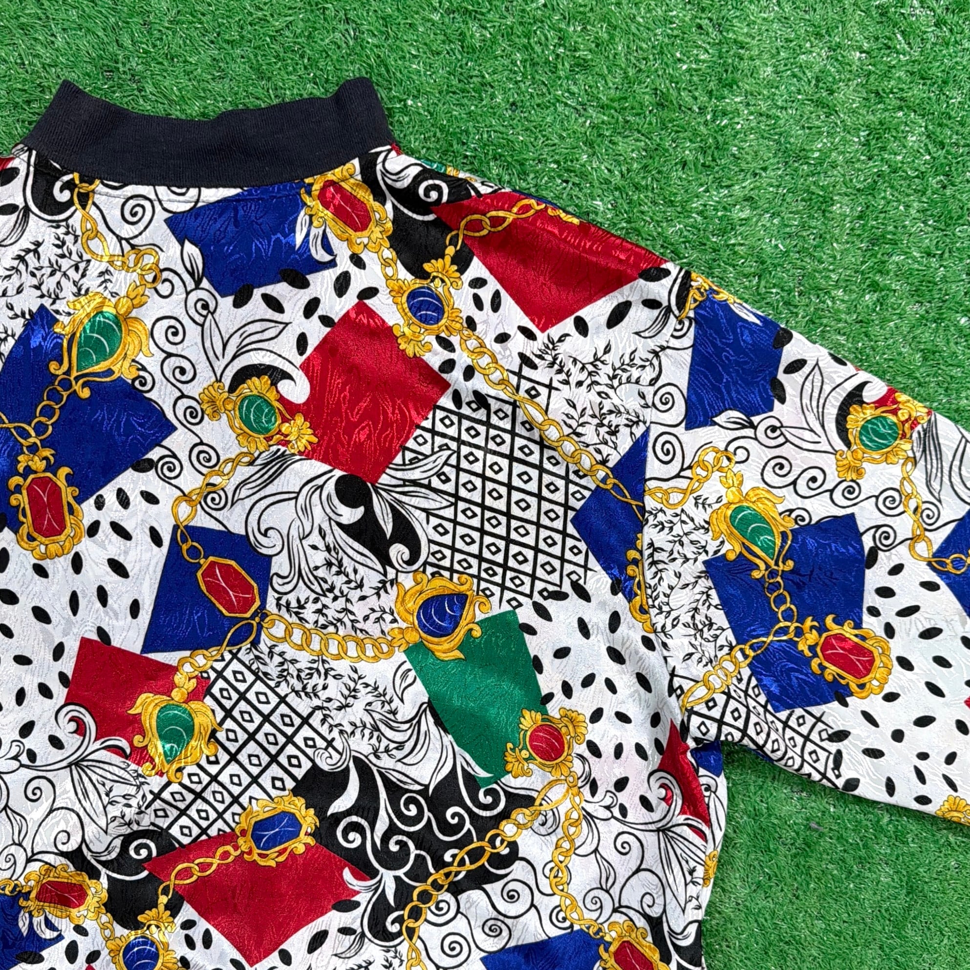 1980〜90年代のアメリカ製、バロック調の総柄が印象的なジップアップジャケットです。